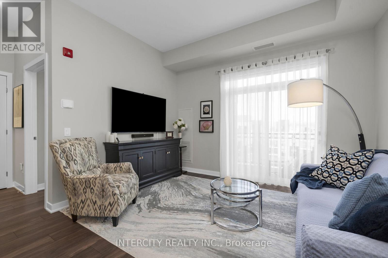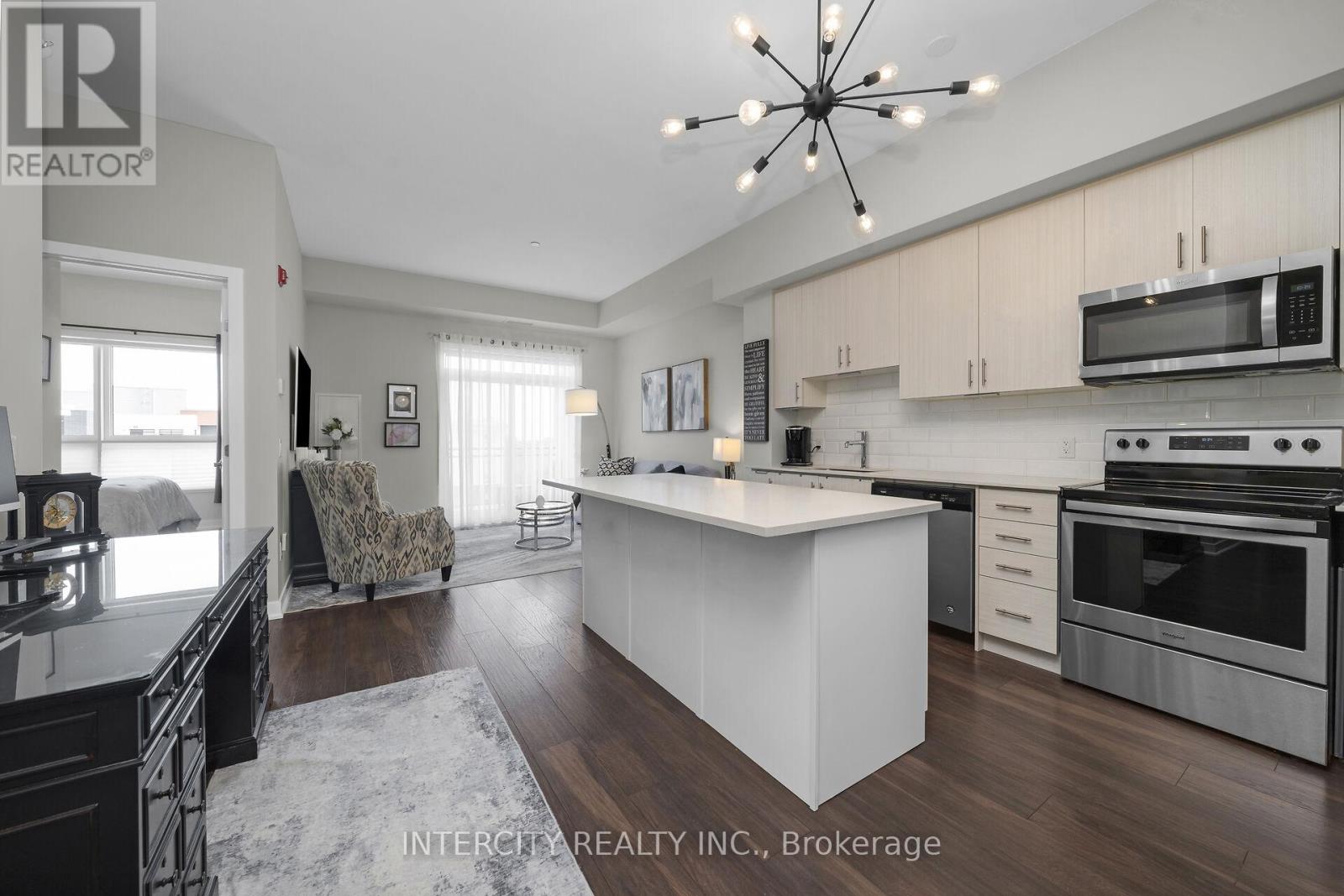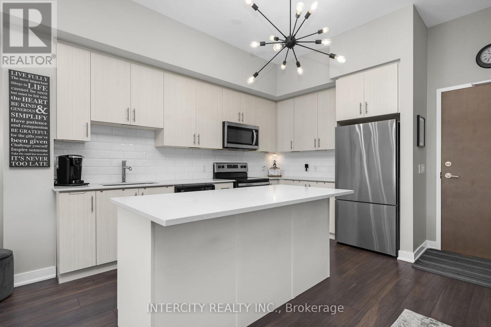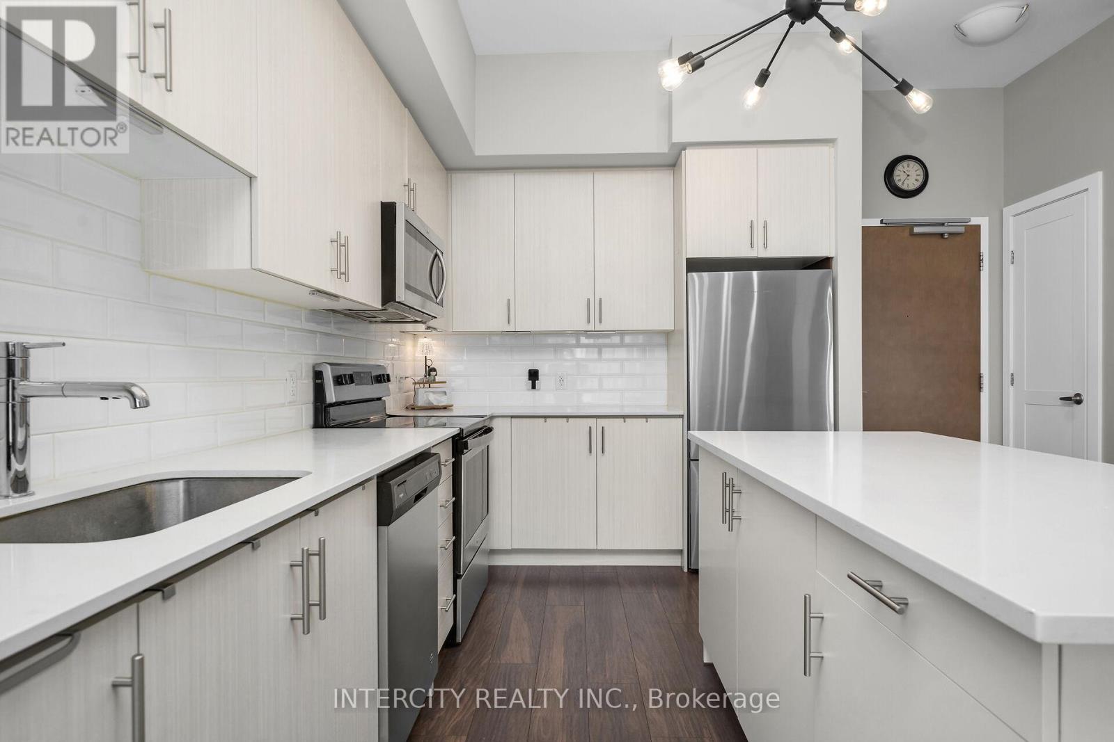 Penthouse Living in South Burlington - Executive Condo Comfort Experience refined, low-maintenance living in a prime South Burlington location. This penthouse-level 1-bedroom + den suite offers a thoughtful blend of elegance, functionality, and lifestyle appeal-ideal for the discerning buyer. Soaring 10-foot ceilings and an open-concept layout create a bright, airy feel throughout this beautifully maintained residence. The expansive kitchen features a large island with seating for three or more, seamlessly opening to the spacious great room-well-suited for entertaining or everyday living. Step out to the private balcony and enjoy east and south views overlooking a landscaped parkette. The versatile den includes removable wall-to-wall cabinetry, offering flexible use as a home office, guest space, or additional storage. Meticulously cared for by the original owner and never rented, this unit reflects pride of ownership. Residents enjoy full-service amenities including a party room, billiards lounge, exercise and yoga rooms, bicycle storage, and EV charging station. Developed by Rosehaven Homes, the sought-after "Affinity" community is well connected to nature, transit, shopping, and cafés. Relax on the rooftop terrace with outdoor fireplace and BBQs while enjoying breezes from Lake Ontario. Commuters will appreciate convenient access to major highways and Aldershot GO, while lifestyle amenities are just minutes from Mapleview Mall, Burlington Golf and Country Club, and a short walk to Burlington Beach. Enjoy convenient weekend escapes only 40 minutes from the renowned Niagara wine region. An exceptional opportunity to own a penthouse suite offering executive comfort, everyday convenience, and effortless condo living in the heart of Burlington. (id:64974)