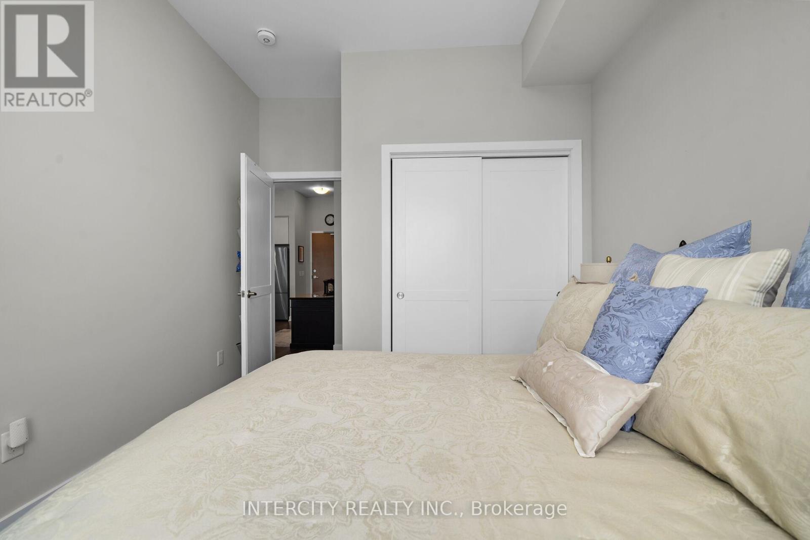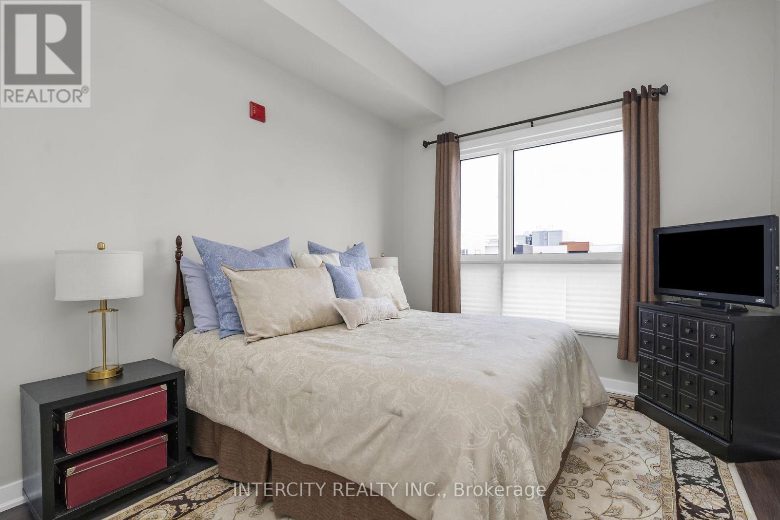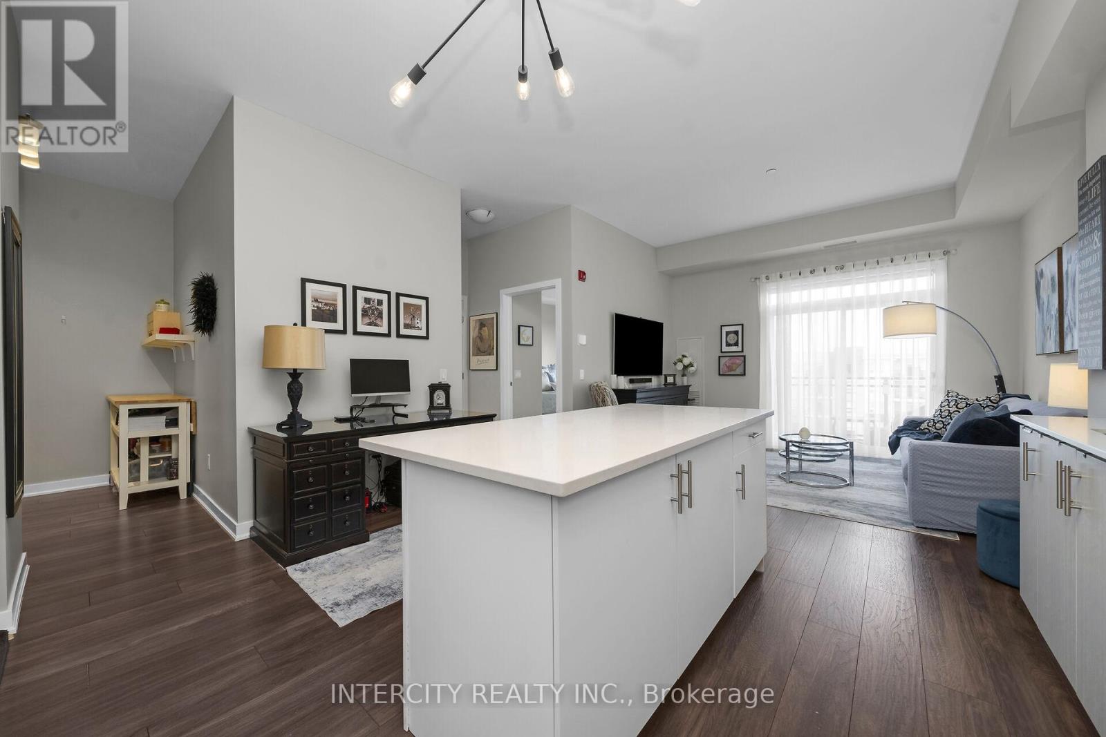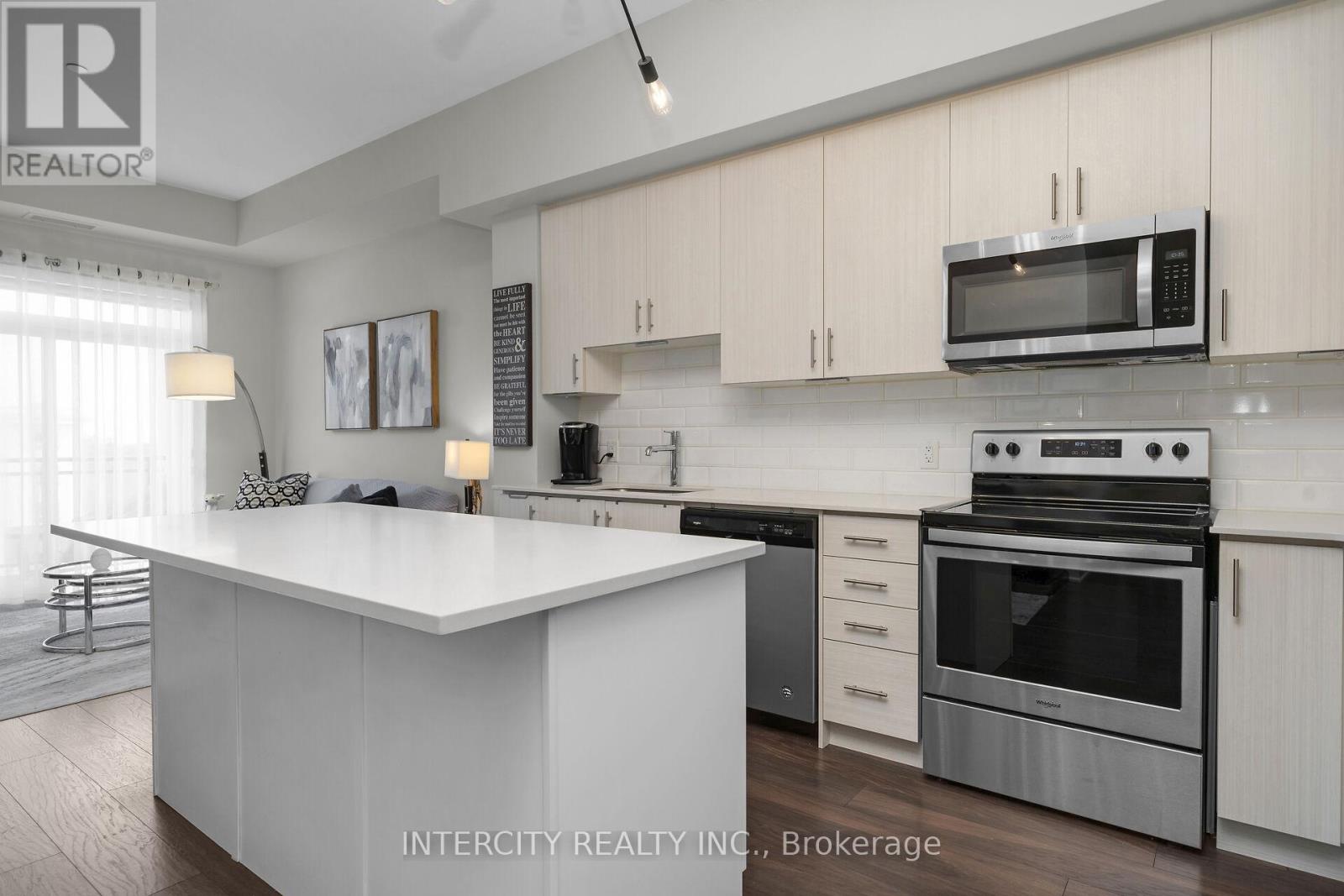 Penthouse Living in South Burlington - Executive Condo Comfort Experience refined, low-maintenance living in a prime South Burlington location. This penthouse-level 1-bedroom + den suite offers a thoughtful blend of elegance, functionality, and lifestyle appeal-ideal for the discerning buyer. Soaring 10-foot ceilings and an open-concept layout create a bright, airy feel throughout this beautifully maintained residence. The expansive kitchen features a large island with seating for three or more, seamlessly opening to the spacious great room-well-suited for entertaining or everyday living. Step out to the private balcony and enjoy east and south views overlooking a landscaped parkette. The versatile den includes removable wall-to-wall cabinetry, offering flexible use as a home office, guest space, or additional storage. Meticulously cared for by the original owner and never rented, this unit reflects pride of ownership. Residents enjoy full-service amenities including a party room, billiards lounge, exercise and yoga rooms, bicycle storage, and EV charging station. Developed by Rosehaven Homes, the sought-after "Affinity" community is well connected to nature, transit, shopping, and cafés. Relax on the rooftop terrace with outdoor fireplace and BBQs while enjoying breezes from Lake Ontario. Commuters will appreciate convenient access to major highways and Aldershot GO, while lifestyle amenities are just minutes from Mapleview Mall, Burlington Golf and Country Club, and a short walk to Burlington Beach. Enjoy convenient weekend escapes only 40 minutes from the renowned Niagara wine region. An exceptional opportunity to own a penthouse suite offering executive comfort, everyday convenience, and effortless condo living in the heart of Burlington. (id:64974)