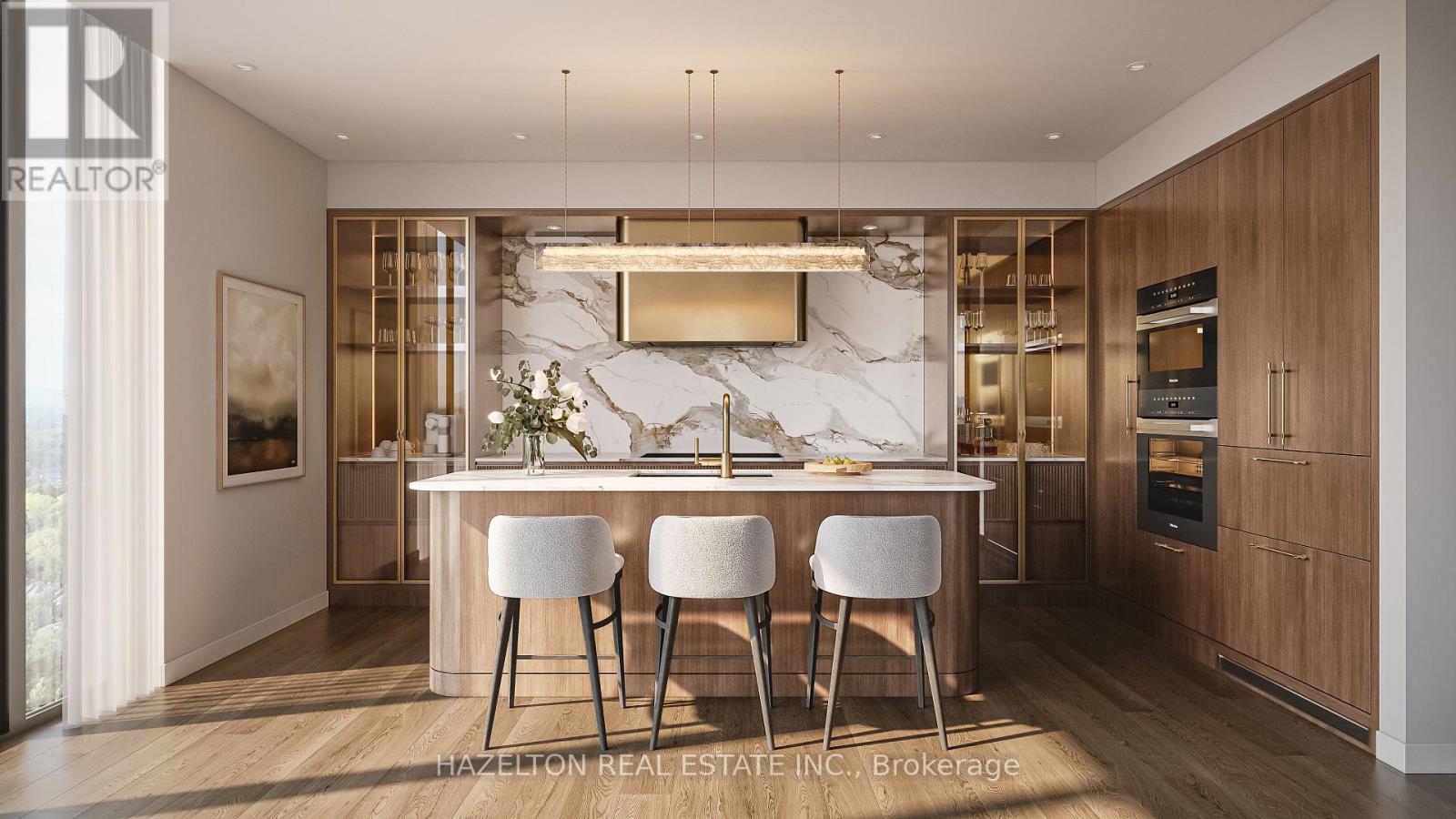 The Aston - a new modern classic has arrived in esteemed Lawrence Park! Acclaimed architect Richard Wengle brings his signature timeless elegance to a 15 storey limestone and concrete building, accented by black mullioned windows and graceful arches. One of only 77 spacious residences, Suite 603 offers over 1,800 square feet of refined luxury in a split two bedroom plus family room layout. Impressive details abound, like 10 foot ceilings, a gas fireplace, Miele fitted Irpinia kitchen, an indulgent primary retreat with Brizo fixtures and much more. Enjoy expansive sunny vistas across leafy residential streets with spectacular sunsets from every window, and from the west facing terrace complete with BBQ gas line! Designed by boutique firm StudioHumn with Roche Bobois pieces, amenity spaces are equally impressive from the elegant lobby with valet parking and 24 hour concierge services, to the spectacular rooftop wellness and event facilities including a fitness studio, yoga space, dry sauna, steam room, treatment room, fireside bar lounge, indoor and outdoor dining rooms, catering kitchen, BBQ and lounge terrace. Behind the scenes, geothermal engineering will ensure exceptional energy and cost efficiency long into the future. An EV ready underground parking stall is included, however, The Aston is ideally located adjacent to Lawrence subway station and surrounded by local cafes, grocers, shops, restaurants and services. With this extraordinary level of attention to lifestyle, service and design and set in one of the city's most cherished neighbourhoods, The Aston is destined to become a landmark address in Lawrence Park. (id:64974)