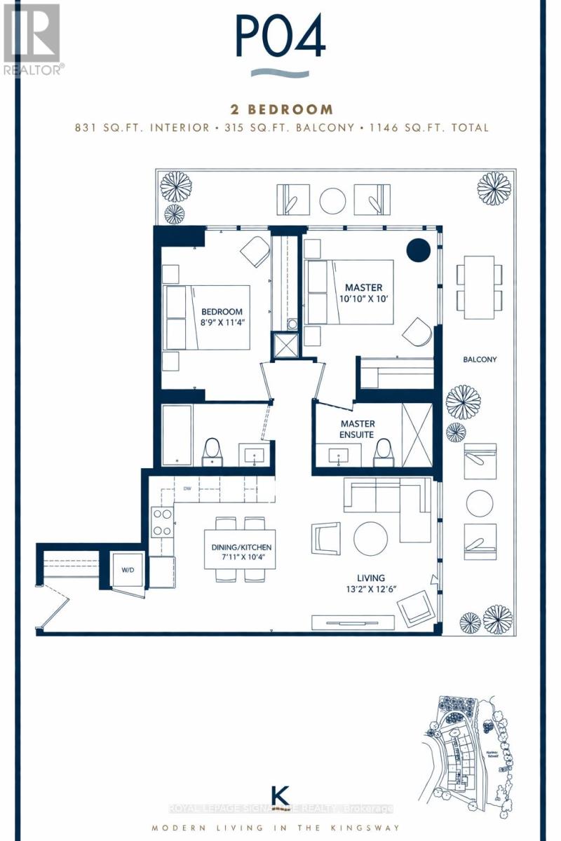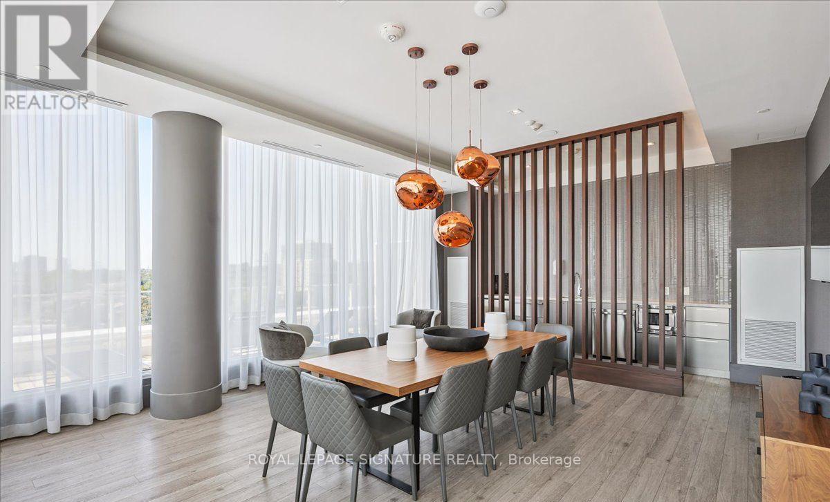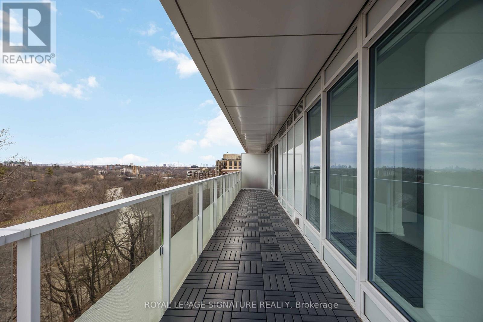 Thoughtfully designed and filled with natural light, this beautifully appointed sixth-floor residence at Kingsway By The River offers a functional layout complemented by exceptional indoor-outdoor living in the highly desirable Old Mill neighbourhood. A spacious foyer provides a welcoming entry, complete with a double closet and enclosed laundry area featuring upgraded front-loading washer and dryer. The suite offers 831 sq. ft. of well-planned living space with quality finishes and newly painted throughout. The L-shaped kitchen is both stylish and practical, featuring abundant cabinetry and a custom floor-to-ceiling pantry. A large island with dual electrical outlets and seating creates the perfect setting for everyday living or entertaining guests. The open-concept living and dining areas extend effortlessly to the expansive wrap-around balcony through oversized glass walkouts, creating a bright and inviting living space. Professionally tiled and spanning 361 sq. ft., the northeast and northwest-facing balcony showcases beautiful views of the Humber River and is also accessible from the second bedroom, enhancing the suite's seamless indoor-outdoor living. The primary bedroom features floor-to-ceiling windows, a generous walk-in double closet, and comfortably accommodates a queen-size bed. Located just steps from Humber River Park, residents enjoy year-round access to scenic walking trails and outdoor recreation. Residents also benefit from access to the impressive Club K2 amenities, including a fully equipped fitness centre, private dining room with service kitchen, resident lounge with bar, landscaped terrace with fire pits, BBQ stations, and outdoor dining areas, along with pet-friendly features including a dog wash station and designated dog park area. (id:64974)