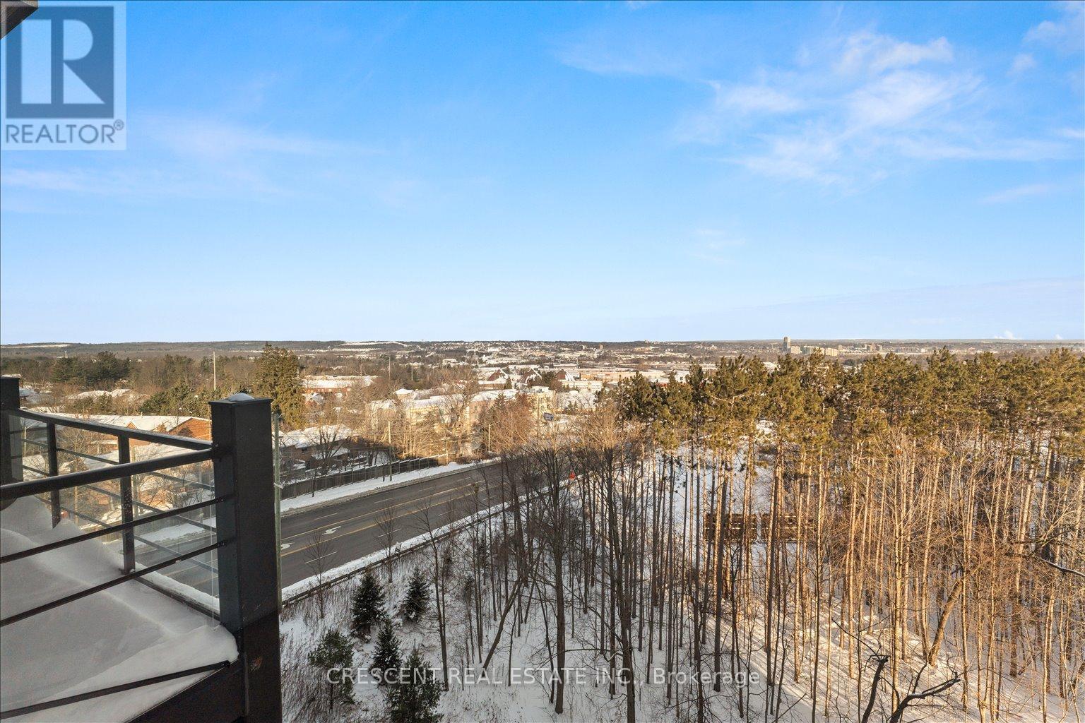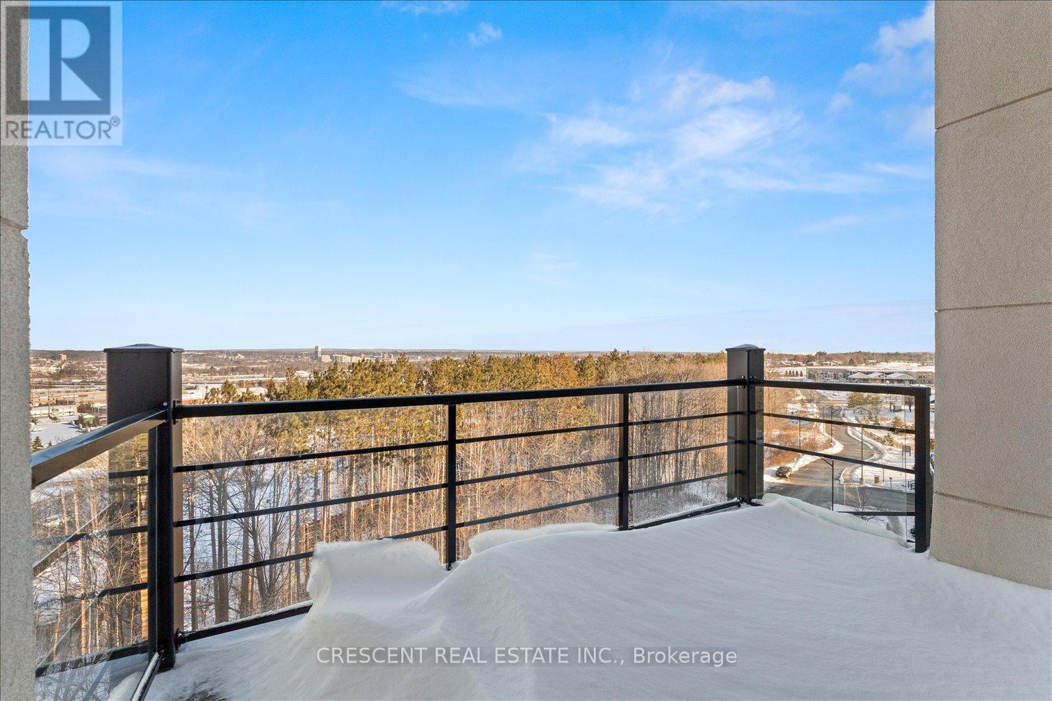 Discover luxury penthouse living at The Gallery Condos in the heart of Barrie. This stunning 2-bedroom plus oversized den suite offers approximately 1,100 sq ft of beautifully designed open-concept living space, perfect for both everyday comfort and entertaining. The expansive den provides excellent flexibility and can easily function as a third bedroom, guest room, or home office. Large windows fill the unit with natural light and showcase the peaceful forest backdrop, creating a bright and inviting atmosphere throughout. Step onto your private balcony, ideal for relaxing, and enjoying the beautiful views overlooking the forest. Conveniently located close to all amenities, with easy access to Highway 400 and the GO Station, this exceptional penthouse combines style, space, and location. Flexible lease terms available. (id:64974)