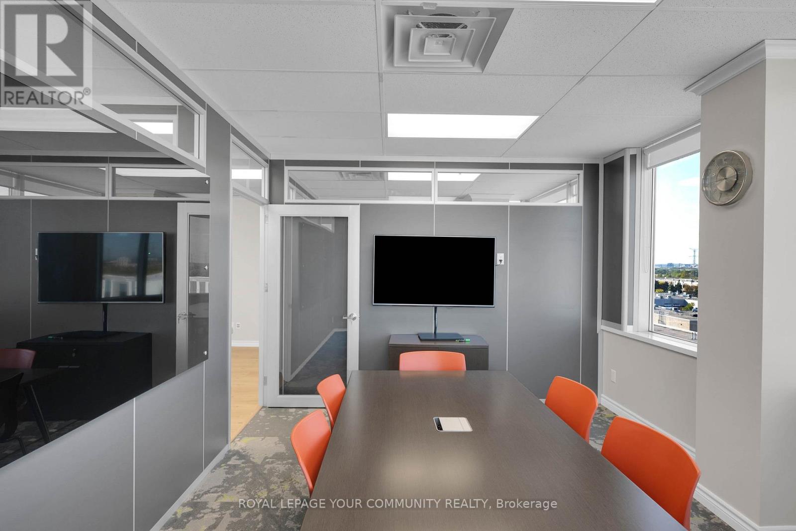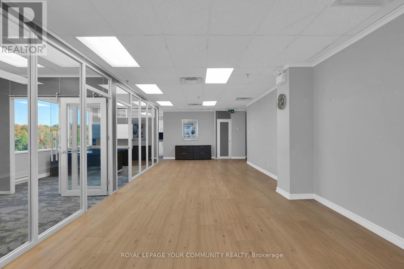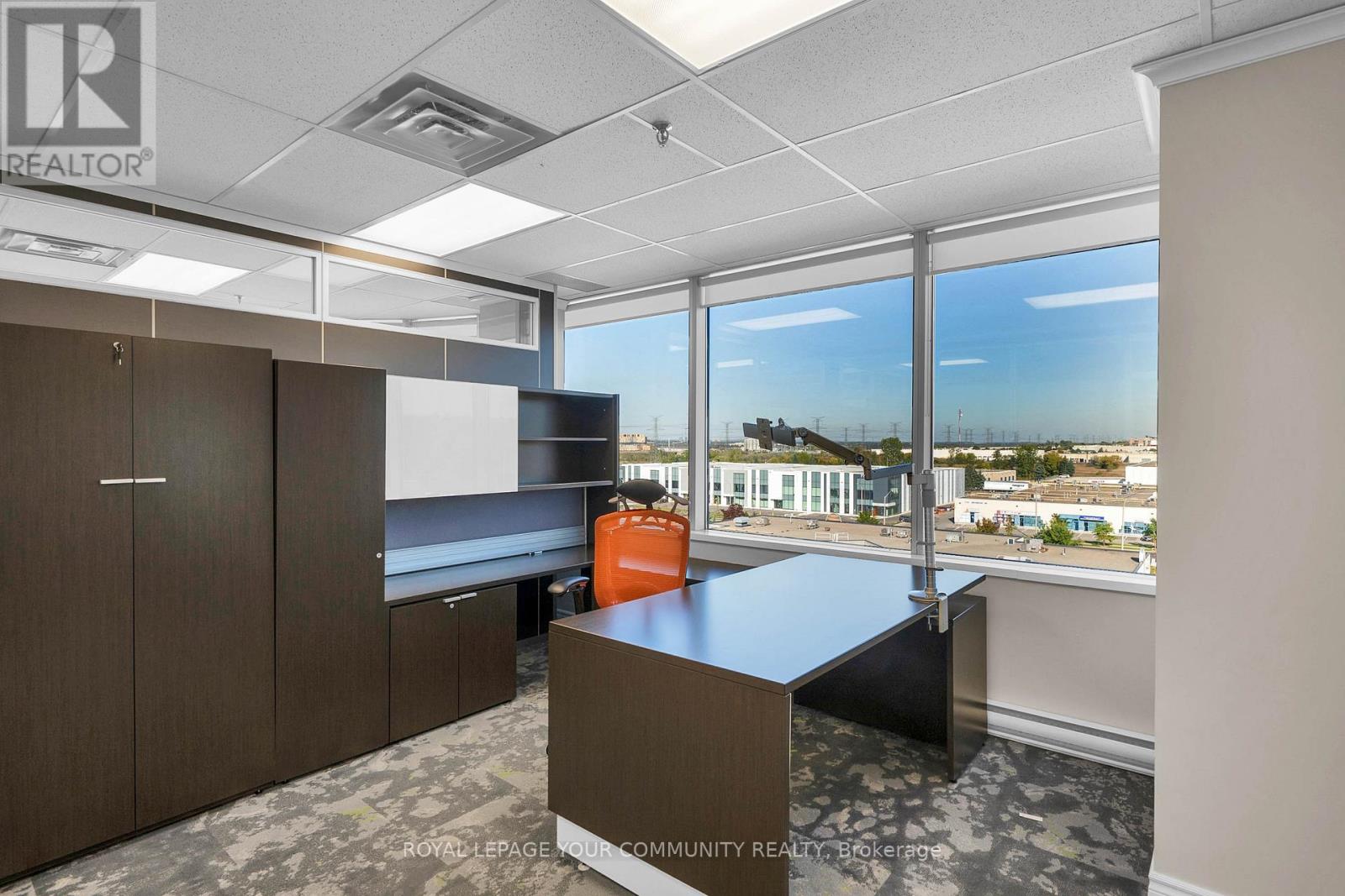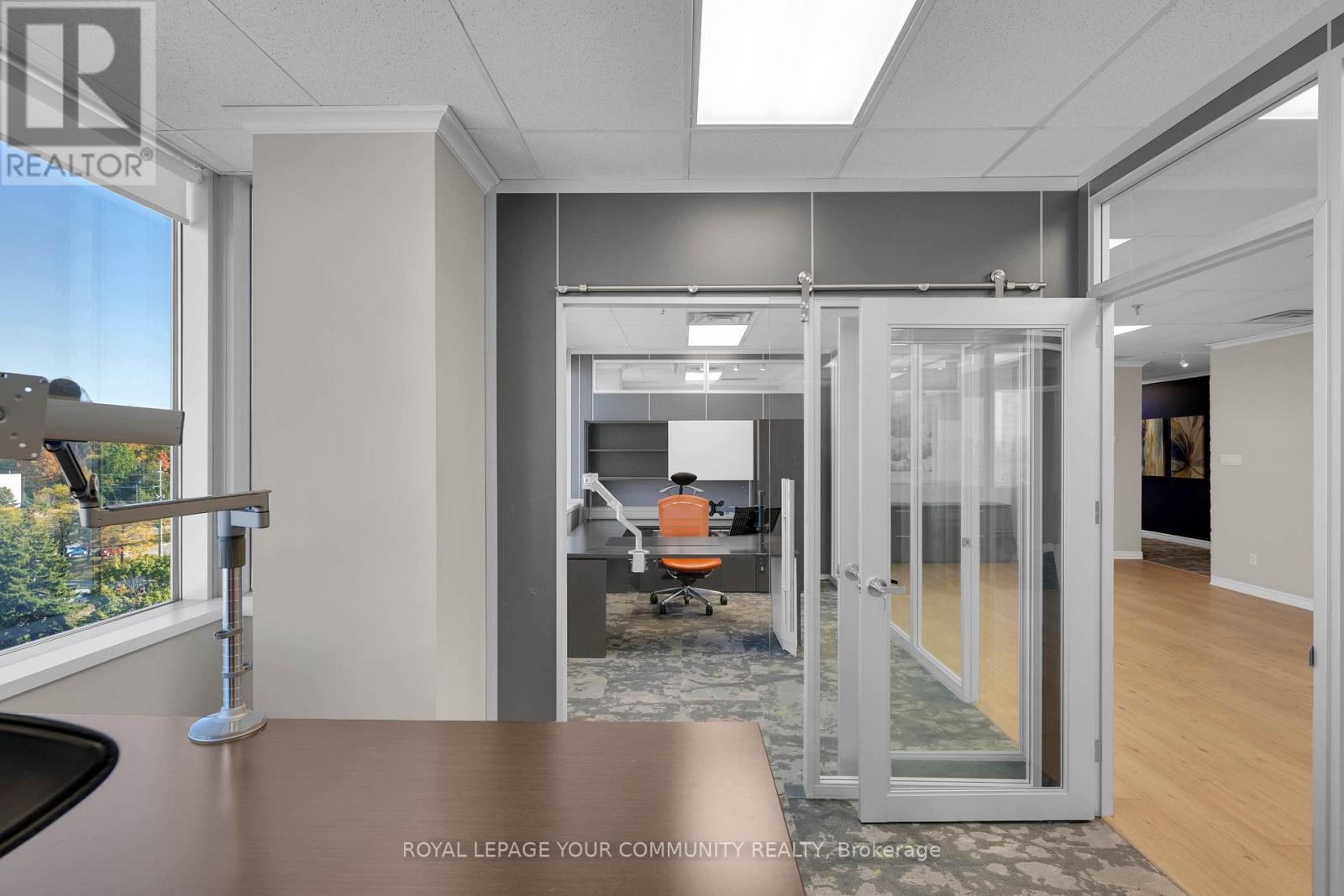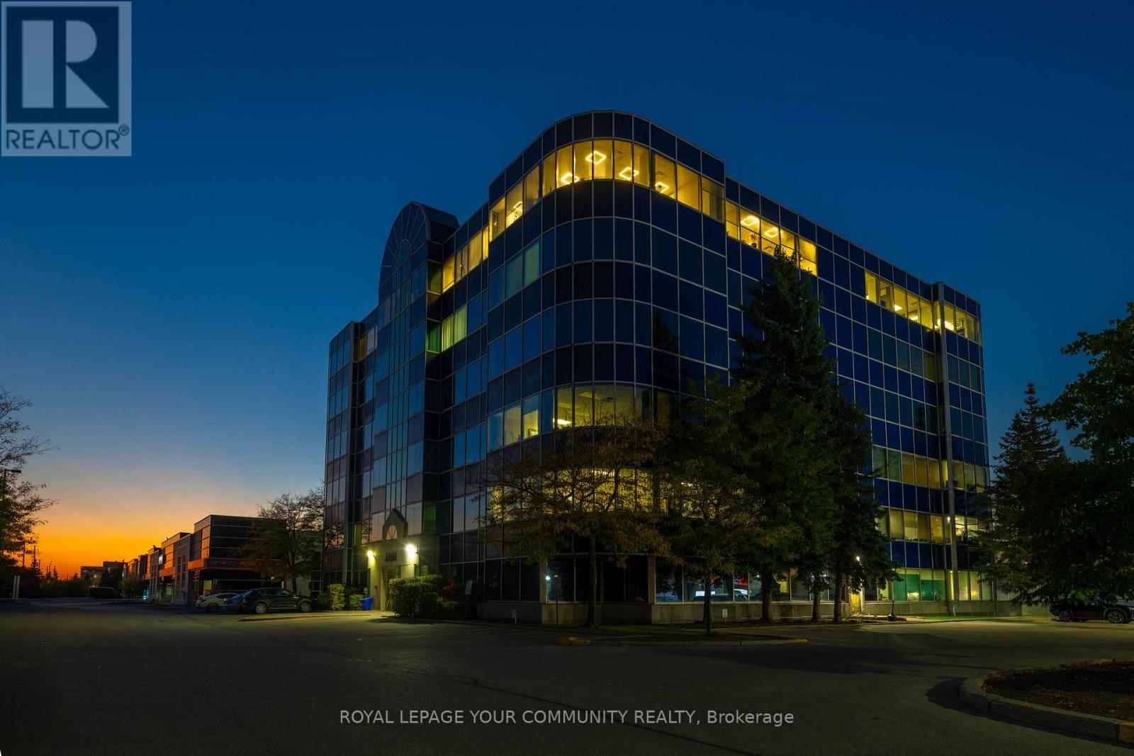 Welcome to a landmark opportunity in one of the areas most prestigious professional office condominiums. From the moment you step inside, the stunning designer atrium entrance sets the stage for your business with a lasting impression of sophistication, success, & professionalism. Located on the penthouse northeast corner, Office Suites 603 & 604 offer an impressive layout designed to inspire productivity & elevate your brand. This premium office space features a spacious great room, multiple private offices, a fully equipped modern boardroom, sleek kitchenette, & utility space every element thoughtfully designed for functionality & style. Floor-to-ceiling windows wrap every room, showcasing unobstructed panoramic views & filling the space with natural light, creating a bright, airy, & motivating work environment. The contemporary furnishings complement the open, modern design, while the abundant natural light enhances both energy & creativity throughout the day. With all major utilities hydro, water, heating, & air conditioning conveniently included in the condo fees, your business can enjoy a truly hassle-free operational experience. Ample on-site parking ensures convenience for both your team & visiting clients. Strategically positioned in a prime industrial and commercial hub & directly adjacent to the rapidly expanding Markham Downtown, this location offers unmatched growth potential. Surrounded by dense residential communities, businesses here benefit from access to a strong labor supply, growing client base, & dynamic local economy. Seamless connectivity to major highways & public transit provides effortless logistics & easy access for clients & staff across the region. This is more than an office space its an opportunity to position your business in a high-profile, modern building designed for todays visionary leaders. Schedule your private tour today & experience how this one-of-a-kind penthouse office can redefine the way you work & showcase your success. (id:64974)