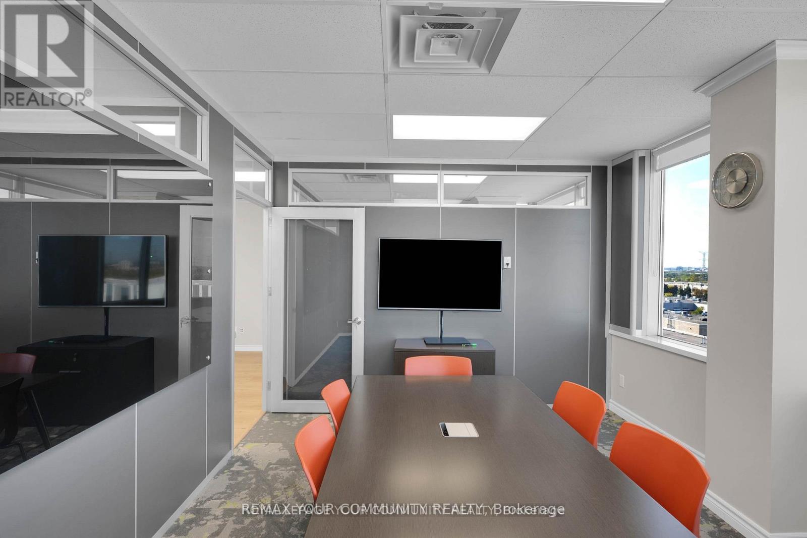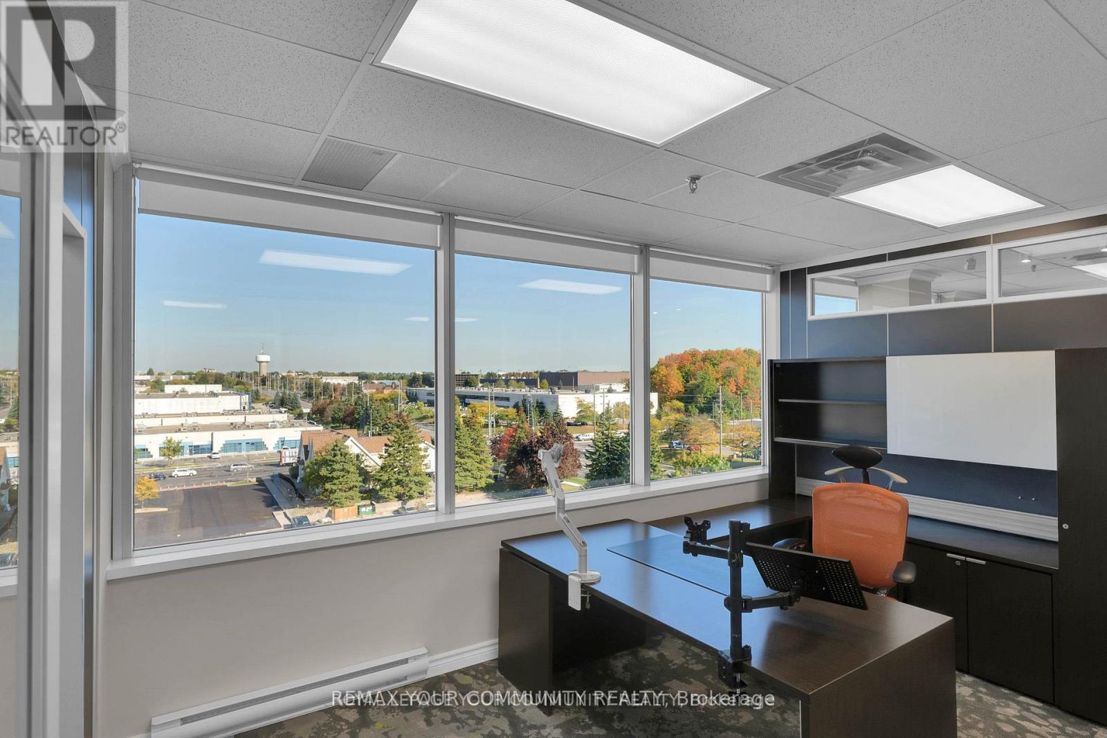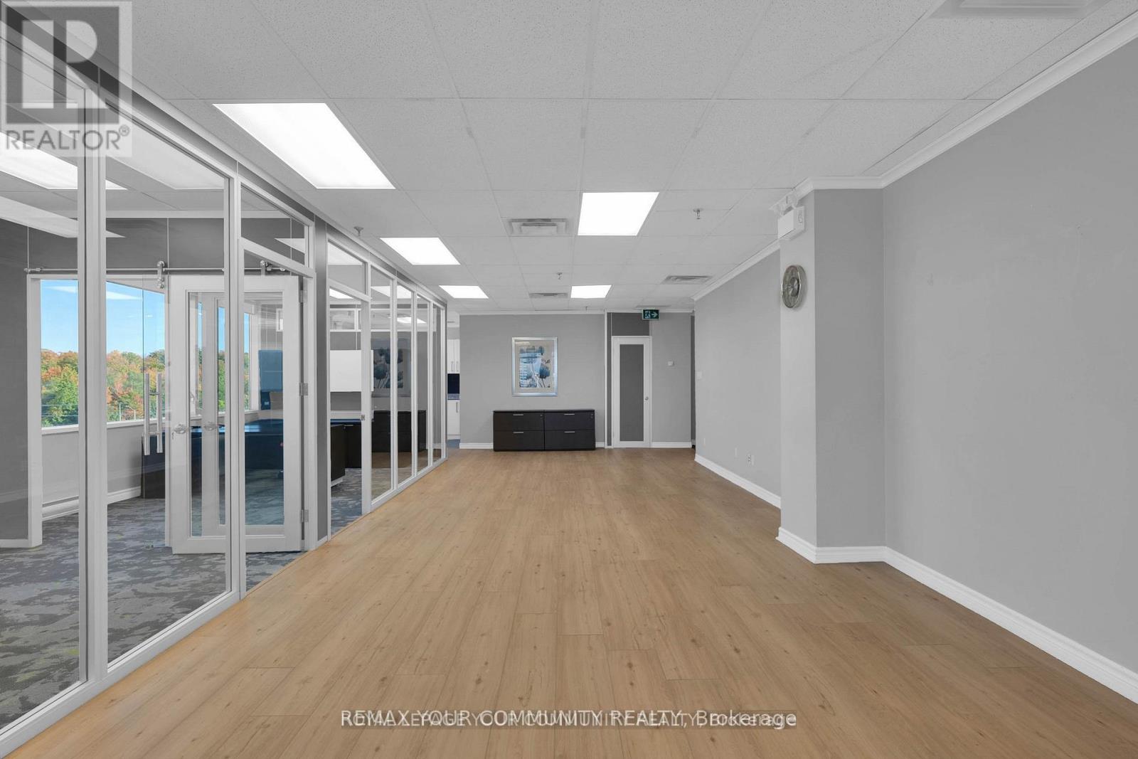 Welcome to a landmark opportunity in one of the areas most prestigious professional office condominiums. From the moment you step inside, the stunning designer atrium entrance sets the stage for your business with a lasting impression of sophistication, success, & professionalism. Located on the penthouse northeast corner, Office Suites 603 & 604 offer an impressive layout designed to inspire productivity & elevate your brand. This premium office space features a spacious great room, multiple private offices, a fully equipped modern boardroom, sleek kitchenette, & utility space every element thoughtfully designed for functionality & style. Floor-to-ceiling windows wrap every room, showcasing unobstructed panoramic views & filling the space with natural light, creating a bright, airy, & motivating work environment. The contemporary furnishings complement the open, modern design, while the abundant natural light enhances both energy & creativity throughout the day. With all major utilities hydro, water, heating, & air conditioning conveniently included in the condo fees, your business can enjoy a truly hassle-free operational experience. Ample on-site parking ensures convenience for both your team & visiting clients. Strategically positioned in a prime industrial and commercial hub & directly adjacent to the rapidly expanding Markham Downtown, this location offers unmatched growth potential. Surrounded by dense residential communities, businesses here benefit from access to a strong labor supply, growing client base, & dynamic local economy. Seamless connectivity to major highways & public transit provides effortless logistics & easy access for clients & staff across the region. This is more than an office space its an opportunity to position your business in a high-profile, modern building designed for todays visionary leaders. Schedule your private tour today & experience how this one-of-a-kind penthouse office can redefine the way you work & showcase your success (id:64974)