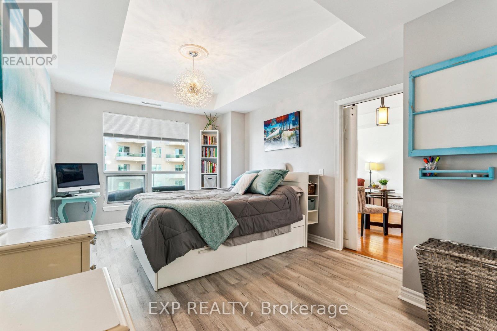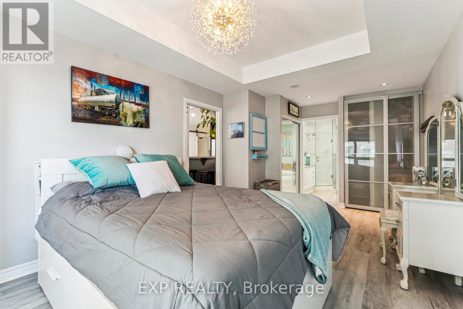 Welcome to Water View Condominiums, perfectly situated on the waterfront of Kempenfelt Bay on Lake Simcoe. This beautiful Sandpiper model at 6 Toronto Street in Barrie offers approximately 900 sq. ft. of bright, well-designed living space with 1 bedroom and 1.5 bathrooms. With desirable southern exposure, the suite is filled with natural light throughout the day. The open-concept layout provides excellent flow and features a walkout to a private balcony overlooking Barrie's marina, boardwalk, and scenic waterfront trails. The kitchen is thoughtfully designed with a breakfast bar, full appliance package, and plenty of storage. The spacious primary bedroom features his and hers closets and a 4-piece ensuite with a jetted soaker tub and glass-enclosed shower, while a convenient 2-piece guest bath and in-suite laundry enhance the suite's functionality and comfort. Residents enjoy an impressive selection of resort-style amenities including an indoor pool, hot tub, sauna, fitness centre, party room, games room, library, guest suites, outdoor pond, change rooms with showers, and visitor parking. The building also features updated common areas, a welcoming lobby lounge, and secure entry. Located just steps from Barrie's vibrant downtown, you'll enjoy easy access to shopping, restaurants, entertainment, and year-round waterfront activities. Barrie GO Transit, public transit, and Highway 400 are also nearby, making commuting to the GTA or escaping north to Muskoka simple and convenient. Experience carefree waterfront living in one of Barrie's most desirable condo communities. (id:64974)