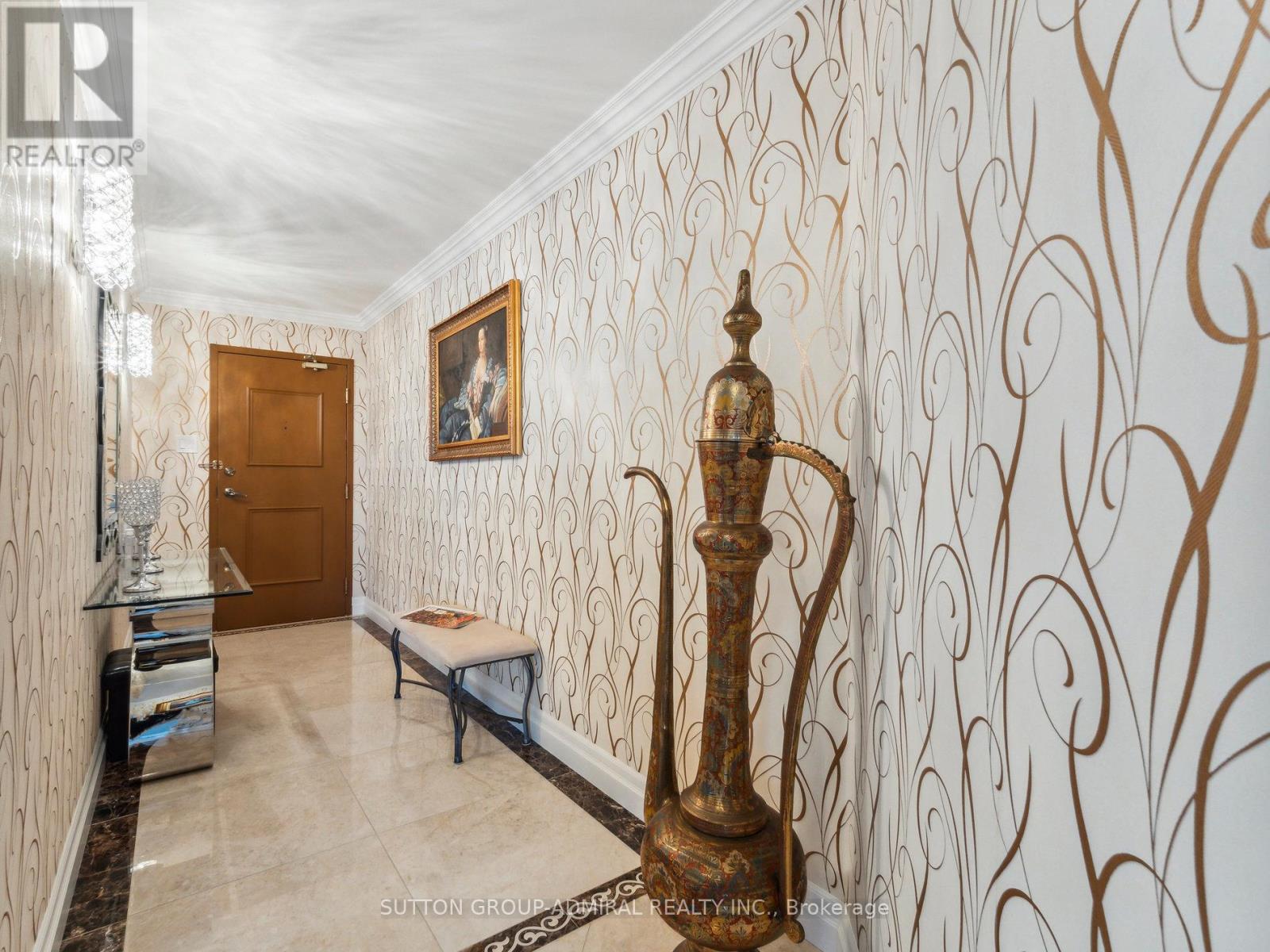 Largest 1,546 Sq Ft corner unit with quality finishes! Beautifully designed & sun filled with great open views! Amazing floorplan, meticulously maintained, spacious family-size living & dining areas, high quality kitchen, stunning breakfast area, breathtaking front garden views, two large bedrooms, huge master with ensuite bath & a walk-in closet, two full stunning washrooms, closet organizers in both bedrooms & in the foyer, large laundry room with a sink & a beautiful inviting foyer. Simply impressive! High quality kitchen cabinets, high quality appliances, marble floors, granite counters, solid wood floors, high baseboards, crown moldings, smooth ceiling, beautiful light fixtures, pot lights, curtains, custom painted doors - one of a kind! Convenient same floor locker & 2 tandem parking spots (can park 4 cars)! Luxury 7 Townsgate building with exceptional amenities: 24hrs concierge, indoor pool, jacuzzi, sauna, gym, billiards, squash, basketball, pickleball courts, library, walking trail, indoor summer garden, gazebos & visitor parking. The building is located in a perfect Thornhill location at the NE corner of Bathurst/Steeles with walking distance to everything! Grocery stores, restaurants, cafes, parks, places of worship, TTC at your door step & much more. Book your showing today! (id:64974)