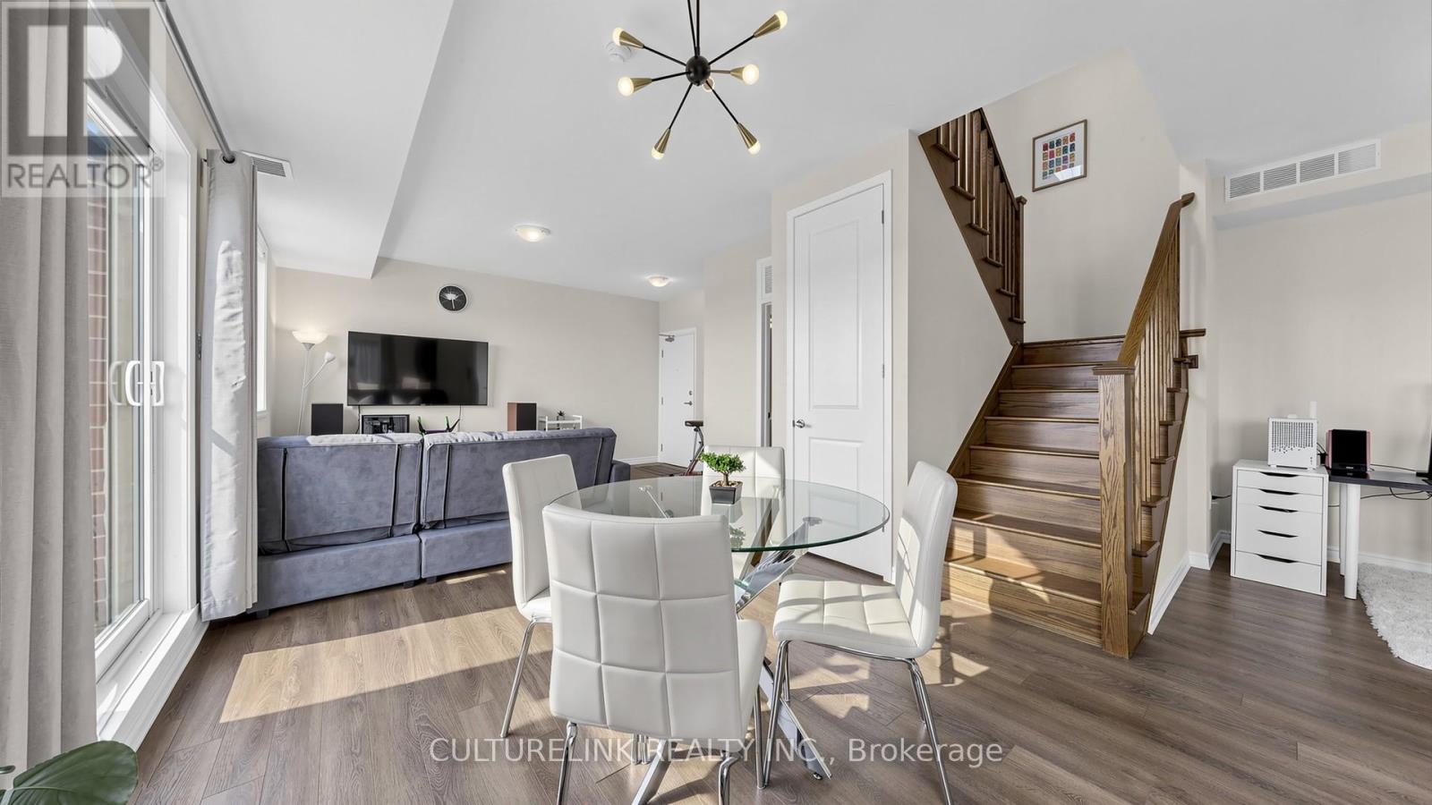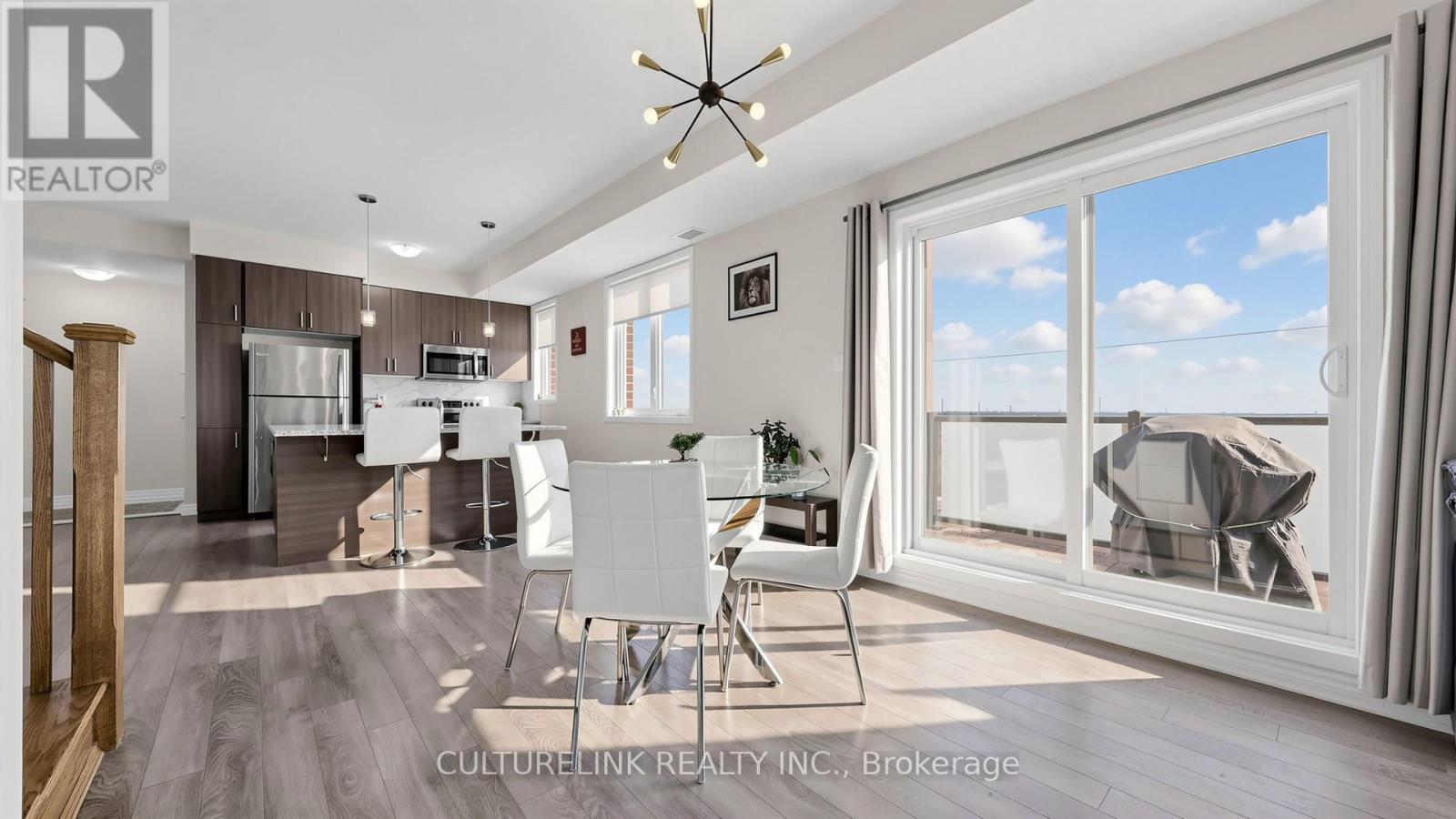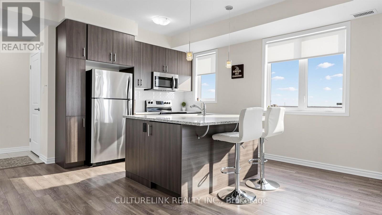 Stylish Mattamy Condo Townhome in the highly desirable Seaton, Pickering! This turnkey, bright, and spacious 1,656 sq.ft. home features 2 bedrooms and 3 bathrooms, 9-ft ceilings on the main floor, and large windows that provide abundant natural light throughout. The main-floor living room can be converted into a third bedroom, offering flexible living space. The open-concept kitchen boasts a large centre island, granite countertops, and stainless steel appliances, with a walkout to a spacious balcony-perfect for BBQ gatherings while enjoying unobstructed east-facing views. Elegant oak stairs add a refined touch to the home. The large primary bedroom offers two walk-in closets and a double-sink ensuite. Second-floor laundry provides added everyday convenience. Enjoy direct access to the garage and a private driveway. Situated in a family-friendly neighbourhood, this home is close to Seaton hiking trails, golf courses, Highways 401 & 407, Pickering GO Station, and Pickering Town Centre. An ideal opportunity for first-time buyers or young families. Don't miss this fantastic opportunity! (id:64974)