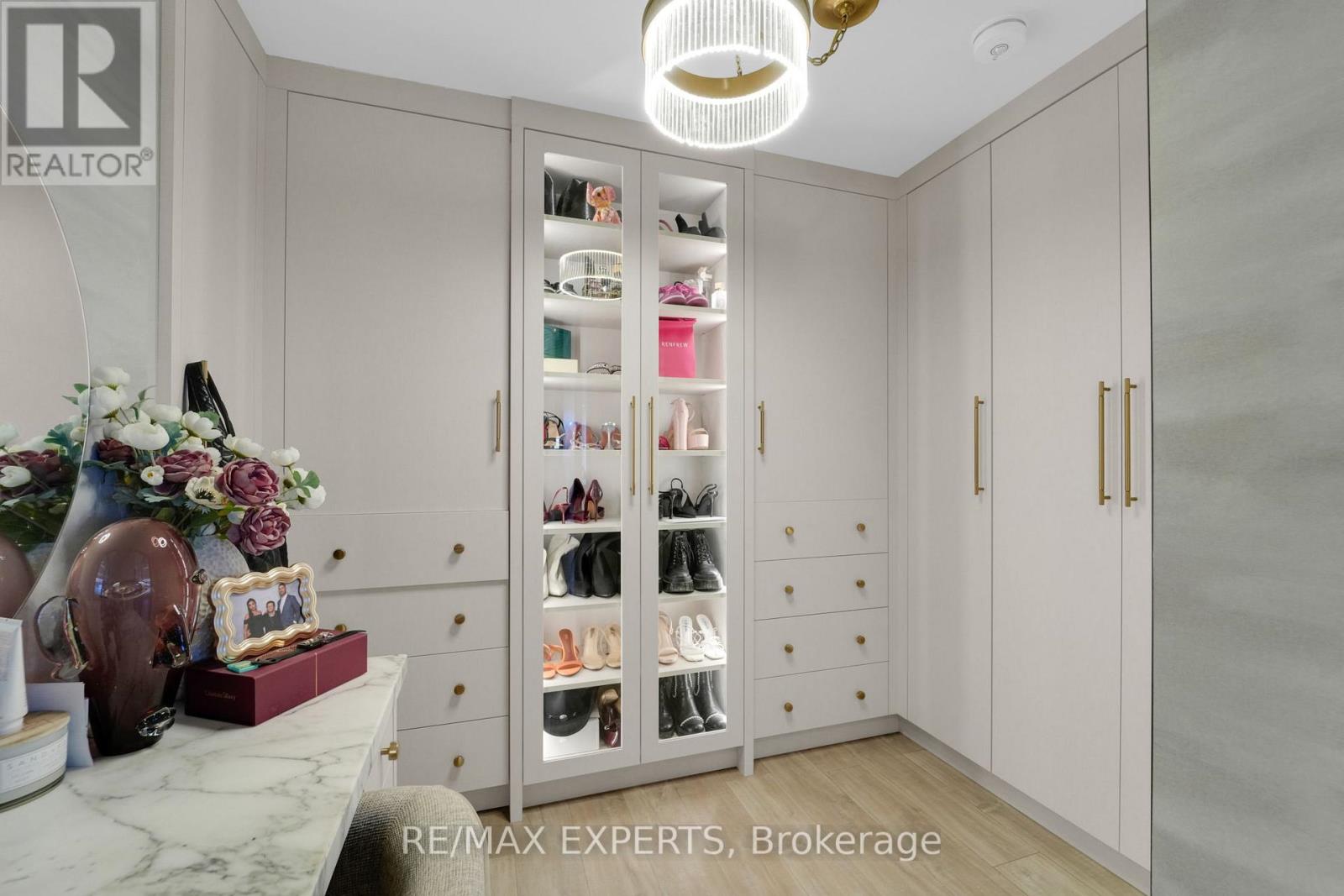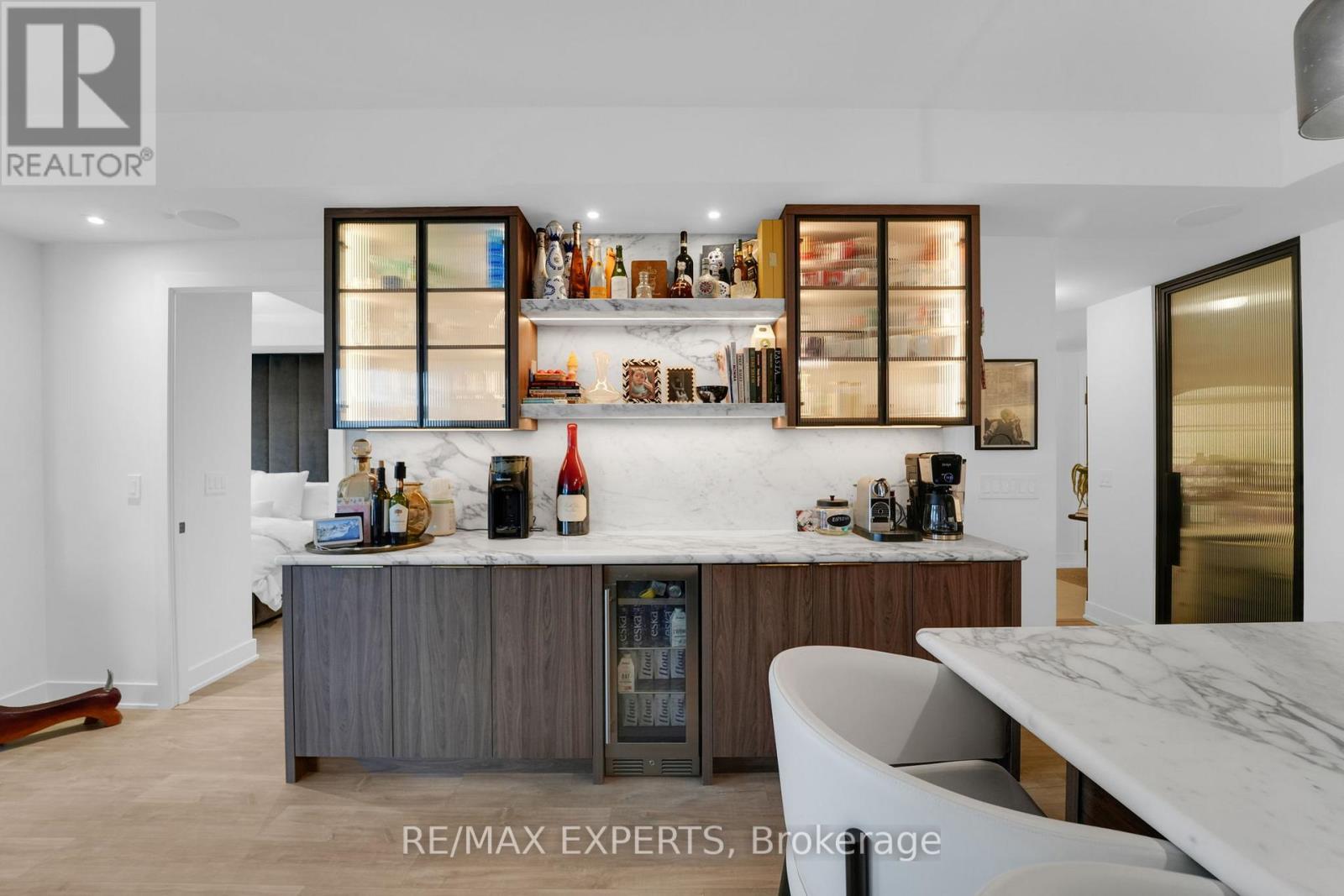 Welcome to a truly one-of-a-kind luxury residence where every inch has been elevated far beyond builder standard. Fully redesigned with exceptional attention to detail, this suite delivers the feel of a custom home in the heart of downtown.The moment you enter, the expanded foyer sets the tone with custom millwork, built-in entry storage, designer wall treatments, and pot lights throughout. Smart features include Lutron lighting controls, Nest climate systems, electric blinds in the main area, blackout drapes & sunshades in the bedrooms, plus Sonos speakers in every room.The kitchen has been completely renovated and expanded to maximize both function and style, featuring custom cabinetry, pantry storage, a 27-inch upgraded sink, induction cooktop, 36-inch fridge and stove, 28-bottle wine fridge, and 65-can beverage fridge. Wrapped marble counters and surfaces provide a luxurious finish with added durability. LED lighting accents the kitchen and closet cabinetry for a polished, upscale feel.The living area is anchored by a striking marble electric fireplace mantel with both heat and cool air fan. Bathrooms have been fully renovated with new custom finishes and faucets throughout. The primary suite was enhanced with additional custom closet space, while the third bedroom has been transformed into a stunning customized walk-in dressing room. A second custom walk-in closet and dedicated office add even more flexibility.The showpiece is the spectacular 1,000+ sq ft private terrace-an entertainer's dream rarely found in condo living. Complete with a built-in outdoor kitchen, matte black granite counters, custom 36-inch gas BBQ with rotisserie, outdoor fridge, shelving, garbage storage, two gas lines, water connection, and Sonos speakers, this outdoor space is in a class of its own.Located steps to Kensington Market, Chinatown, parks, transit, shopping, dining, and schools including Ogden JMS, Queen Alexandra MS, and Harbord CI, this is downtown luxury at its finest. (id:64974)