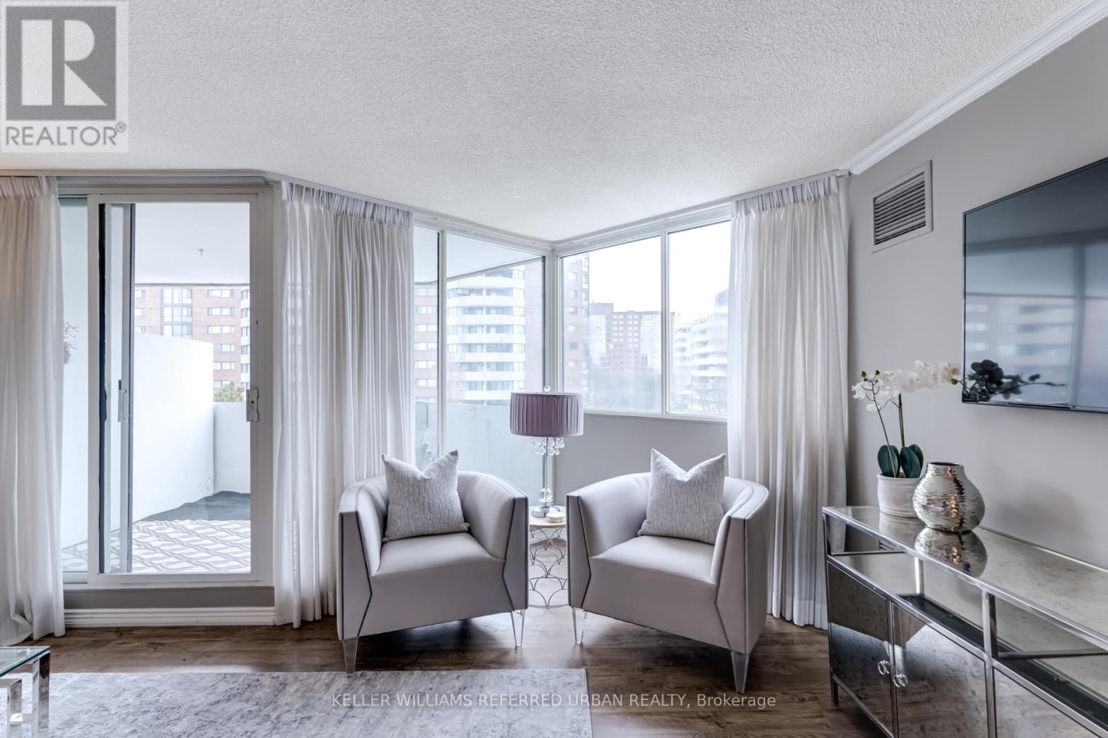 OPEN HOUSE SUN 2 - 4PM. *Spring Bonus* purchase this unit and this outdoor furniture is included! Patio Season is just around the corner, and this sunny outdoor living area is waiting! Quiet, east-facing and perfect for morning coffee or container gardening while enjoying a peaceful, treed view. Inside, you'll find a house-sized unit is 1,385 sq. ft. of move-in ready living.This suite offers 3 full bedrooms, 2 bathrooms, in a bungalow-style layout: large bedrooms - the primary bedroom is HUGE - each with custom closet organizers, both full bathrooms have been upgraded, and a full-sized laundry room with extra storage, all in their own wing. The real star of the show is the large galley kitchen features NEW (2026) white cabinetry, pantry, coffee bar, NEW stone counters(2026), NEW flooring (2026) and newer appliances, along with a custom glass backsplash. A separate dining room makes it easy to host family dinners, and the living room is airy and inviting.The convenience of this unit extends even to the side-by-side parking for two vehicles that is just steps from the entrance, and the large storage locker, both of which are included. This quiet, dog-friendly building has a park-like setting, excellent amenities. Monthly condo fees are less than $1 a square foot and yet include ALL utilities - heat, hydro, water, A/C, cable TV, and high-speed internet for worry-free budgeting. Additional recreation and fitness facilities include outdoor pool, gym, party room, billiards room, ample visitor parking. Take an evening stroll or walk the dog in meticulously maintained grounds. On-site property management adds to resident convenience. Located just steps from Yonge Street, transit, shopping, groceries, and restaurants. Everything you need is at your doorstep. INCREDIBLE DOWNSIZING VALUE at $540 a square foot! (id:64974)