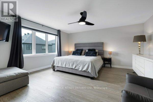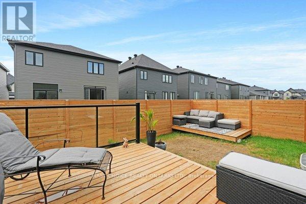 Welcome to 605 Ribbon Street; an impeccably upgraded Sugarplum model by Minto in the desirable Mahogany community of Manotick. This 4-bedroom home features rich hardwood flooring across both the main and second levels. A true chefs kitchen adorned with quartz countertops, an extended island, and premium finishes. The open-concept main floor design creates a warm and inviting space, perfect for entertaining family and friends while complemented by the welcome addition of a main floor office. Upstairs you will discover four spacious bedrooms, including a primary retreat complete with a walk-in closet and a luxurious ensuite. Three additional bedrooms are served by a full bathroom, while a convenient second-floor laundry room adds everyday ease. The fully finished lower level extends your living space with heated floors and a full bathroom, making it ideal for guests, recreation, or a home gym. Throughout the home, custom blinds provide both style and function. The garage impresses with epoxy flooring and custom steel cabinetry, offering exceptional storage and organization. Moving outdoors, the fully fenced backyard is designed for entertaining, with multiple decks creating the perfect setting for summer barbecues, gatherings, or quiet evenings all while being minutes away from the vibrant Manotick Main Street providing tons of shopping, restaurants, and entertainment! With its thoughtful upgrades, functional layout, and prime location, this move-in ready home blends style, comfort, and convenience in one of Ottawa's most desirable communities. (id:64974)