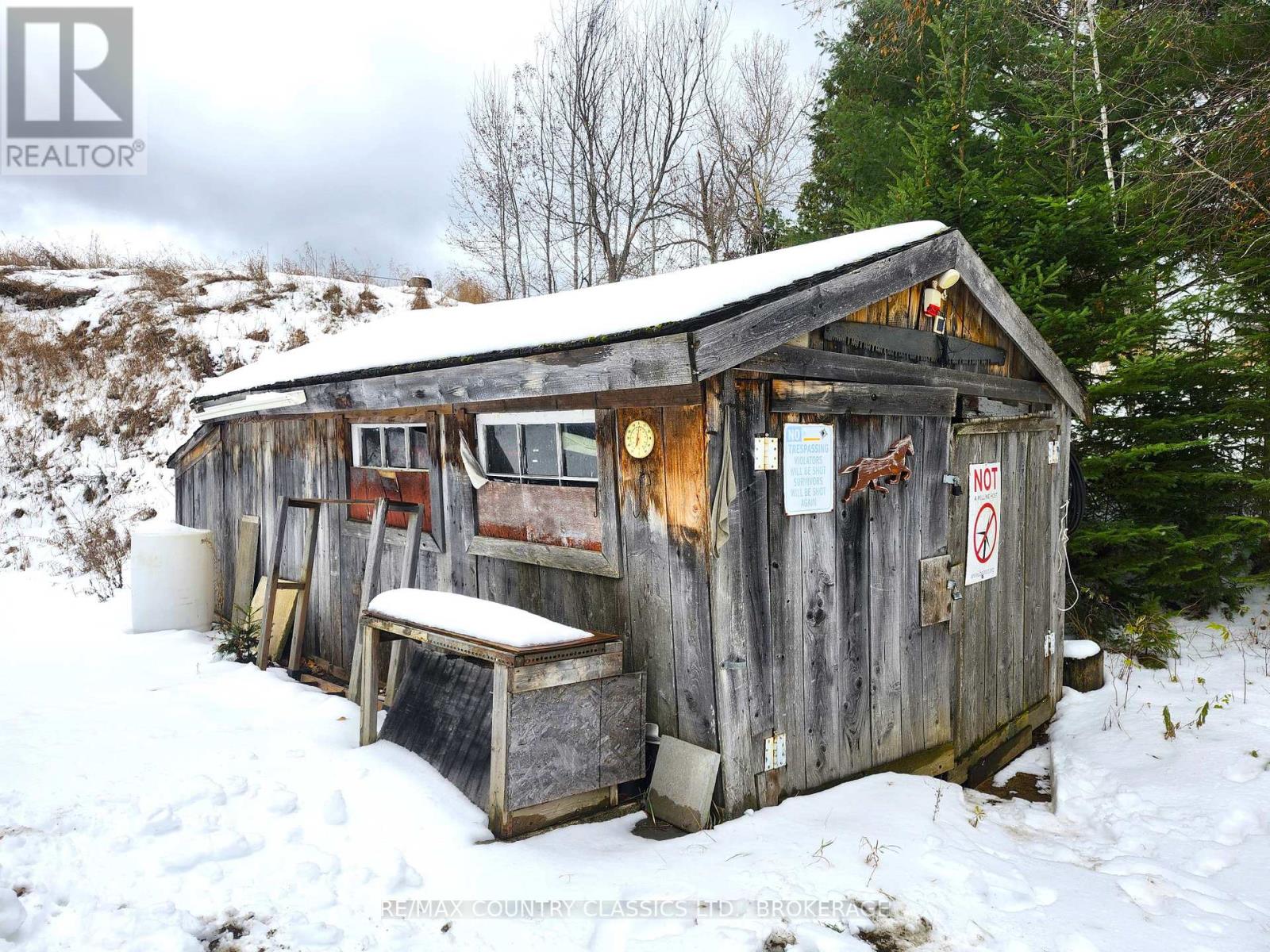 Denbigh is the place you want to be if you're hankering for an off the beaten path hunt camp or a four season off water cottage/home. Located on a township maintained road, this older mobile home is set back from the road and features a primary bedroom (propane stove), utility room or second bedroom, four piece bathroom, kitchen/living room (second propane stove); sitting room addition and enclosed front mudroom. There is also a functioning septic system (2018), drilled well and an excellent newer 20' x 24'8' garage with a concrete floor and metal roofing. There is substantial Crown Land in this neck of the woods along with ponds and lakes including easily publicly accessible Denbigh Lake at the corner of Bridge St. and Hwy 41. This is fun on a budget in the Land O'Lakes Tourist Region! (id:64974)