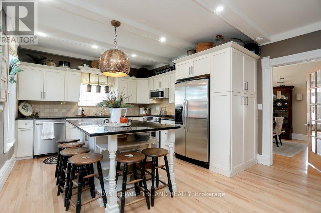 Welcome Home to this Stunning Red Brick Home with 5 bay detached garages, in Union, Ontario! Perched proudly atop a hill since 1890, this breathtaking red brick home in Union, Ontario, is a timeless masterpiece a rare opportunity to own a slice of history while enjoying modern comforts. Meticulously maintained from the ground up, this grand 3-bedroom, 2-bath home blends historic charm with modern luxury and sits on almost an acre of beautifully landscaped property. Step inside and be transported to an era of classic elegance, where soaring ceilings, intricate woodwork, and original architectural details seamlessly complement thoughtful updates. The lower level offers a spacious family room, a rec room with a pool table, and a separate entrance perfect for entertaining or a private retreat. Outside, your backyard oasis awaits! Featuring a gorgeous inground pool (2022) with a brand-new heater (2024), stamped concrete, a covered porch with composite, along with vinyl millwork. The deck is pressure-treated with vinyl. upgraded lighting (2018), and a luxurious granite outdoor kitchen, this space is perfect for summer relaxation and entertaining. Surrounded by nature in your own private setting. Impressive 5 bay garage offers endless possibilities! Bay 1 Man Cave with ample space for sporting goods and extra parking. Bay 2 Workshop. Bay 3 & 4, Bay 5 Club Room with epoxy flooring, antique barn board, heat pump (2023) for entertaining. This property provides the perfect blend of privacy and convenience. Just minutes from the Blue Flag beaches of Port Stanley, you can enjoy beach life, theatre, fine dining, cozy cafes, live entertainment, and boutique shopping, all while retreating to your own hilltop haven. A timeless treasure in a coveted location, this is a once-in-a-lifetime opportunity to own a piece of Union's rich history! Too many upgrades and features to list. Experience the perfect blend of history, luxury, and lifestyle! (id:64974)
