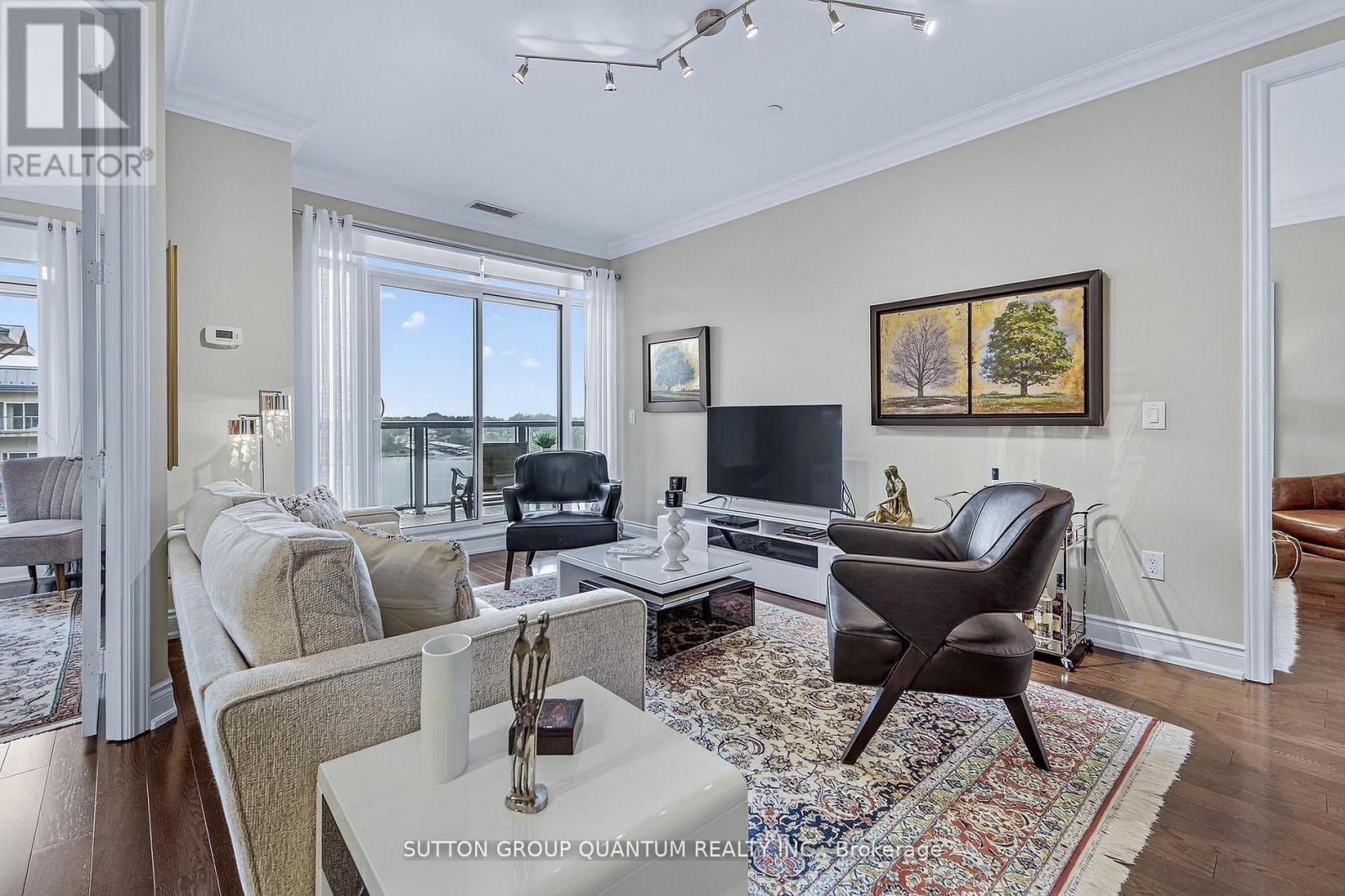 Welcome to your dream waterfront retreat! This beautifully upgraded and impeccably maintained 2-bedroom condo offers resort-style living at its finest in the prestigious Orchard Point Harbour community on Lake Simcoe. Step inside this bright and spacious residence featuring elegant hardwood floors throughout, 8' interior doors, and crown moulding that adds a touch of luxury to every room. The open-concept kitchen, dining, and living areas are perfect for entertaining, complete with a seamless walkout to the large private balcony the ideal spot to relax and take in breathtaking lake views. The balcony also includes a gas hookup for outdoor grilling and year-round enjoyment. The primary bedroom is a serene escape, offering a walkout to the balcony with stunning waterfront views, a spa-like 5-piece ensuite bath for ultimate comfort, and a spacious W/I closet outfitted with custom shelving and organizers. A generous laundry room provides added convenience and storage. Orchard Point Harbour offers a truly elevated lifestyle with resort-style amenities including a party room, billiards and theatre room, guest suite, library, hot tub, outdoor pool, and gym. For boating enthusiasts, boat slips are available to rent--making lake living even more convenient. Just minutes from shopping, restaurants, parks, rec center, and entertainment. Don't miss this rare opportunity to own this luxurious lakefront condo and enjoy the ultimate in comfort, style, and convenience! (id:64974)