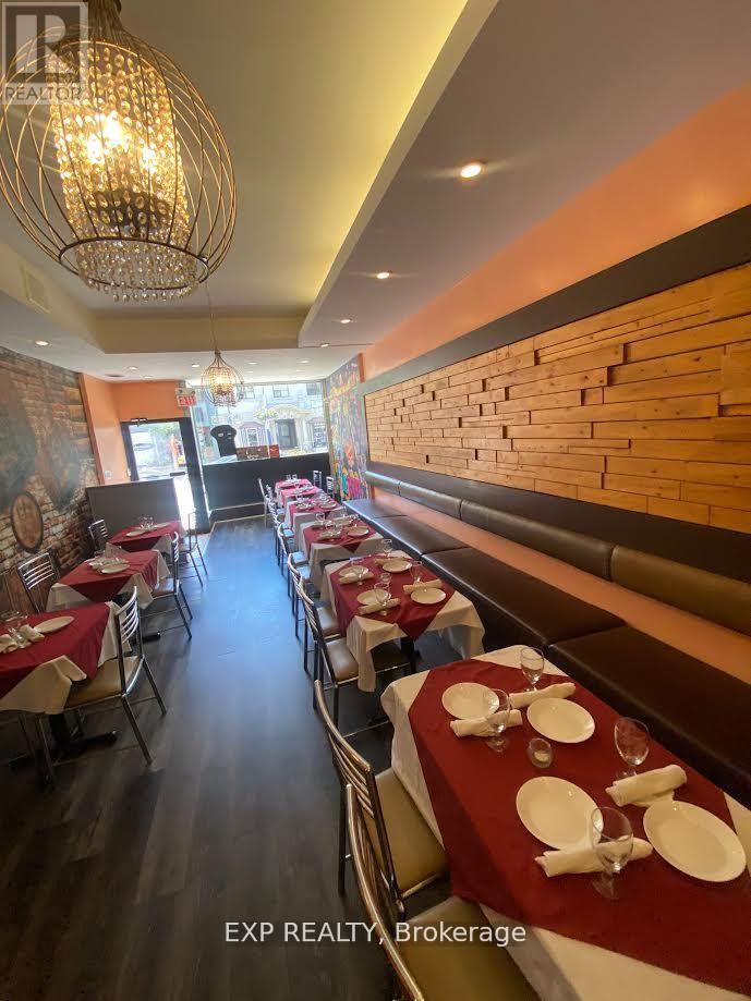 Well-established Turnkey restaurant opportunity in Toronto, currently operating as an Indian cuisine concept. Recently renovated and equipped with a fully built-out commercial kitchen, including appliances, refrigeration, and freezer. Strong reported sales of over $90,000/month (as per seller). Seating capacity for 35 guests with LLBO. Low gross rent of approx. $6,548/month including TMI. Excellent pedestrian traffic and walkable to Niagara College - Mirvish Campus. Flexible use with potential to convert to other approved cuisine concepts. Ideal for owner-operators seeking a proven location with strong fundamentals. (id:64974)