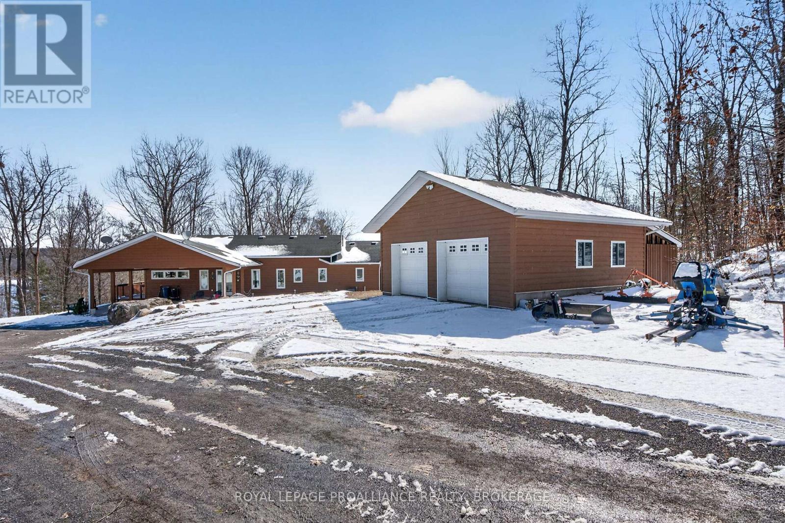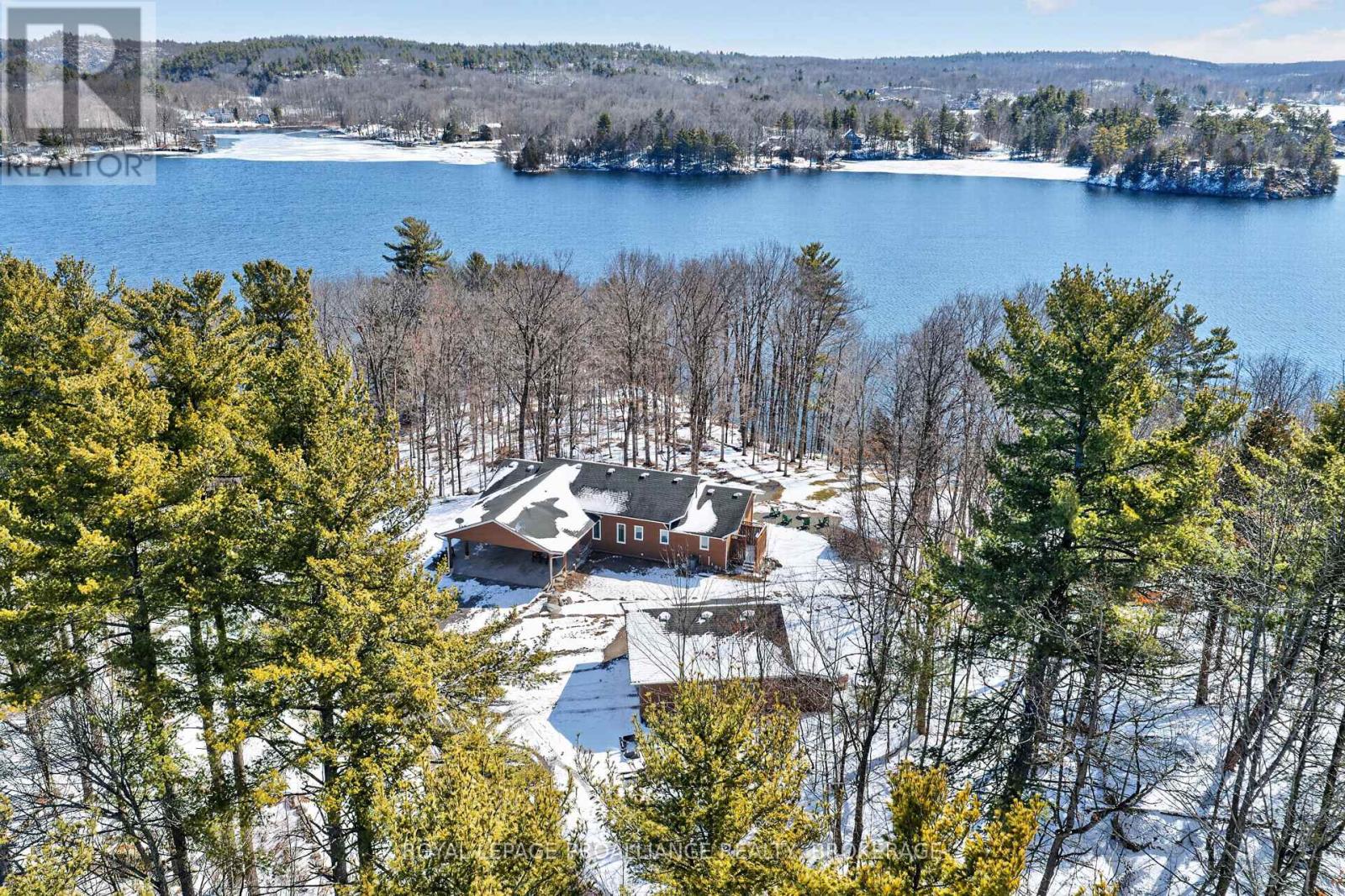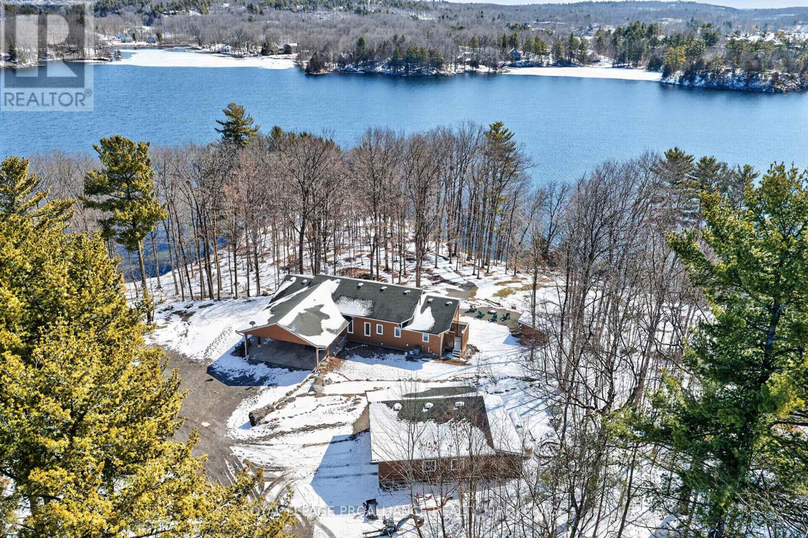 Private waterfront estate on Whitefish Lake - over 12 acres of unmatched serenity. Welcome to an extraordinary lakeside retreat offering total privacy and breathtaking natural beauty. Set on 12 acres of mature hardwood bush with an impressive 1,700 feet of pristine shoreline, this one-of-a-kind property delivers the ultimate waterfront lifestyle. Perched in an elevated position, the custom-built bungalow captures panoramic views of Whitefish Lake, with a gentle slope leading you down to the water's edge. Here, you will find the perfect combination of deep, clean waterfront and a rare sandy beach, ideal for swimming, boating, and relaxing in total seclusion. Inside, the home is designed to impress. A stunning cathedral ceiling crowns the open-concept living space, where expansive windows flood the interior with natural light and frame the spectacular lake views. The layout offers both comfort and functionality, featuring three spacious bedrooms and 2.5 bathrooms, perfect for family living or hosting guests. The fully finished walkout basement extends your living space and provides seamless access to the outdoors-ideal for entertaining or enjoying quiet evenings surrounded by nature. Additional features include a detached two-car garage, on-demand backup generator for peace of mind, gently sloping terrain providing easy access to the waterfront and absolute privacy in a tranquil, natural setting. This is a rare opportunity to own a legacy property on Whitefish Lake-where luxury, nature, and privacy come together in perfect harmony. (id:64974)