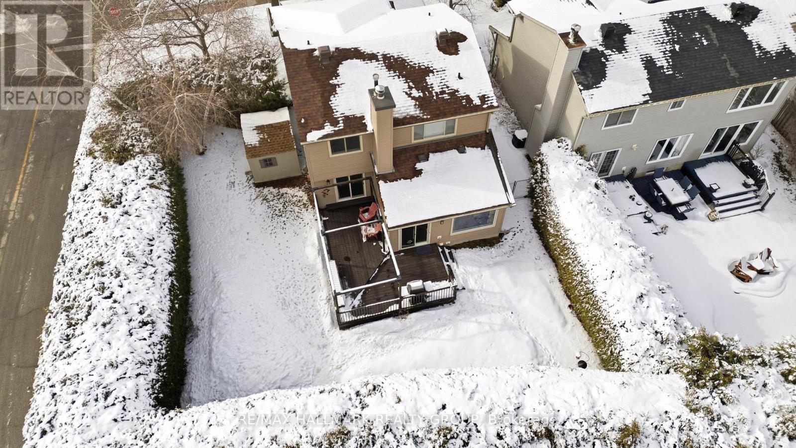 Welcome to this beautifully renovated home in the highly sought-after Chapel Hill North community - just steps to schools, playgrounds, and scenic forest trails, with convenient access to transit, shopping, and everyday amenities. This bright sun-filled home features hardwood flooring throughout. The inviting living room boasts a beautiful bay window while the dining room offers patio doors leading to a private deck complete with a pergola -perfect for relaxing or entertaining. The kitchen, fully renovated in 2023, showcases timeless finishes, an eating bar, and a sink overlooking the family room - allowing you to stay connected while enjoying views of the backyard. The cozy family room features a wood-burning fireplace and patio doors that open to a beautifully private outdoor space. Main floor laundry adds everyday convenience. Upstairs, the second level was completely renovated in 2024, featuring a stunning maple staircase and railing, along with maple flooring throughout. The main bathroom and spacious primary ensuite have both been tastefully renovated with modern finishes. The lower level offers a standout soundproof media room - ideal for movie nights or music enthusiasts - along with ample storage space. This home has been lovingly updated and maintained -ready for a new family to enjoy.! See the list of upgrades attached for a full appreciation of the added quality in this home. (id:64974)