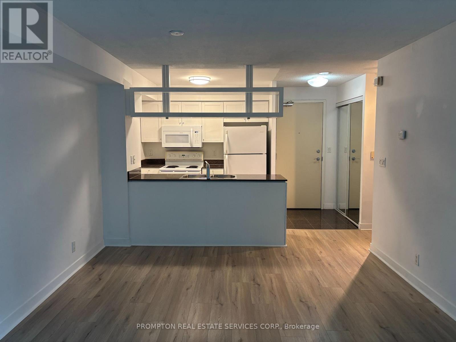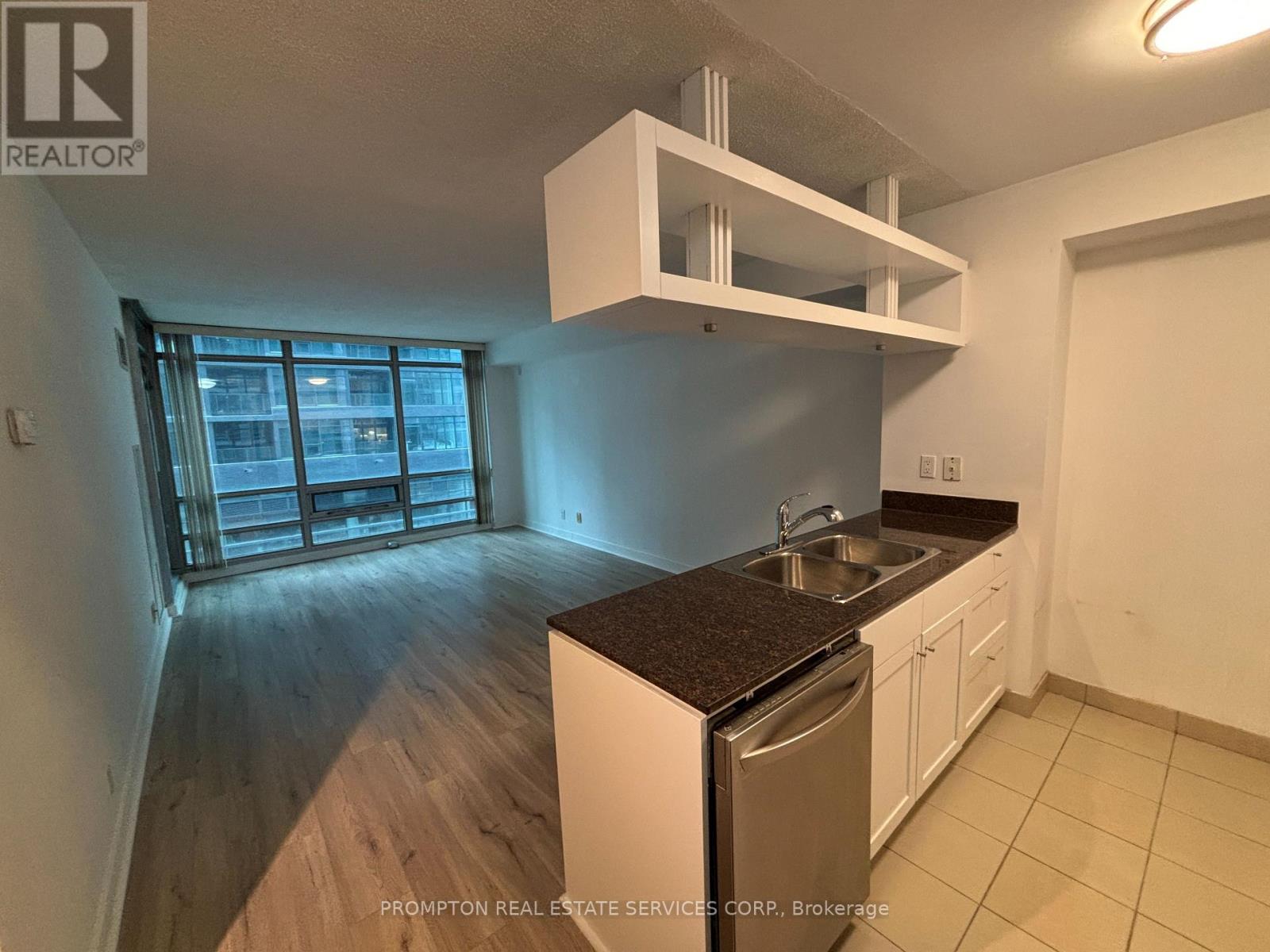 Welcome to this professionally managed 1-bedroom, 1-bathroom suite. This bright unit offers an open-concept, freshly painted kitchen with a breakfast bar, providing a functional layout for everyday living and entertaining. Hydro and one parking spot is included. Residents enjoy excellent building amenities including a theatre room, 24-hour concierge, sauna, guest suites, and BBQ area. Located close to grocery stores, restaurants, and major downtown attractions such as the Rogers Centre, The Well, Ripley's Aquarium of Canada, and the CN Tower. (id:64974)