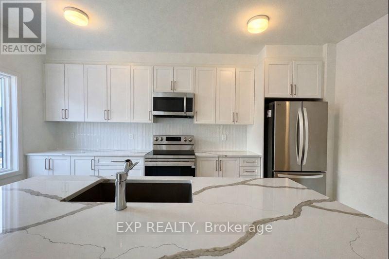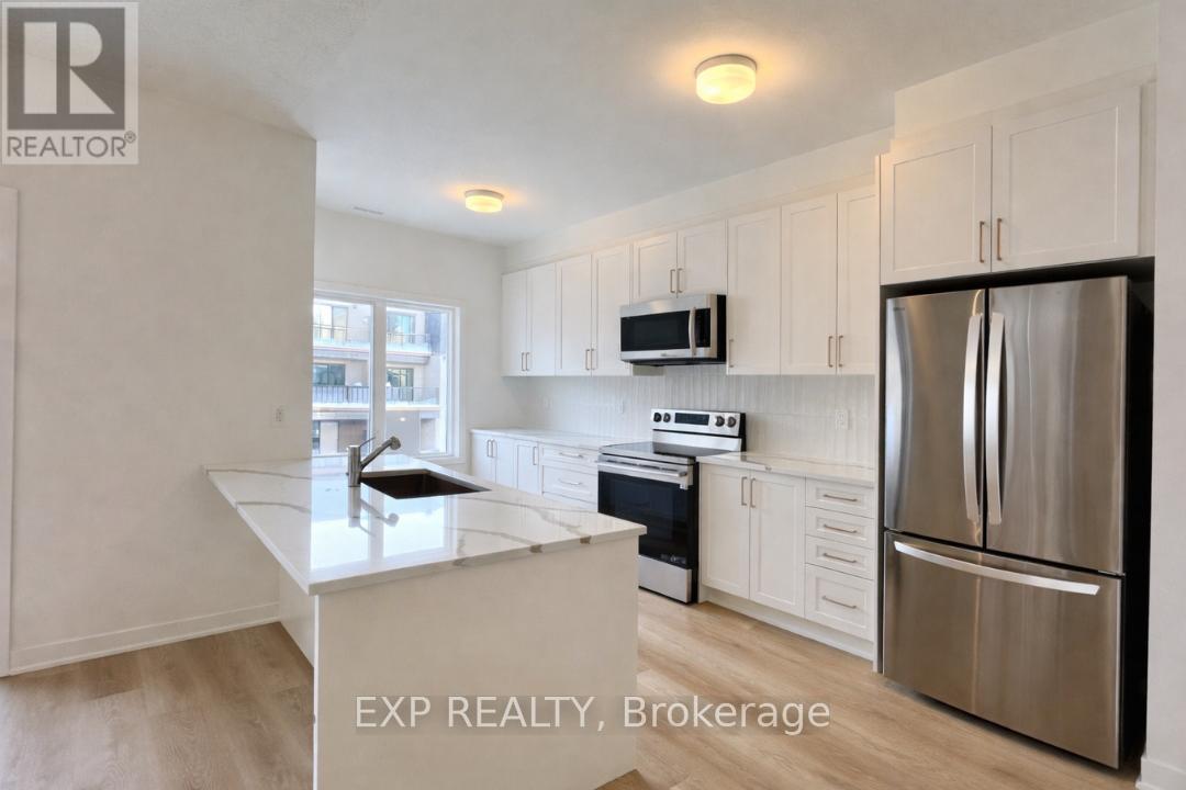 FREE Wi-fi for 1 year!! Welcome to this exceptional corner-unit townhome in North Kanata's desirable Northwoods community. This newly constructed Floret model by Mattamy offers approximately 1,840 sq. ft. of Energy Star-rated living space, featuring 3 bedrooms and 2.5 bathrooms designed for modern living.The entry level includes a versatile den, perfect for a home office or study. Upstairs, the main living level showcases an airy open-concept layout with elevated ceilings and abundant natural light. The upgraded kitchen is a standout, featuring quartz countertops, premium high-end stainless steel appliances, enhanced cabinetry, ample pantry storage, and direct access to a private balcony-ideal for entertaining or everyday enjoyment. The top floor is dedicated to comfort and functionality, offering three well-proportioned bedrooms, including a primary suite with its own ensuite bathroom. A second full bath serves the additional bedrooms, along with a conveniently located laundry area. An additional private balcony on this level provides a quiet outdoor retreat. Additional highlights include an unfinished basement for extra storage, parking for two vehicles via the garage and driveway, and the benefit of an owned hot water tank, eliminating monthly rental costs. Ideally located close to Kanata's tech hub, March Road, Highway 417, and a wide range of shopping, dining, and everyday amenities, this property offers a perfect balance of modern comfort and convenience. (id:64974)
