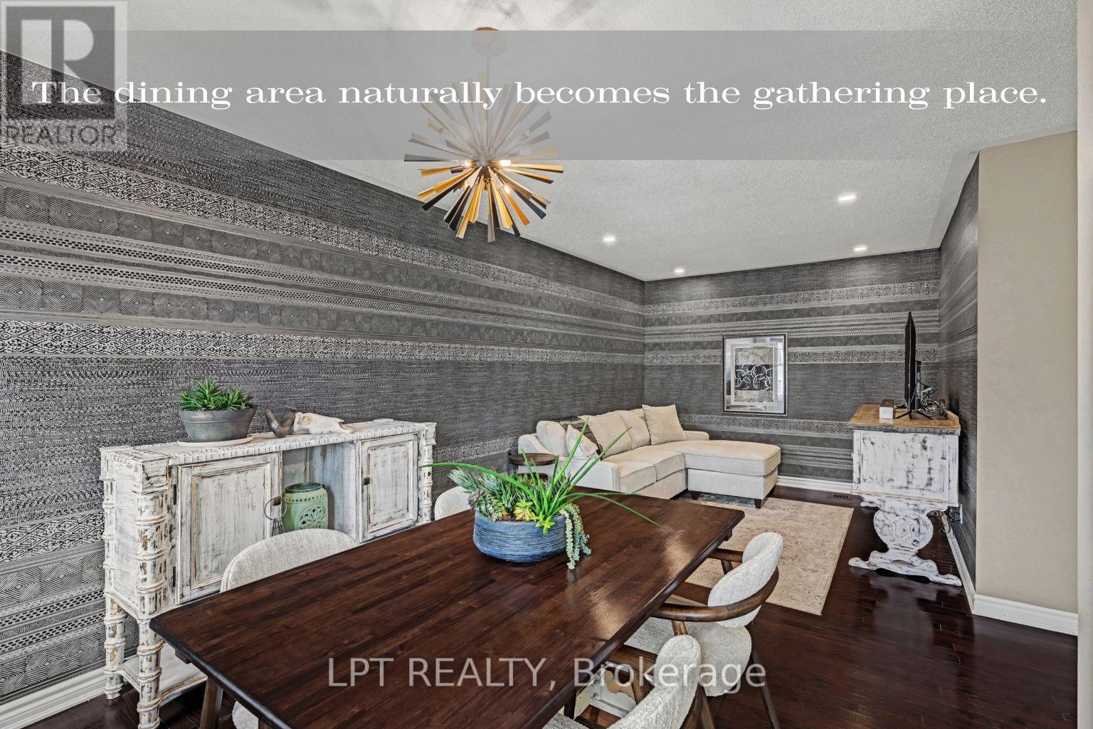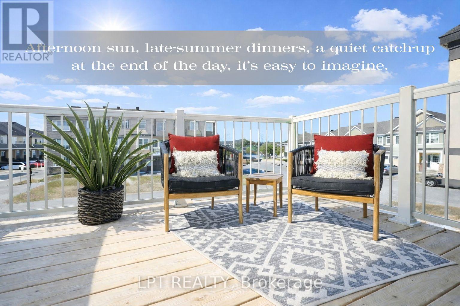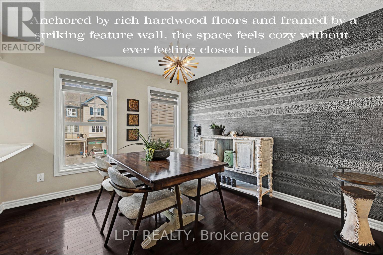 This is the kind of home that feels easy to settle into from the moment you pull up. Step inside to the entrance level, where everyday practicality is considered. The laundry is set up as a full room, (not just a closet) with built-in cabinetry and additional storage space beyond. Upstairs, the main living level is where the home comes together. The dining area naturally becomes the gathering place. It's the kind of space where dinners linger and conversations stretch a little longer. The kitchen carries that same effortless flow. White quartz counters brighten the room, while finishing adds a subtle modern edge beyond typical builder finishes. A convenient pass-through keeps the kitchen connected to the dining area, making it easy to stay part of the conversation while cooking. The living room has a zen feel the moment you step in. Anchored by rich hardwood floors, the space feels comfortable without feeling closed in. Recently added pot lights make the room just as comfortable after sunset as it is during the day. Nearby, a powder room delivers a moment of surprise. Dark, dramatic and full of personality, it features a stone vessel sink set atop a custom vanity. Texture and moody tones give the space a boutique-hotel feel, bold, memorable, and completely one of a kind. On the 3rd level, the home shifts into a quieter retreat. The main bedroom offers room to breathe along with a walk-in closet that keeps everyday life organized. The ensuite continues the home's sense of character, with a vanity that feels more like furniture topped with granite. The 2nd bedroom is a flexible space that works well as a guest room or quiet home office. While more compact in size, the large window fills the room with natural light. It's an easy space to personalize. This is the kind of neighbourhood people hope for when moving to Kanata. It's residential and peaceful, yet always connected to what you need. (id:64974)