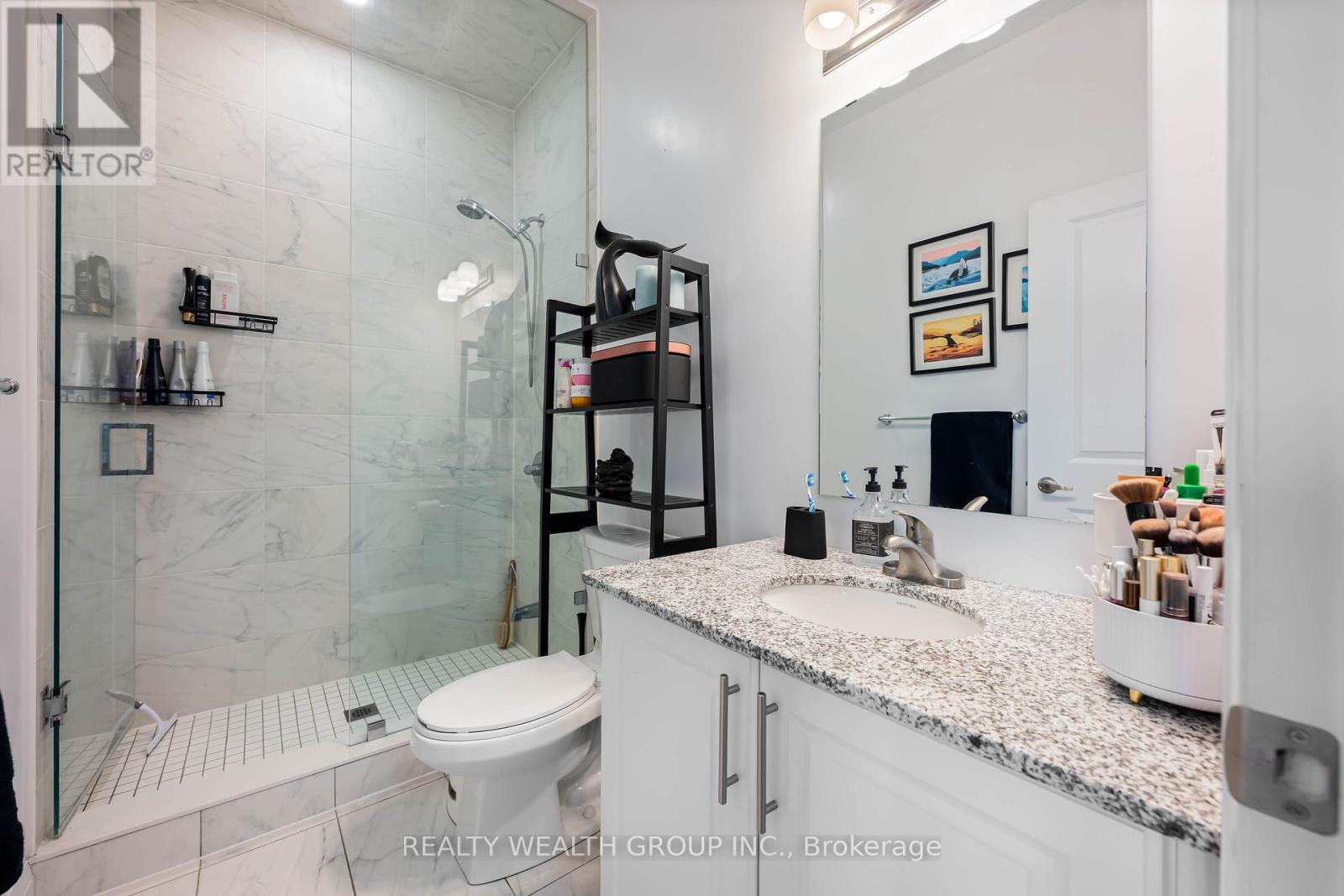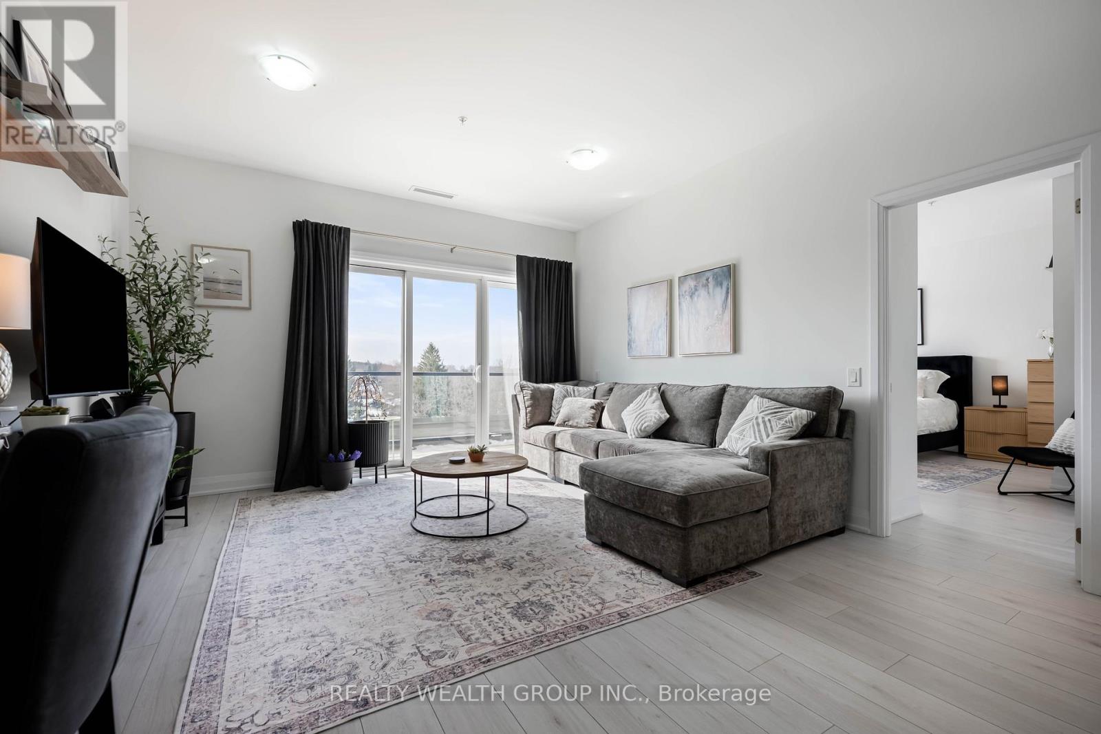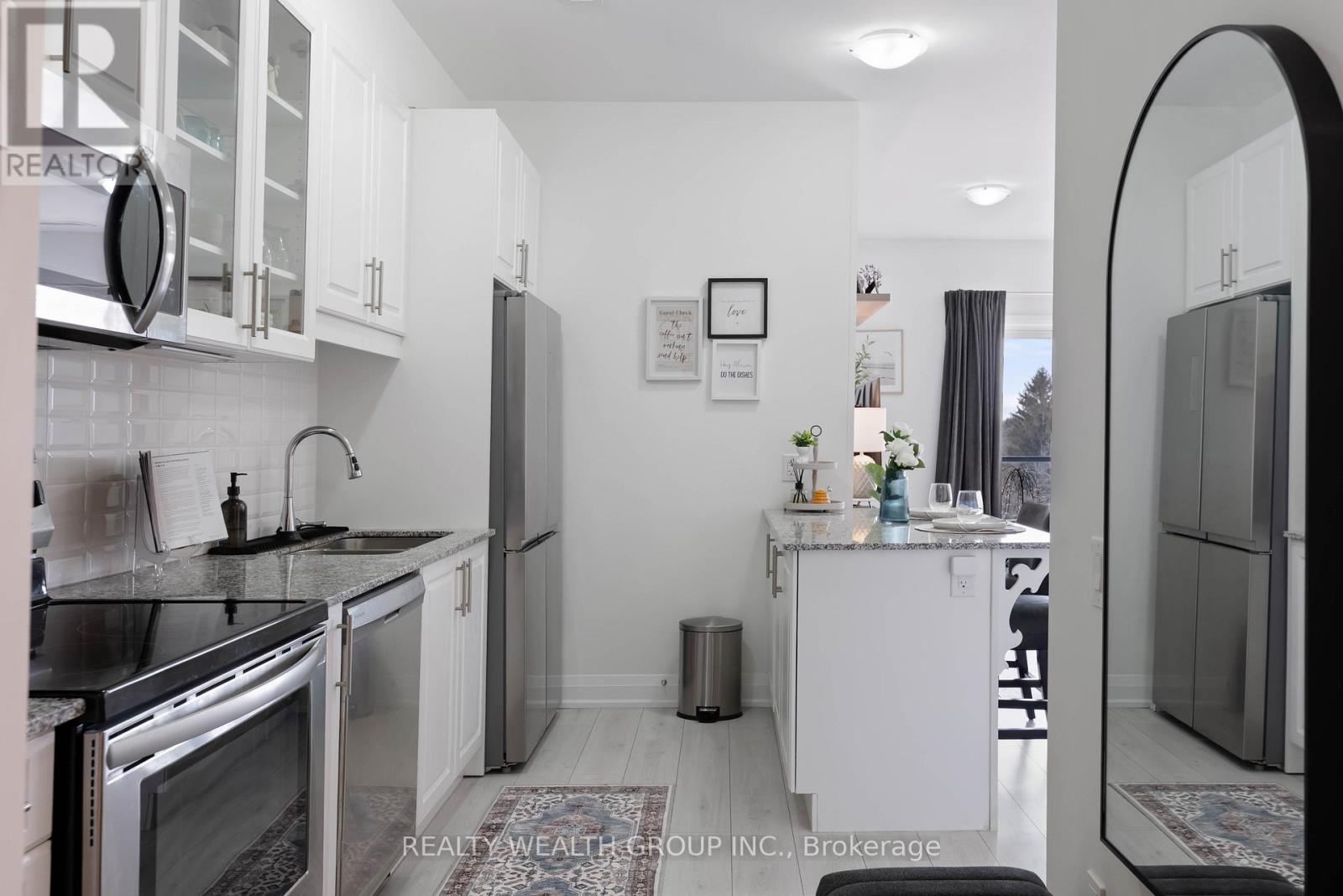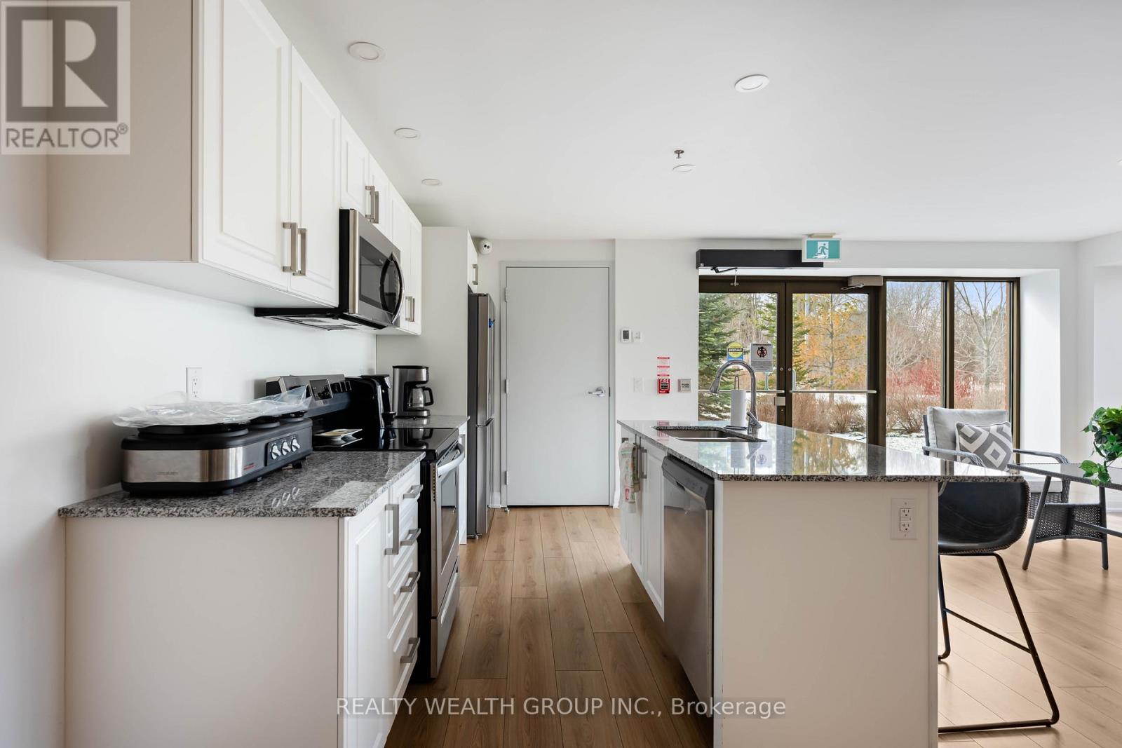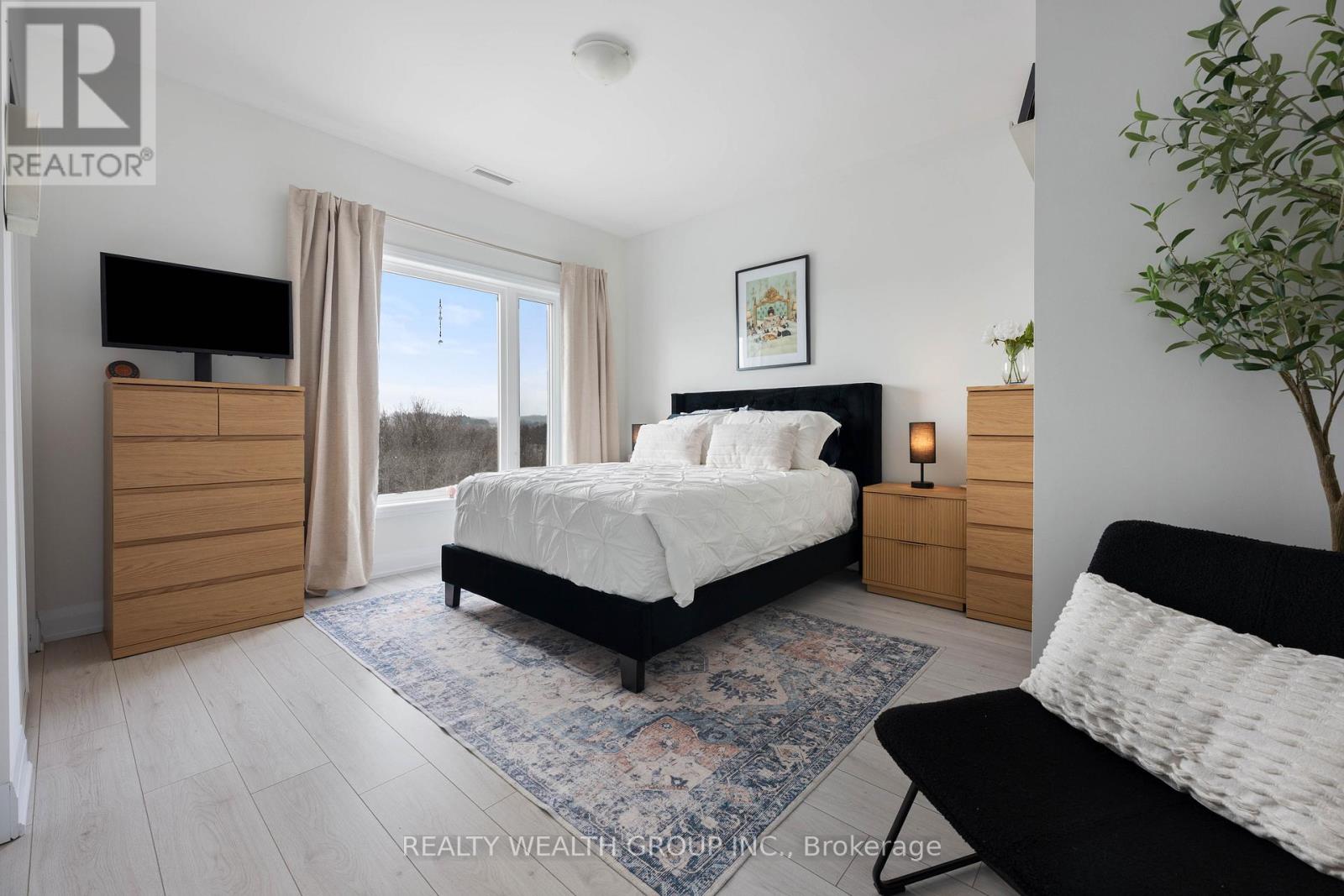 Welcome to penthouse living at its finest in the highly sought after Vista Blue Community. This stunning 1-bedroom, 2 bathroom condo offers 990 sq' of bright, beautifully maintained living, with an unobstructed view of the Tottenham Conservation / Pond! Step inside and be greeted by soaring 10ft Flat ceilings and an open concept layout designed for both comfort and style. The modern kitchen features elegant granite countertops, extended upper cabinets, 60" kitchen Island, SS appliances and ample space for cooking and entertaining. The spacious bedroom includes his & hers double closets and easy access to a spa-inspired bathroom complete with a custom floor to ceiling glass walking in shower! This thoughtfully upgraded unit includes a $5000 water filtration system and on demand hot water tank, ensuring convenience and peace of mind. Enjoy your morning coffee or unwind under the stars on your private balcony, complete with a BBQ gas hookup! This unit is perfect for taking in the sunsets!! offering a perfect blend of nature, luxury and convenience ! Additional features include exclusive underground parking space and locker, steps to a vibrant plaza and access to the Caledon Trail for walking and biking!! minutes to the 400 hwy!! Condo fee includes, Heat, Water, Parking, common Elements (id:64974)