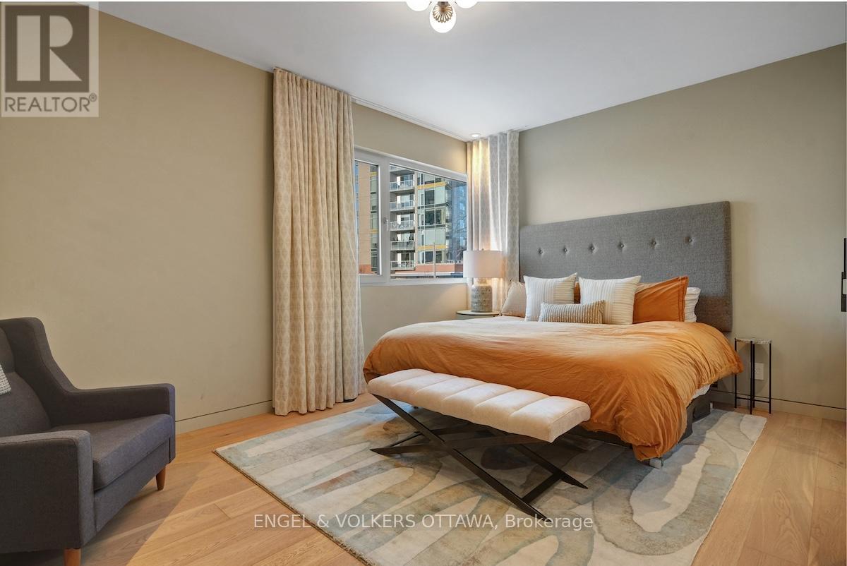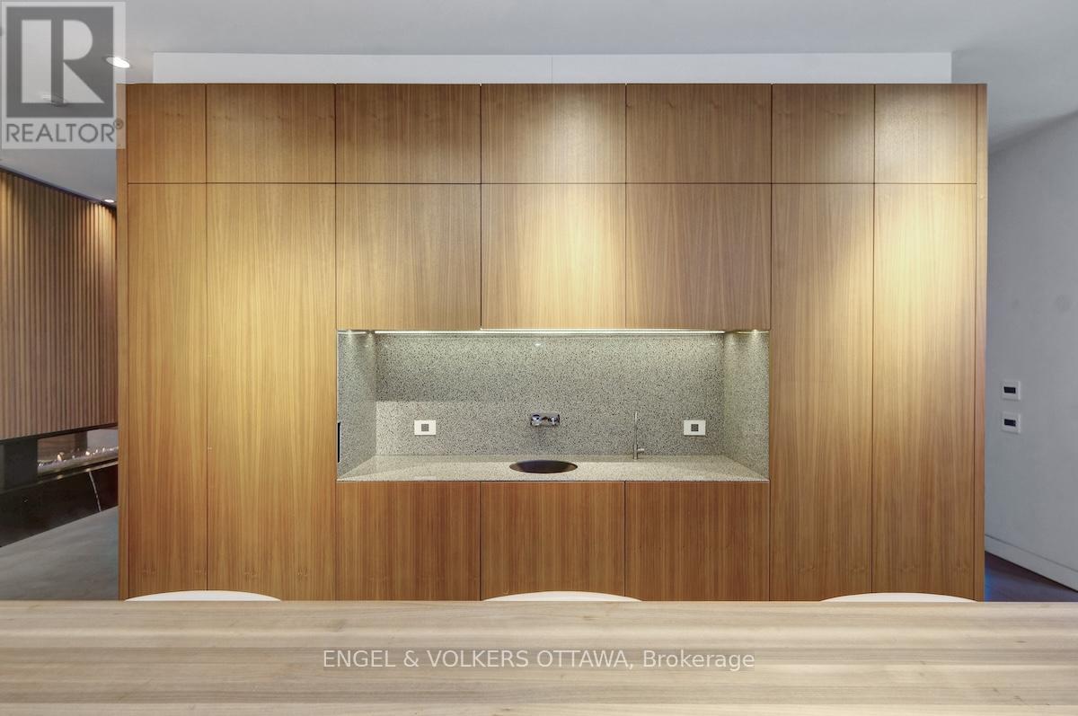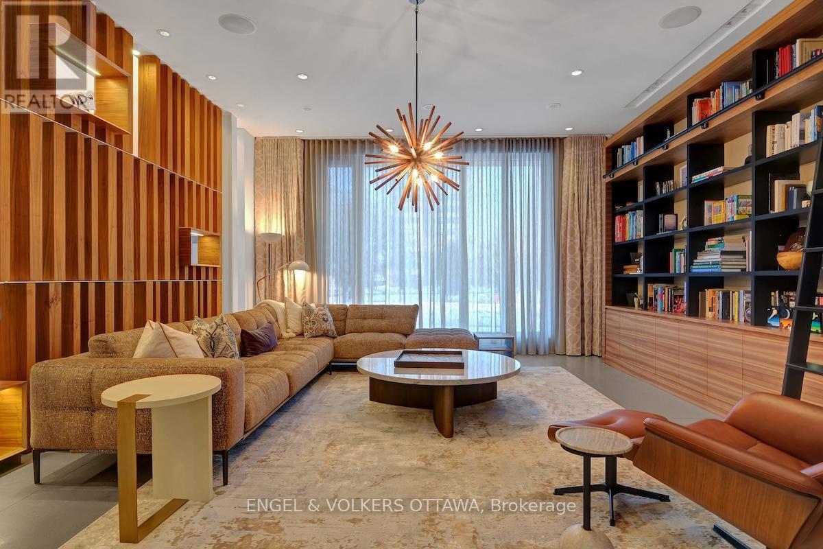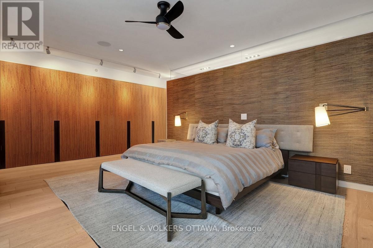 An exceptional contemporary residence in the heart of Westboro, offering over 4,400 square feet of architectural intention and elevated comfort across three levels. Custom built and professionally designed, with an exemplary standard of craftsmanship throughout, every element has been carefully considered. Clean lines, generous scale, and carefully selected finishes define the interior, beginning with a light-filled main level framed by 10-foot ceilings, oversized porcelain tile floors and floor to ceiling windows illuminating the marble encased floating staircase. The linear gas fireplace subtly delineates the living and dining areas while also serving as a sculptural centrepiece. Custom millwork forms a bespoke library wall introducing depth and architectural interest to the main living space. The kitchen is a statement in contemporary design and performance, featuring custom European-inspired cabinetry, integrated professional-grade appliances, an expanded island, and a thoughtfully curated coffee and beverage station. Clean sight lines, concealed hardware, and seamless storage solutions reinforce the home's tailored, minimalist aesthetic. The primary suite offers a quiet retreat with custom walnut built-ins and a five-piece ensuite that includes a skylight, curbless glass shower with wet and dry zones, and an extended floating double vanity. Secondary bedrooms are well proportioned, and a home office with private balcony provides flexible space for work or study. The lower level is designed for everyday use and flexibility, offering a versatile recreation area, ideal for fitness enthusiasts, a full bathroom, and a well-organized laundry room with built-in storage and folding surfaces. A custom mudroom with integrated cubbies provides direct access to the oversized heated garage, reinforcing a practical and well-resolved layout. Located just steps from river pathways, cafes, and boutiques in one of Ottawa's most walkable neighbourhoods. (id:64974)