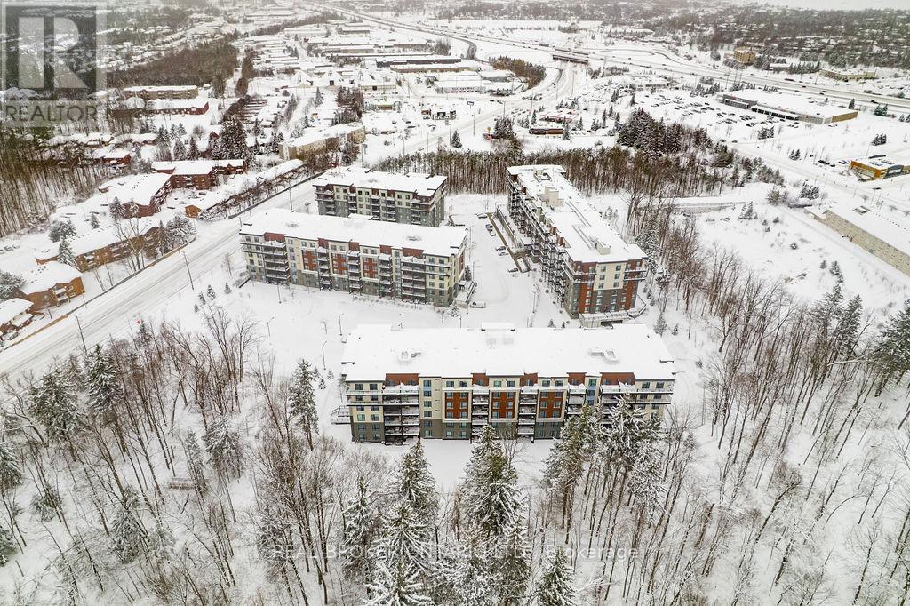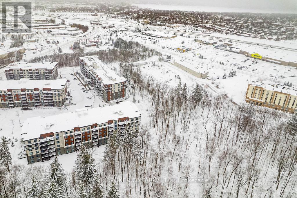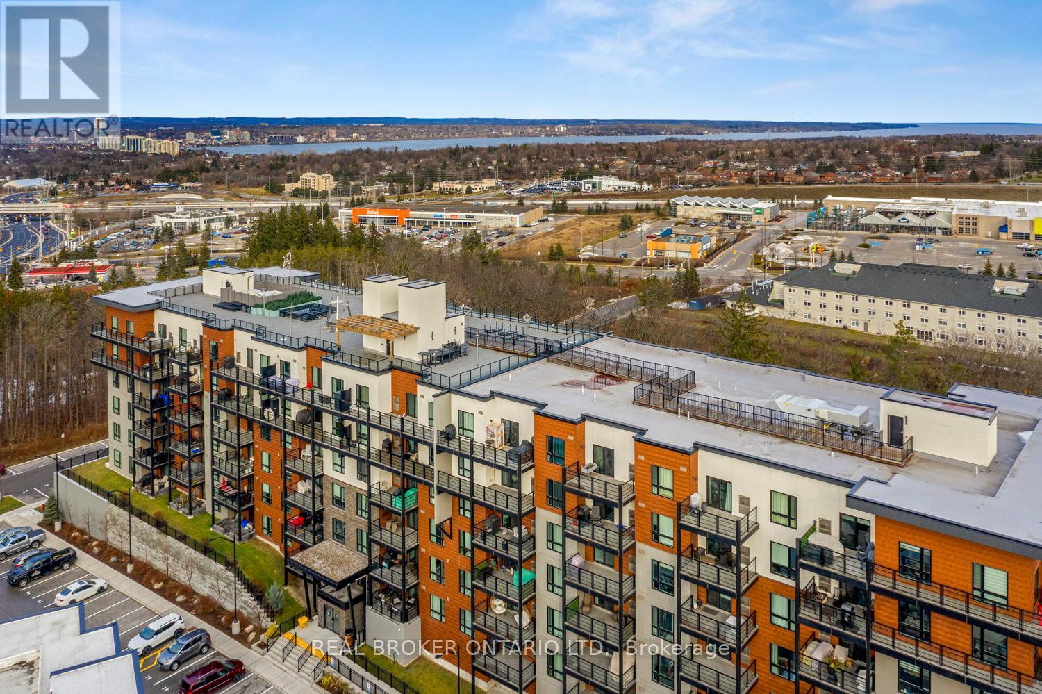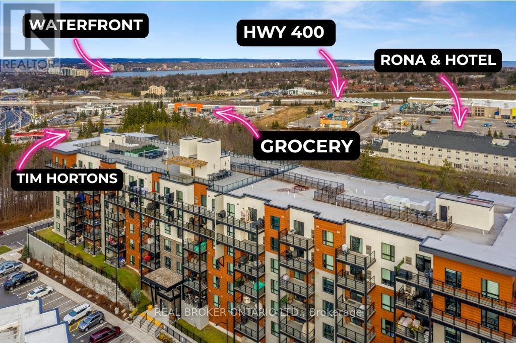 Only unit for sale in The Gallery with 2 parking spots under $519K! Beautifully staged & maintained top-floor suite offering space, privacy, and quiet living, close to the elevator and no one above you. This modern 2 bedroom, 1 bathroom condo spans over 1,000 sq ft and is filled with natural light thanks to oversized windows and a thoughtfully designed open concept layout.The kitchen, dining, and living areas flow seamlessly and provide room for a long harvest table or a separate at-home office area, making it ideal for entertaining or work-from-home life. Oversized bedrooms, large closets, and excellent storage add to the functionality of the space. With only one neighbouring unit and no one above, this is the quiet and peaceful home you have been searching for, paired with the conveniences of condo living.Step outside to your penthouse balcony, perfect for outdoor dining, relaxing under the stars, or enjoying views of trees and the city. Residents also enjoy access to a stunning rooftop terrace with panoramic views across Barrie, a truly special place to unwind.Built in 2018, this condo features in-suite laundry, air conditioning, elevator access, visitor parking, and two owned parking spaces, a rare and valuable bonus. Condo fees include water, building insurance, and snow removal, meaning no more shovelling for you.Pet lovers will appreciate that the building allows two pets per unit with no size restrictions.Conveniently located close to grocery stores, restaurants, hotels, RONA, trails, Barrie's waterfront, downtown, Highway 400, and the Barrie Allandale GO Station, this is an ideal option for commuters, professionals, downsizers, couples, or small families. Modern, spacious, and move-in ready, this top-floor condo delivers comfort, convenience, and lifestyle in one exceptional offering. Take a look today! (id:64974)