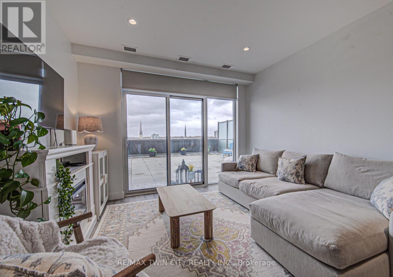 Rare 2-bedroom, 2-bathroom condo at Gaslight with 2 parking spaces, a storage locker, and a large private terrace with beautiful city and Grand River views. The open-concept layout connects the living, dining, and kitchen areas, creating a bright, functional space that works well for both everyday living and entertaining. Residents enjoy access to excellent building amenities including an exercise room, yoga room, two hosting spaces, study room, bike storage, games room, and two outdoor BBQ and patio areas. Located in the heart of the Gaslight District, you're steps from entertainment, restaurants, a brewery, trails, parks, and the downtown core which offer many amenities all within walking distance. A great opportunity to enjoy comfortable urban living in one of Cambridge's most sought-after buildings. (id:64974)