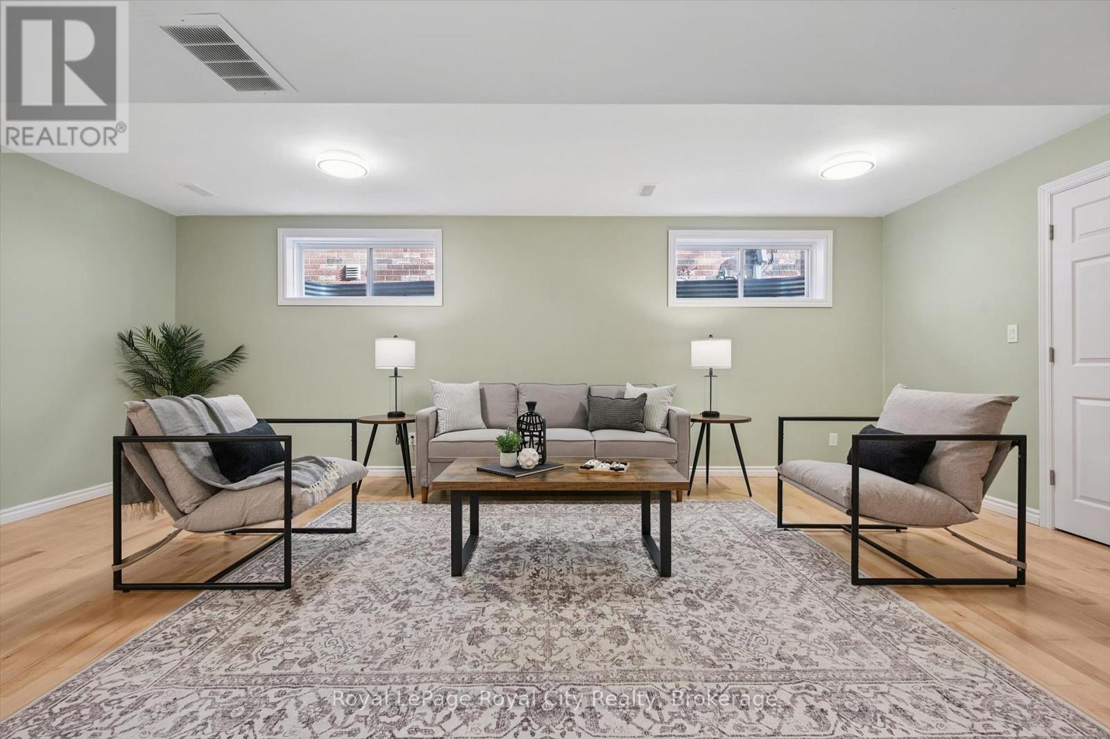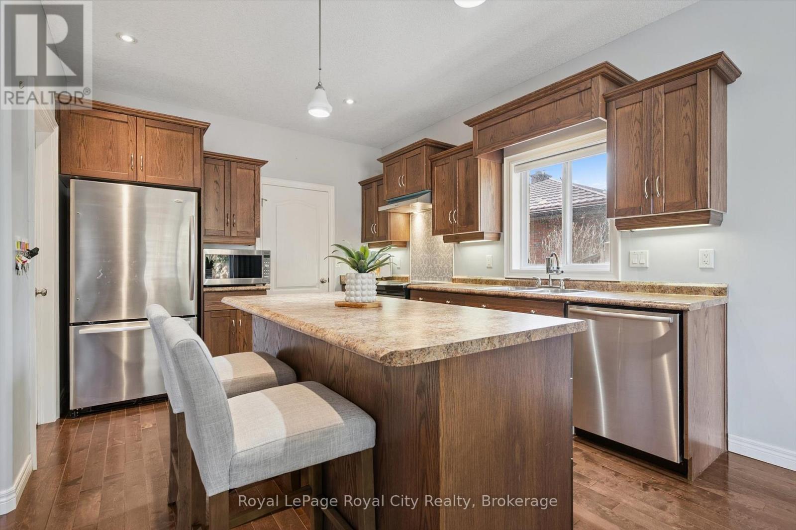 This custom-built executive bungalow offers style, function, and flexibility in one of East Guelph's most convenient locations! Situated on a 50-foot lot and surrounded by extensive, low-maintenance professional landscaping, this home impresses from the moment you arrive with its stamped concrete driveway and inviting curb appeal. Inside, the main level features beautiful hardwood floors and an open-concept entertainer's layout. The spacious living room boasts a vaulted ceiling and cozy gas fireplace, flowing seamlessly into the gourmet eat-in kitchen with stainless steel appliances, a central island with bar seating, and access to the large rear deck and patio. The main level offers three generous bedrooms, ideal for families or downsizers who still want room for guests. Downstairs, a bright and thoughtfully designed 2-bedroom, 2-bath legal basement apartment provides incredible versatility. With its own separate entrance, spacious living areas, full kitchen, in-suite laundry, and carpet-free finishes, it's perfect for multigenerational living or generating valuable rental income in retirement. New furnace, AC, and heat exchanger installed April 2024 with transferrable warranty. Set in a prime East Guelph neighbourhood close to parks, trails, amenities, schools, and quick Highway 401 access, this property checks all the boxes for those seeking comfort, quality, and lifestyle in a beautiful, easy to maintain package! (id:64974)