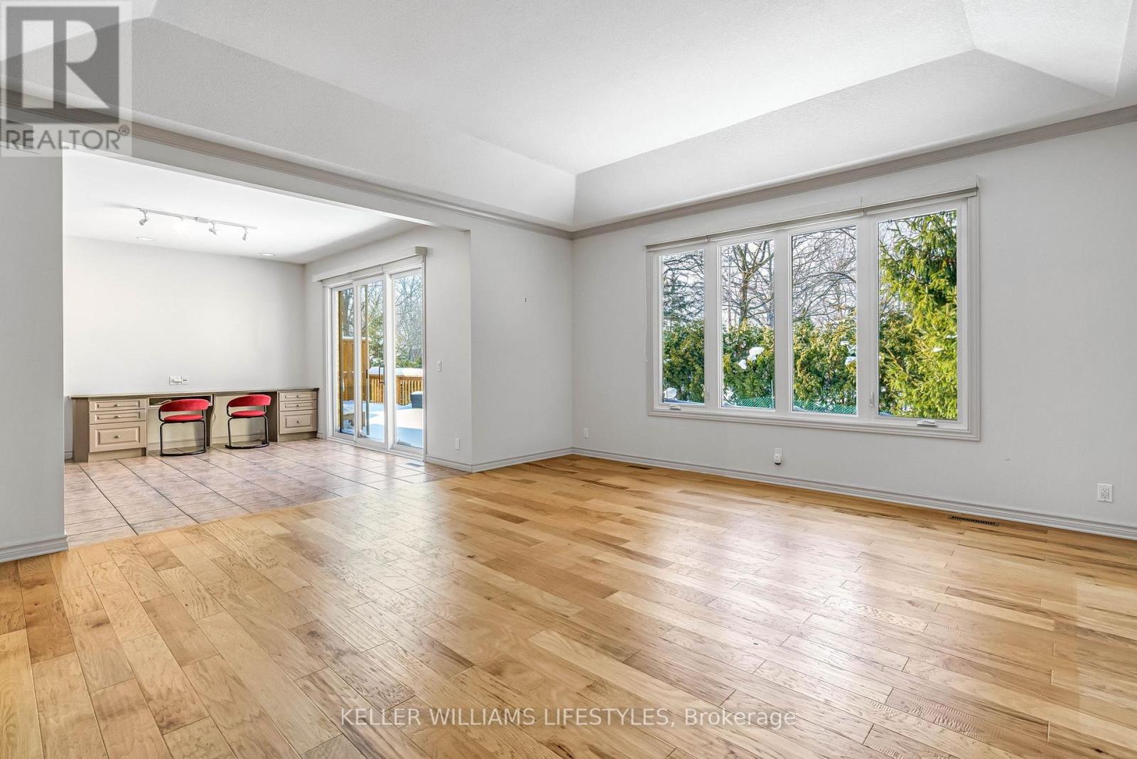 Welcome to this spacious detached bungalow condominium offering nearly 3,000 sq ft of finished living space (including the lower level) in a well-managed North London community. Thoughtfully designed with 2+1 bedrooms and 3 bathrooms, this home features a main-floor primary suite complete with a walk-in closet and a luxurious 5-piece ensuite, along with a second main-floor bedroom and full bathroom-ideal for single-level living. The open-concept living and dining areas are anchored by a two-way natural gas fireplace, creating a warm connection between the spaces, while the eat-in kitchen and breakfast room with patio-door access lead to a private deck, perfect for enjoying morning coffee, casual meals, or time outdoors. The lower level expands the living space with an additional bedroom, a den suitable for overnight guests, a large recreation room, and generous unfinished areas perfect for storage or future customization. Additional highlights include main-floor laundry with sink, an attached double garage with private driveway parking for four vehicles, a west-facing deck, central air, and forced-air gas furnace/heat pump heating. Condo fees include common elements and access to the community's saltwater pool, which is open from June to September. The property is vacant with flexible possession available. Conveniently located near Riverside Drive and Hyde Park Road, with easy access to amenities like shopping, restaurants, green space, and major routes. (id:64974)
