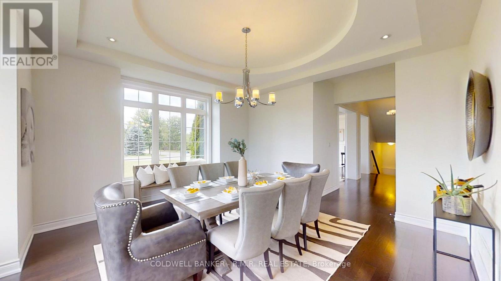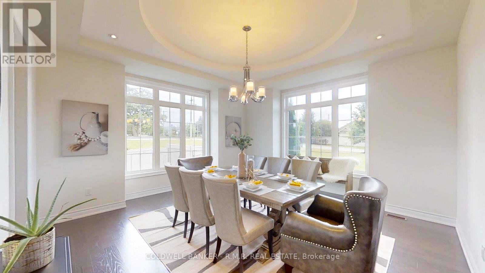 A stunning Sheffield model home nestled within the prestigious Estates of Wyndance a gated community offering luxury, privacy, and an unmatched lifestyle. Situated on a 1.17-acre corner lot, this 4-bedroom, 4-bathroom executive residence boasts breathtaking panoramic views & over 3,489 sq. ft. of above-grade living space, designed for both elegance & comfort. Step inside to find hardwood floors throughout, beautifully accented by wainscoting, tray ceilings & intricate moldings. The spacious family room features a double-sided gas fireplace, creating a cozy ambiance that extends into the formal living room. The gourmet chef's kitchen is a culinary dream, complete with granite countertops, a center island, and top-of-the-line stainless steel appliances, including a Sub-Zero fridge & Wolf range. Adjacent to the kitchen, the breakfast area leads to an expansive covered deck, perfect for outdoor dining while soaking in the picturesque skyline views. The 2nd floor is equally impressive, featuring a luxurious primary suite with his-and-hers walk-in closets & 5-pc spa-like ensuite. 3 additional bedrooms, all with ensuite or semi-ensuite access, provide ample space for family & guests. The unfinished walk-out basement presents a world of possibilities! Whether you envision an in-law suite, a home gym, or a recreational haven, the space is already equipped with a separate entrance, large windows, a rough-in for a 4-piece bathroom, and plenty of room for customization. Car enthusiasts will love the three-car tandem garage, complemented by a spacious 8-car driveway, ensuring ample parking for family & guests. Exclusive amenities, includes 2 gated entrances, scenic walking trails & landscaped ponds, basketball & tennis courts, a charming community gazebo and a lifetime platinum-level golf membership to the renowned Clublink Golf Course. This remarkable property is located just minutes from schools, parks, & shopping, while still offering the tranquility of country estate living (id:64974)