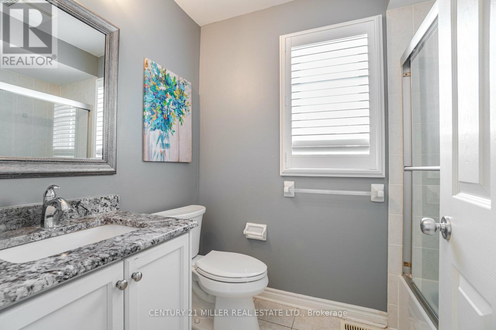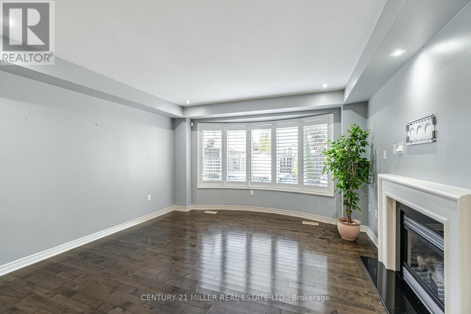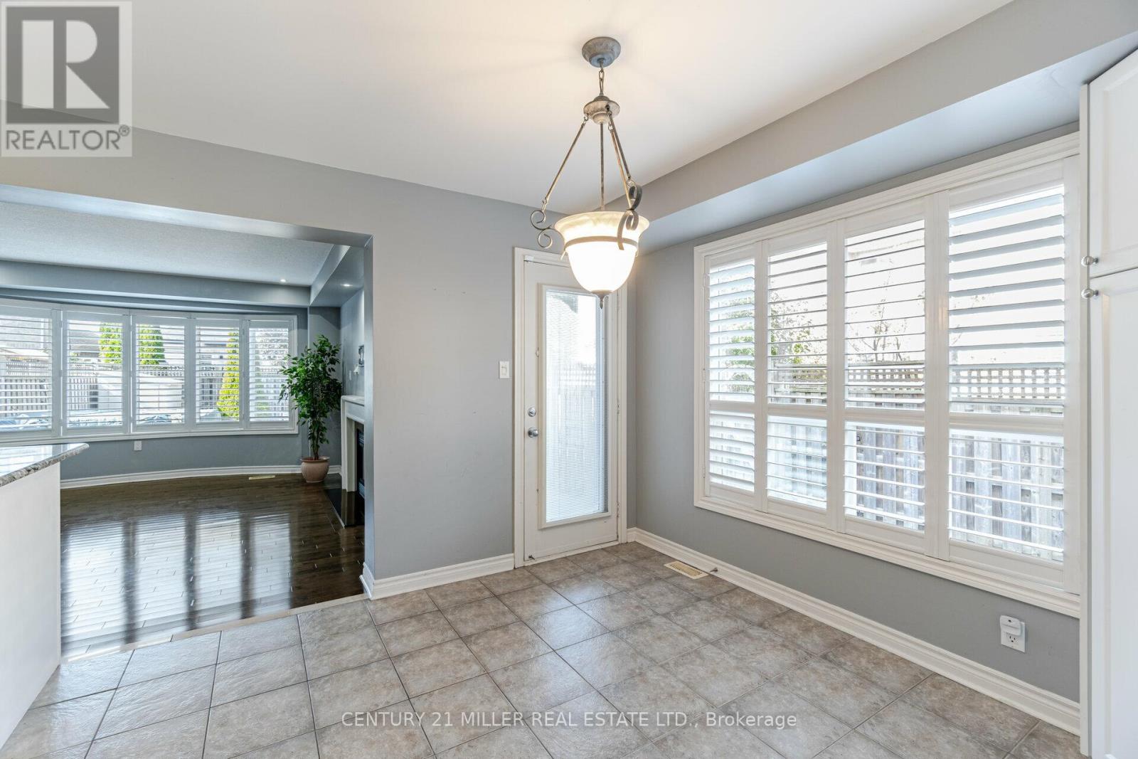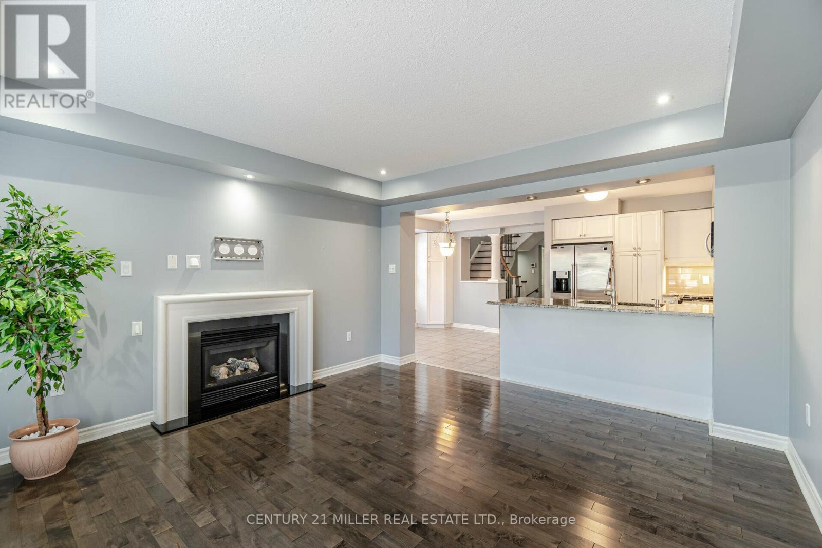 Beautiful End Unit 3 Bed, 4 Bath Freehold Townhome in Prestigious Millcroft. Hardwood flooring and California shutters throughout. Separate dining room. Spacious eat-in kitchen features granite countertops, ample cabinetry, pot lights, under-mount lighting, ceramic tile flooring, and garden door walk-out to backyard. Bright open-concept living area with maple hardwood floors, gas fireplace, and bow window overlooking the backyard. Upper level offers hardwood flooring and iron picket staircase. Large primary bedroom with walk-in closet, second closet, and 4-pc ensuite with granite counter, separate shower, and soaker tub. Generous second and third bedrooms with neutral carpet and double closets. Second 4-pc bath with granite counter and tub/shower combo. Open loft/office space with skylight. Finished lower-level media room with neutral ceramic tile flooring.Close To Shopping, Parks, Highways And Fantastic Schools (id:64974)