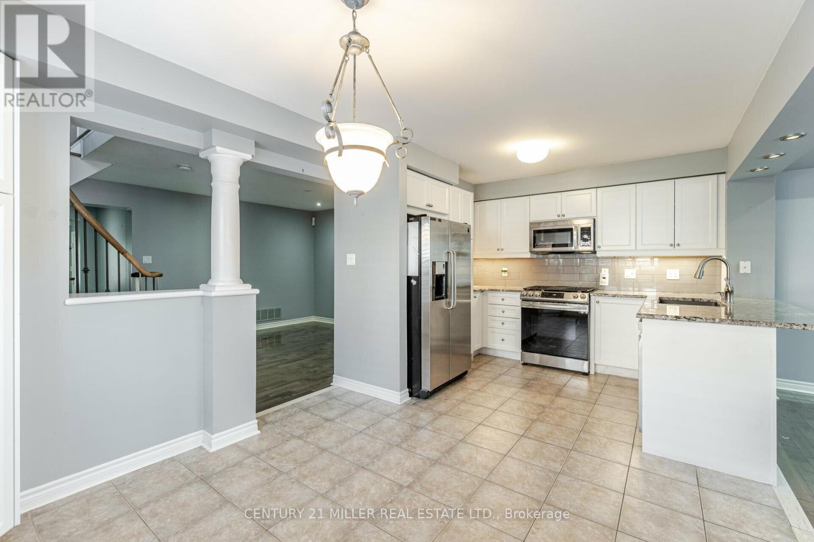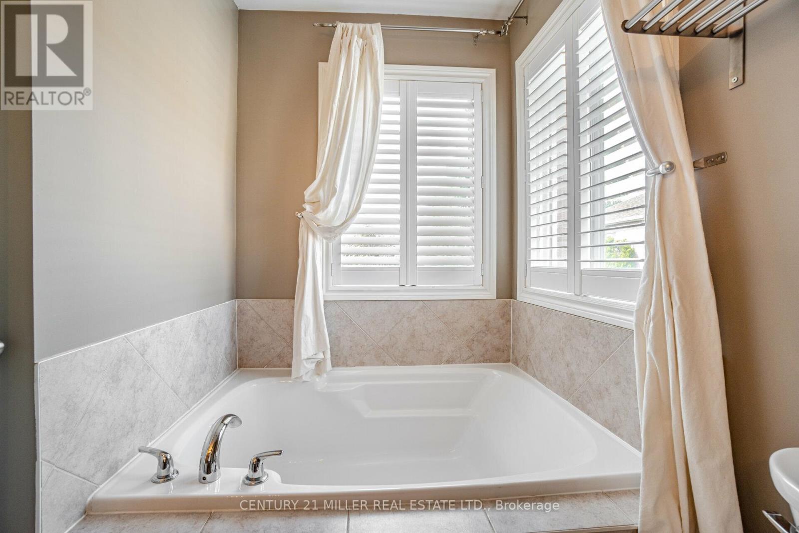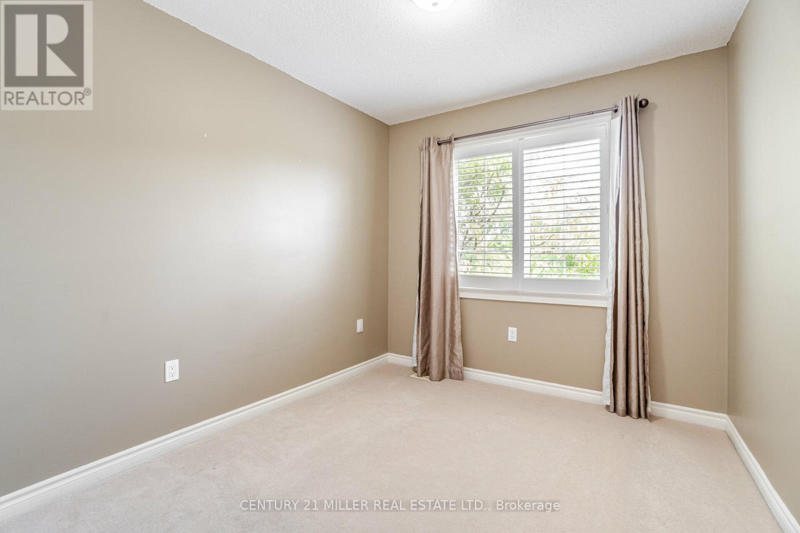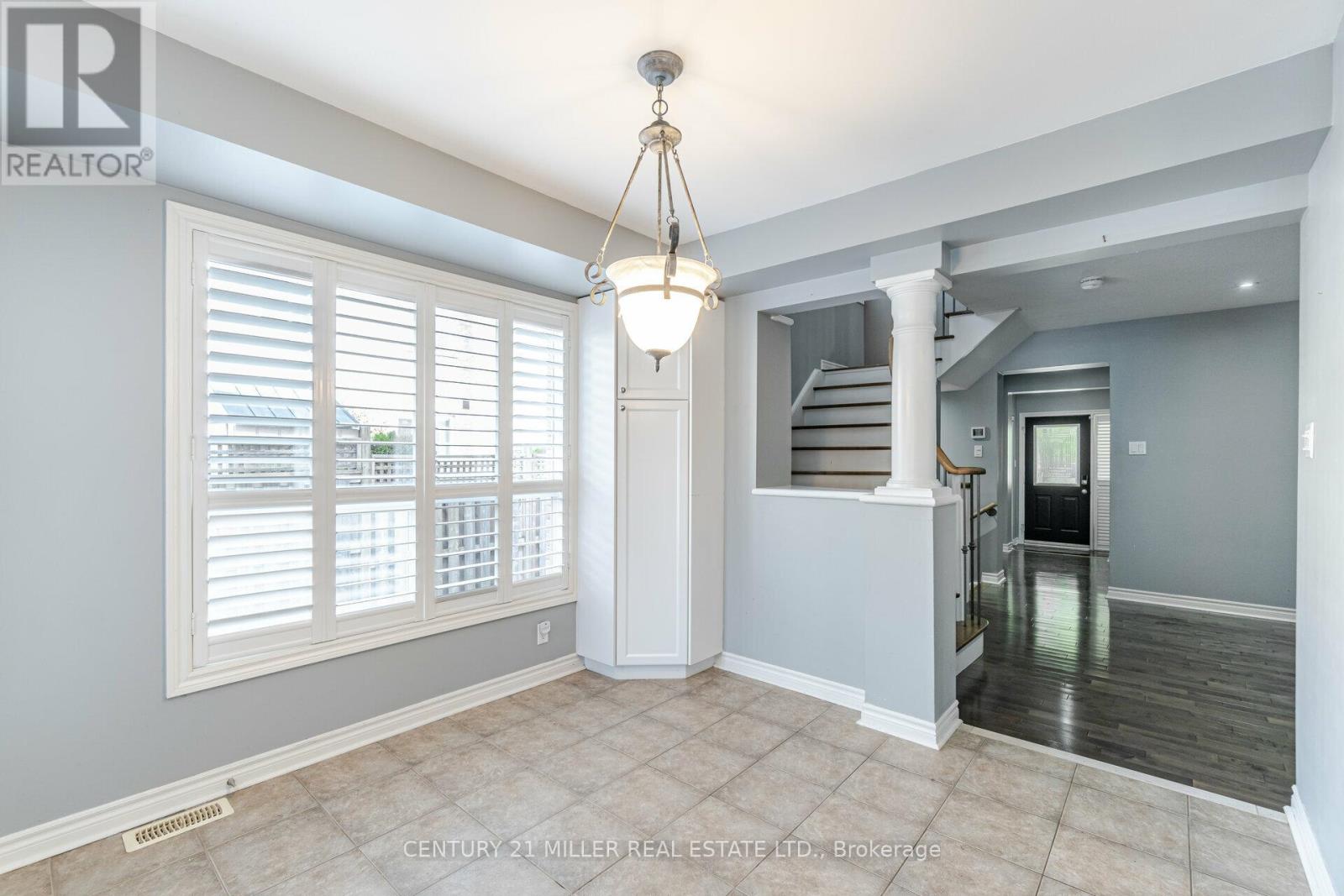 Beautiful End Unit 3 Bed, 4 Bath Freehold Townhome in Prestigious Millcroft. Hardwood flooring and California shutters throughout. Separate dining room. Spacious eat-in kitchen features granite countertops, ample cabinetry, pot lights, under-mount lighting, ceramic tile flooring, and garden door walk-out to backyard. Bright open-concept living area with maple hardwood floors, gas fireplace, and bow window overlooking the backyard. Upper level offers hardwood flooring and iron picket staircase. Large primary bedroom with walk-in closet, second closet, and 4-pc ensuite with granite counter, separate shower, and soaker tub. Generous second and third bedrooms with neutral carpet and double closets. Second 4-pc bath with granite counter and tub/shower combo. Open loft/office space with skylight. Finished lower-level media room with neutral ceramic tile flooring.Close To Shopping, Parks, Highways And Fantastic Schools (id:64974)