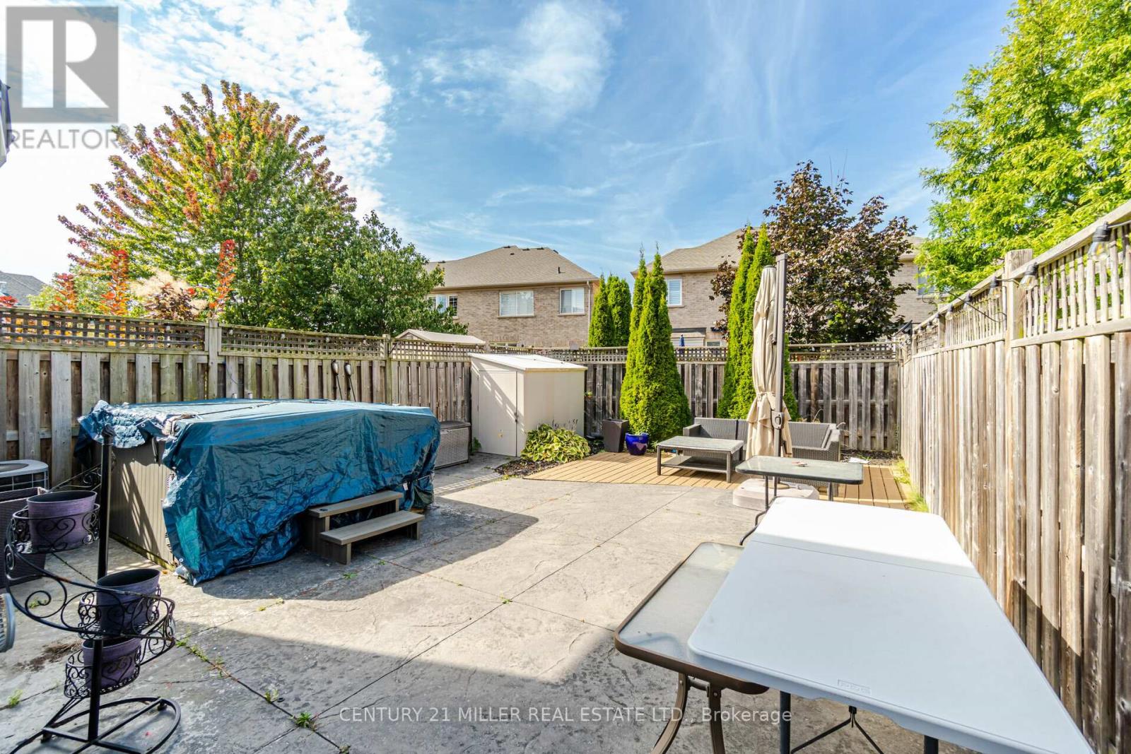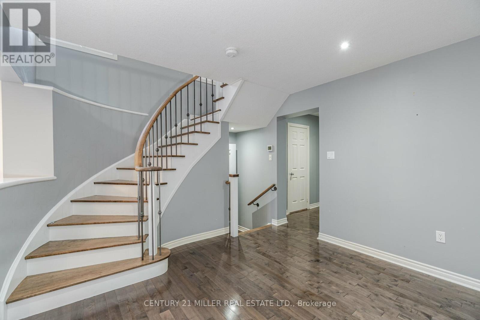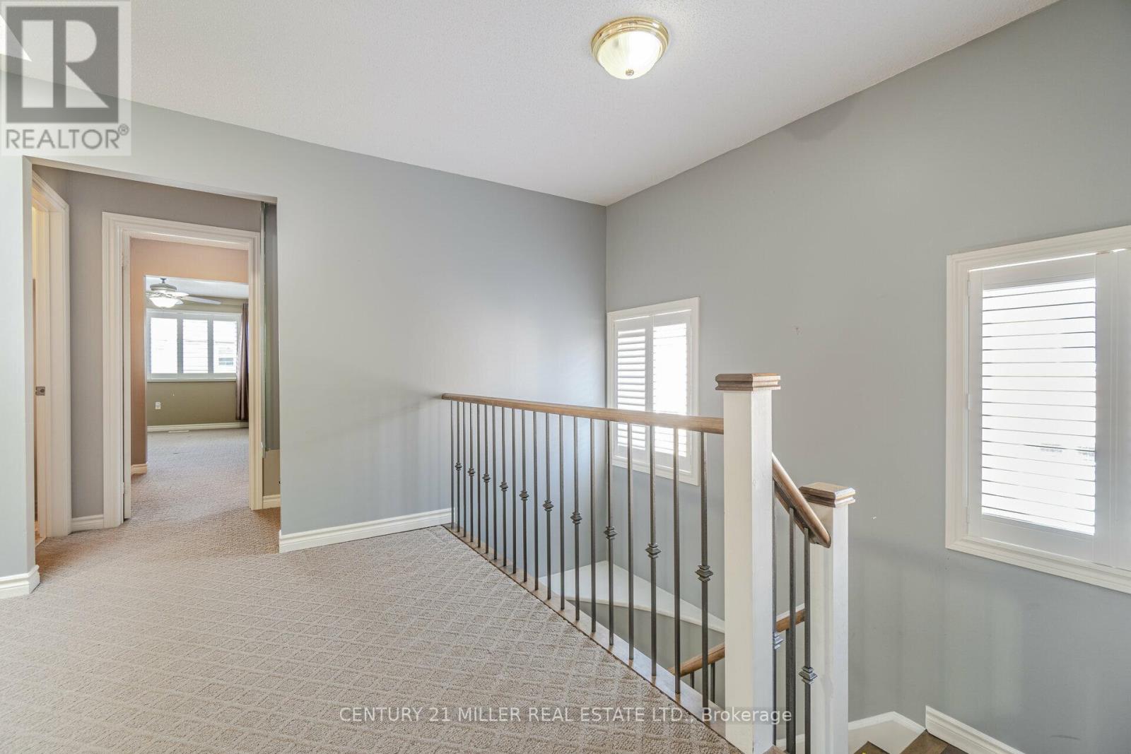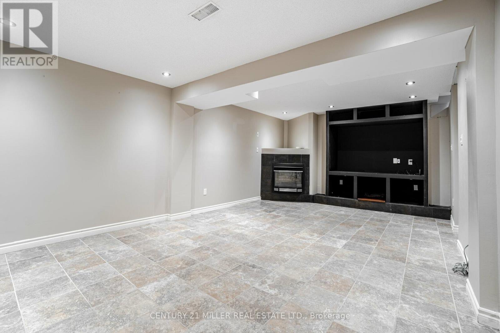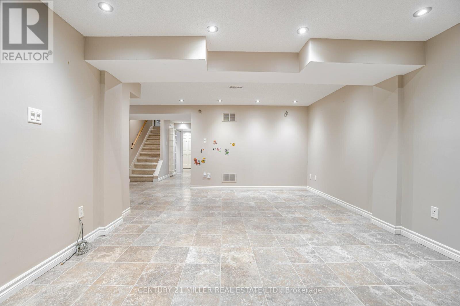 Beautiful End Unit 3 Bed, 4 Bath Freehold Townhome in Prestigious Millcroft. Hardwood flooring and California shutters throughout. Separate dining room. Spacious eat-in kitchen features granite countertops, ample cabinetry, pot lights, under-mount lighting, ceramic tile flooring, and garden door walk-out to backyard. Bright open-concept living area with maple hardwood floors, gas fireplace, and bow window overlooking the backyard. Upper level offers hardwood flooring and iron picket staircase. Large primary bedroom with walk-in closet, second closet, and 4-pc ensuite with granite counter, separate shower, and soaker tub. Generous second and third bedrooms with neutral carpet and double closets. Second 4-pc bath with granite counter and tub/shower combo. Open loft/office space with skylight. Finished lower-level media room with neutral ceramic tile flooring.Close To Shopping, Parks, Highways And Fantastic Schools (id:64974)