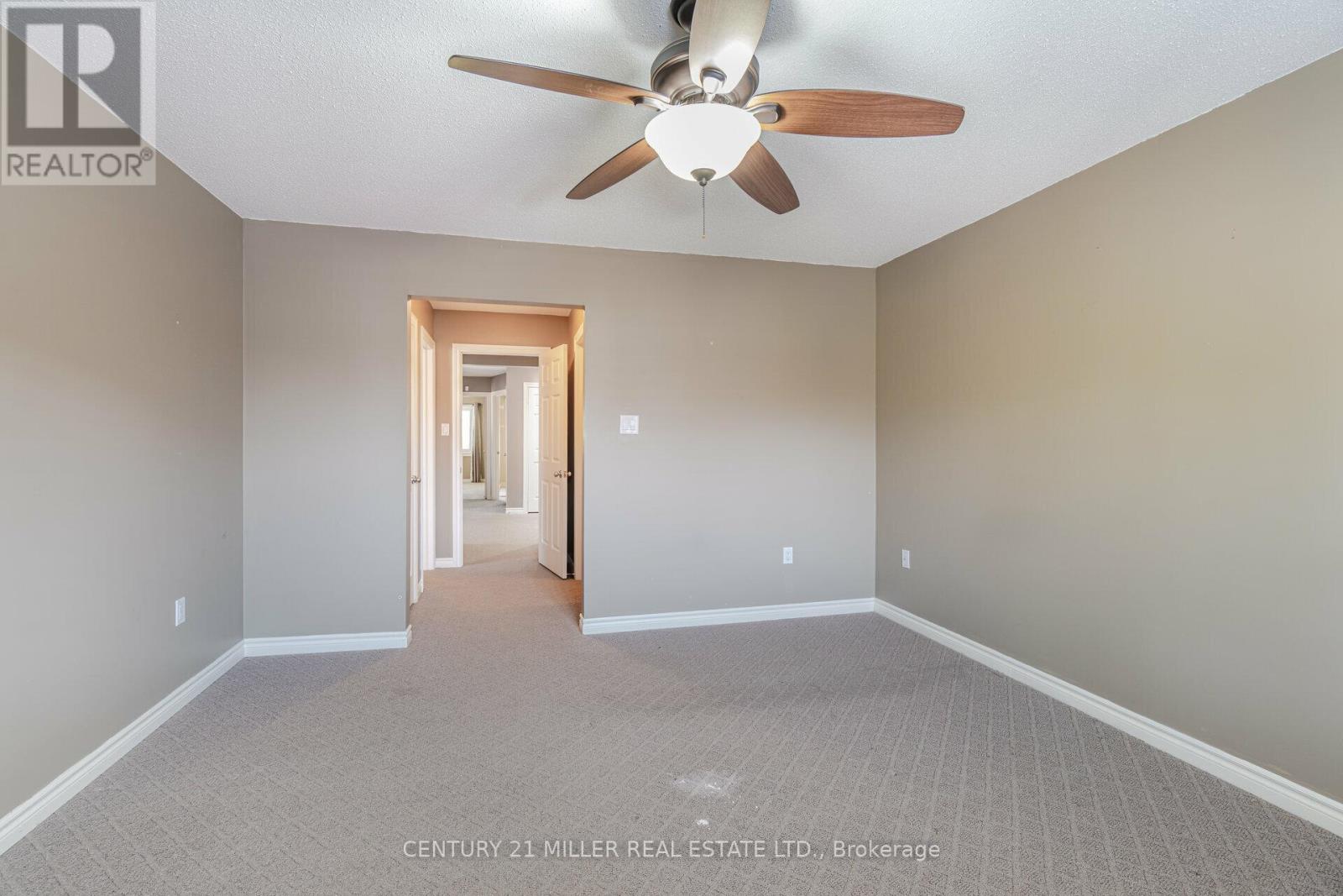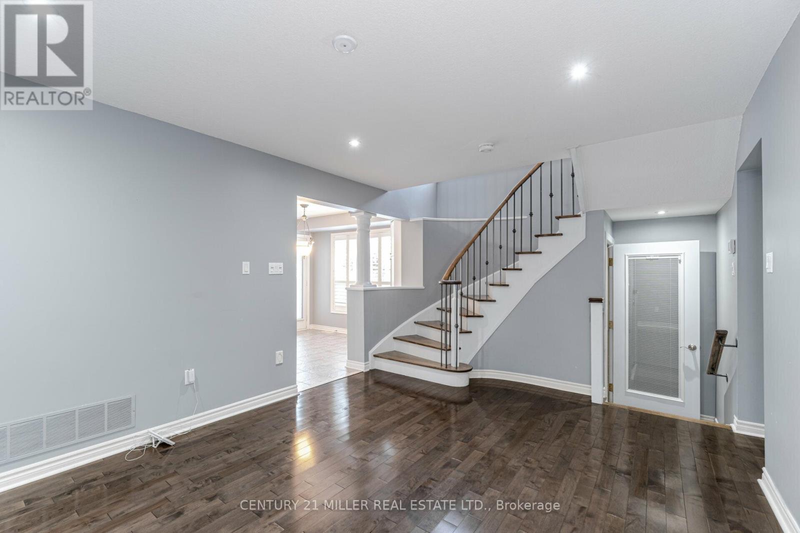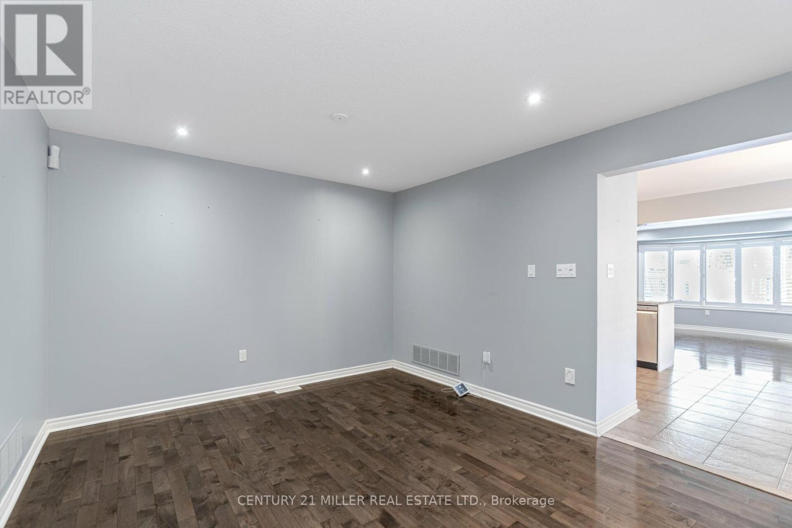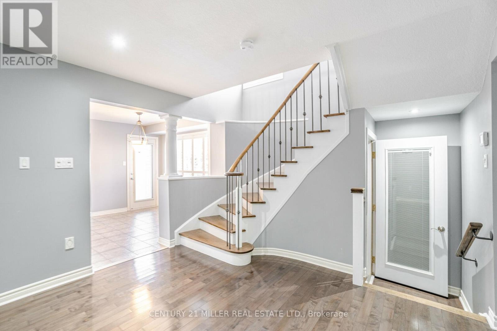 Beautiful End Unit 3 Bed, 4 Bath Freehold Townhome in Prestigious Millcroft. Hardwood flooring and California shutters throughout. Separate dining room. Spacious eat-in kitchen features granite countertops, ample cabinetry, pot lights, under-mount lighting, ceramic tile flooring, and garden door walk-out to backyard. Bright open-concept living area with maple hardwood floors, gas fireplace, and bow window overlooking the backyard. Upper level offers hardwood flooring and iron picket staircase. Large primary bedroom with walk-in closet, second closet, and 4-pc ensuite with granite counter, separate shower, and soaker tub. Generous second and third bedrooms with neutral carpet and double closets. Second 4-pc bath with granite counter and tub/shower combo. Open loft/office space with skylight. Finished lower-level media room with neutral ceramic tile flooring.Close To Shopping, Parks, Highways And Fantastic Schools (id:64974)