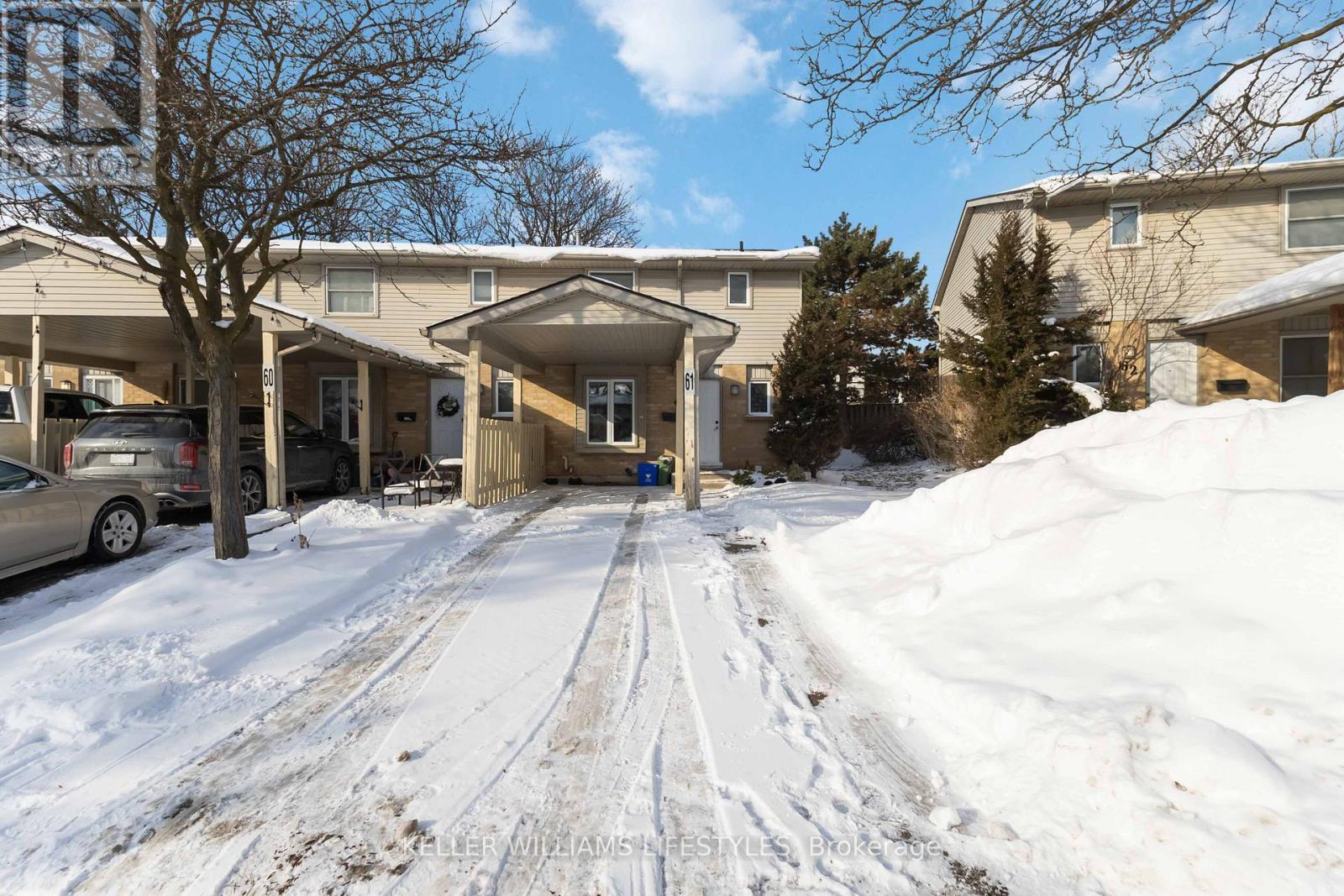Welcome to Unit 61 at 55 Ashley Crescent in London, Ontario, a recently updated 3-bedroom, 2.5-bath townhouse with a covered carport located in the desirable White Oaks neighbourhood. This well-maintained home offers fresh paint and new flooring throughout, renovated bathrooms, updated lighting, and an upgraded kitchen, creating a comfortable and modern living environment. The main floor features a bright living and dining area alongside a functional kitchen complete with fridge, stove and dishwasher, while in-suite laundry with washer and dryer adds everyday convenience. Year-round comfort is provided by forced-air gas heating and central air conditioning, and the fully fenced backyard offers private outdoor space for relaxing or entertaining. Parking is included in the rent with one space in the carport plus two additional spots in the private driveway. The lower level adds valuable flexibility with a large recreation room and additional bathroom, ideal for a home office, fitness area, or extra living space. Located close to White Oaks Mall, multiple transit routes, schools, parks, and community facilities, with quick access to Highway 401 for commuters, this home combines function and location. Offered at $2,495 per month plus utilities with a minimum 12-month lease, flexible possession available and earlier occupancy preferred; tenant responsible for hydro, gas, water heater rental and water. Book your private showing today and review full lease terms prior to applying. (id:64974)