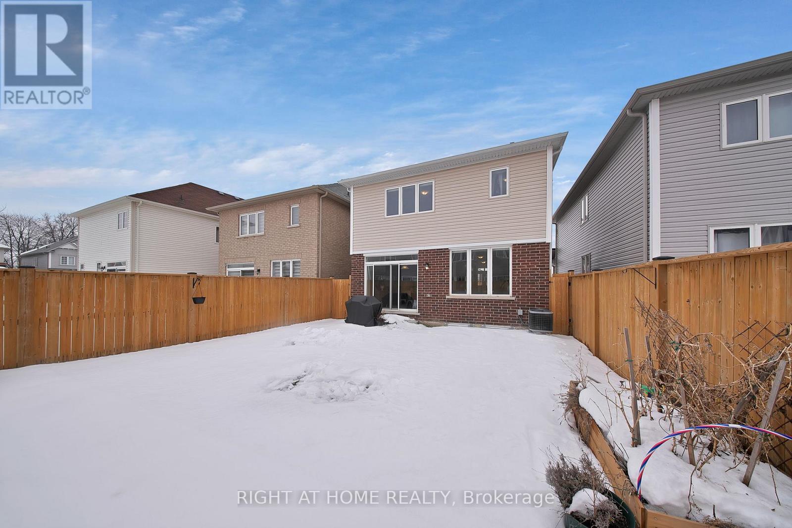 Welcome to this beautifully maintained detached two storey home built in 2020, located in a growing and family friendly Thorold community. Just five years young and meticulously cared for by its original owner, this home offers the comfort that comes with newer construction and evident pride of ownership.The bright open concept main floor is designed for everyday living and connection, featuring soaring 10 ft ceilings and large windows that fill the space with natural light. Rich real hardwood floors add warmth, durability, and long term quality. The inviting living area is centred around a cozy fireplace, creating a natural place to gather.The upgraded kitchen offers abundant cabinetry, generous counter space, stainless steel appliances, and a central island ideal for daily routines and entertaining. Thoughtful additions such as pots and pans drawers and a built in garbage bin drawer keep everything neatly organized and out of sight. Interior access from the built in garage adds everyday convenience.A hardwood staircase leads upstairs to a spacious primary bedroom with walk in closet and private ensuite with glass shower. Two additional well sized bedrooms and a full bathroom provide flexibility for family or home office use. With three bathrooms in total, the layout supports comfortable living.Set on a 30 x 92 ft lot, the fully fenced backyard features a premium fence already in place for added privacy. The large basement offers excellent potential for a recreation room, media space, in law suite, or income opportunity.With parking for three vehicles and move in ready condition throughout, this home delivers quality finishes and long term value close to parks, schools, Brock University, Niagara Falls, and major highway access. (id:64974)