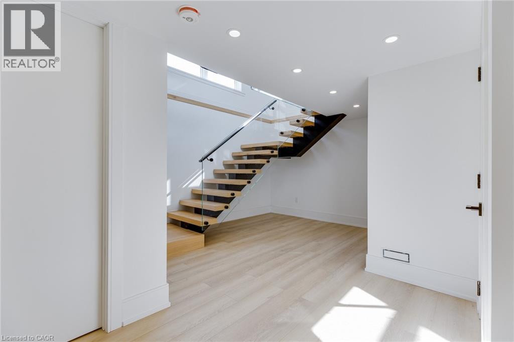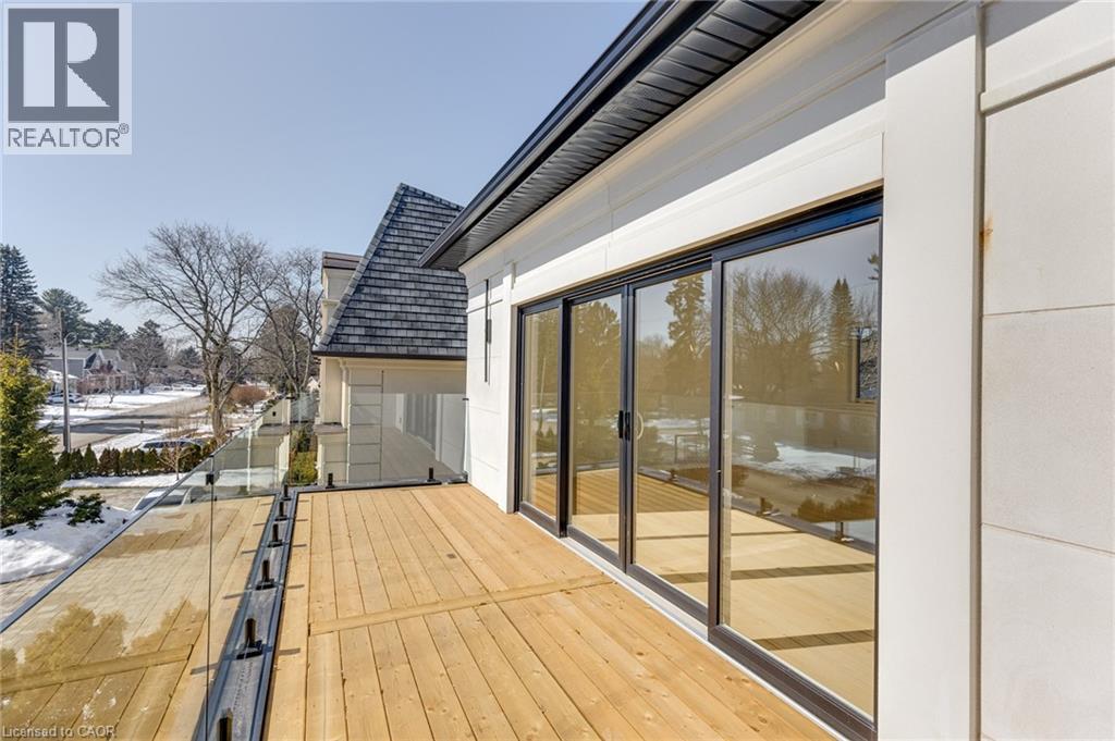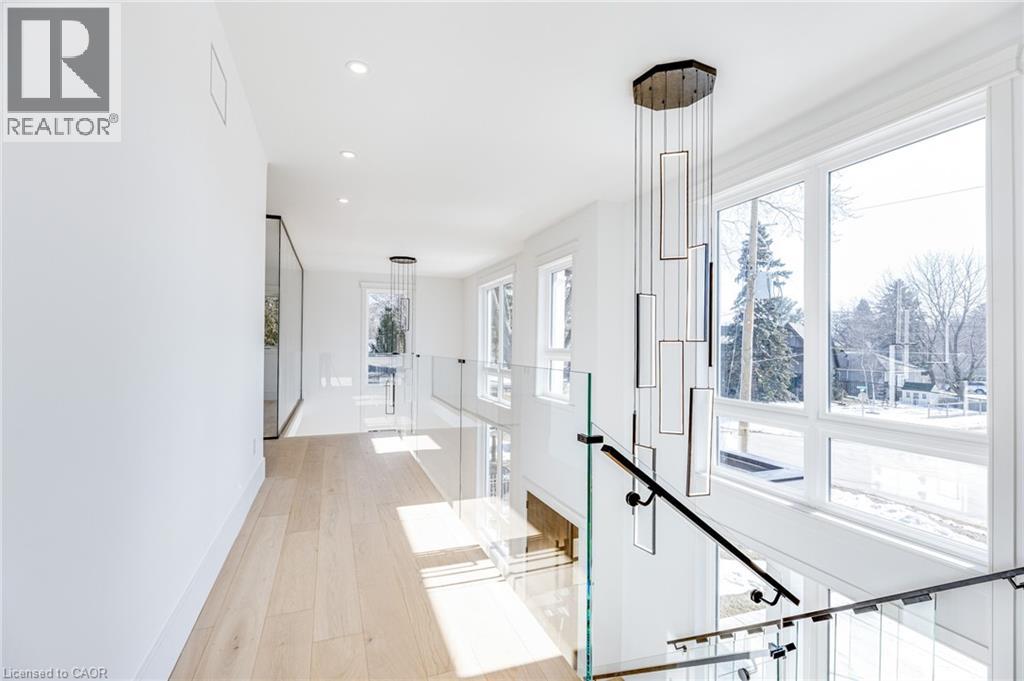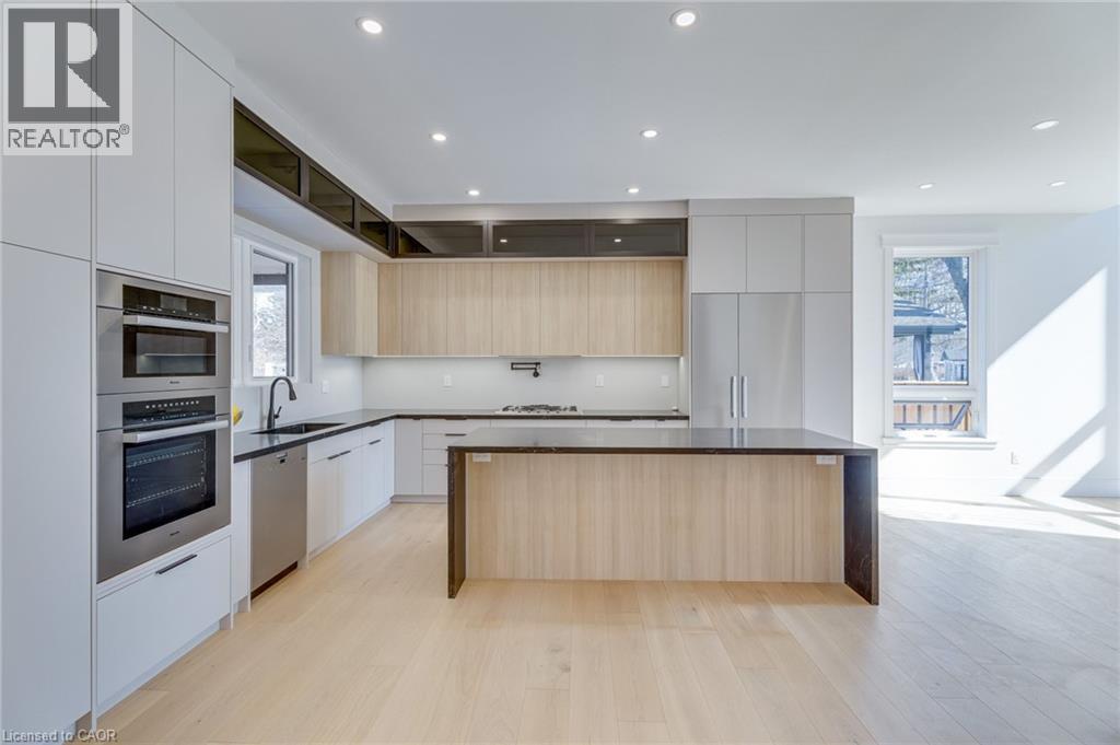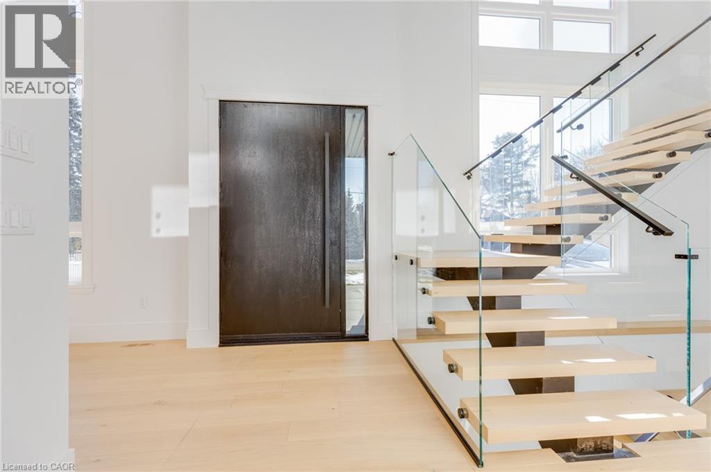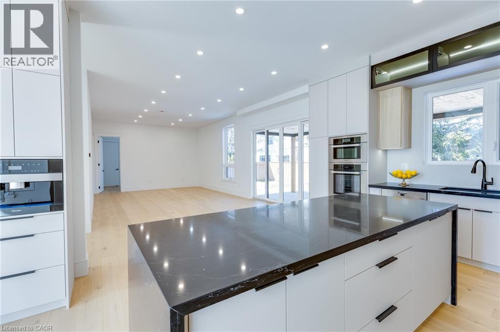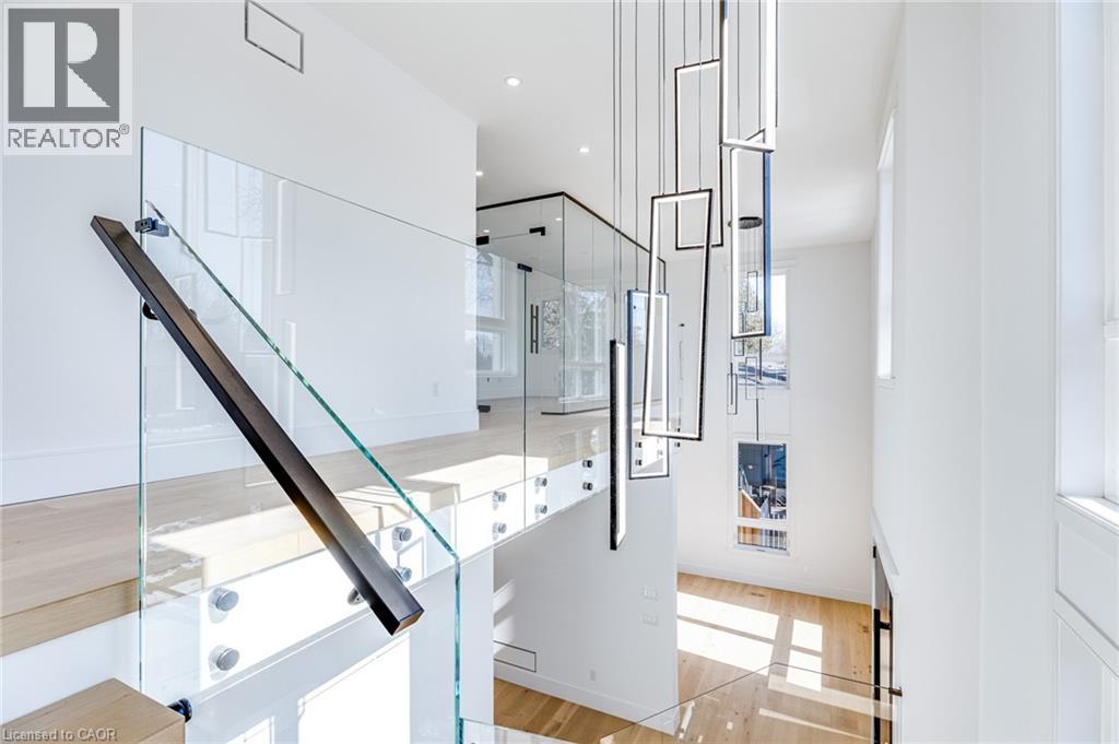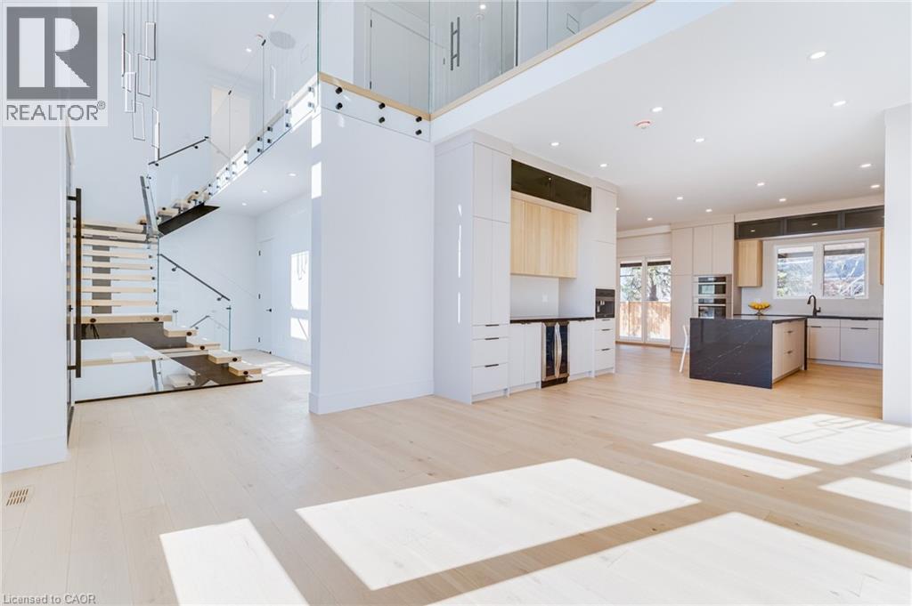 Welcome to this brand new, never-lived-in detached home in the highly desirable community of Ancaster, where thoughtful design, advanced technology, and luxury finishes come together to create an exceptional luxury living experience. Featuring 4+1 spacious bedrooms and 5 beautifully appointed bathrooms, this home offers the perfect blend of style, comfort, and functionality for modern family living and entertaining. The heart of the home is a show-stopping chef’s kitchen equipped with premium Miele appliances, a gas cooktop with pot filler, quartz countertops and backsplash, sleek cabinetry, under and upper cabinet lighting, and a built-in garburator. The expansive layout flows seamlessly into the bright living space highlighted by soaring 20-ft ceilings. The primary suite is a true retreat featuring a private balcony with wood flooring and glass railing, a luxurious spa-inspired ensuite with heated floors, and a custom closet organizer. Four bathrooms include heated floors, LED mirrors, and convenient electrical outlets beside each toilet. Designed with both elegance and practicality in mind, the home features 10-ft ceilings on the main floor, 9-ft ceilings on the second floor, 8-ft interior and entry doors, white oak 7.5” engineered hardwood flooring throughout, and illuminated interior staircases to the second floor and basement. The home is equipped with smart home technology, including Google Home integration with two iPads, controlling security cameras (6), lighting, switches, and garage door, along with a Nest thermostat for modern convenience. Exterior highlights include a front granite porch with glass railing, light strips along the driveway, walkway, and front steps, and exterior pot lights. The covered backyard deck features a wood ceiling with pot lights and gas line for a BBQ, overlooking a fully fenced yard with space for a future pool. Conveniently located close to parks, schools, shopping, and Highway 403. Taxes not assessed yet. (id:64974)