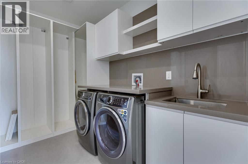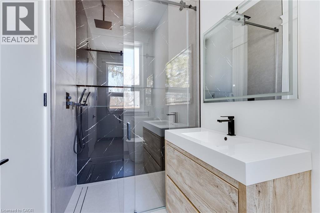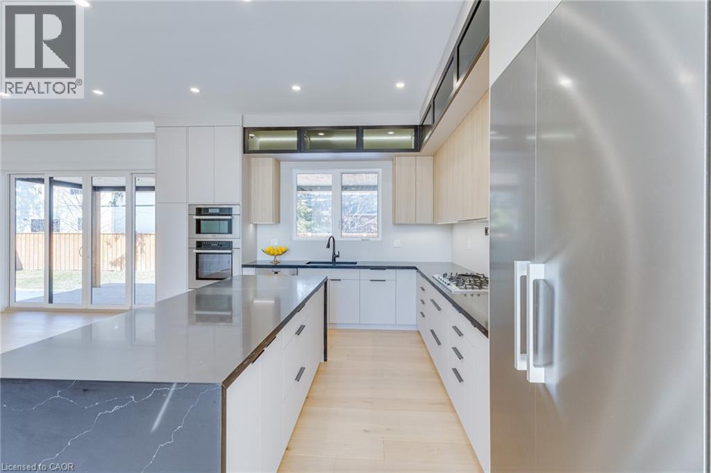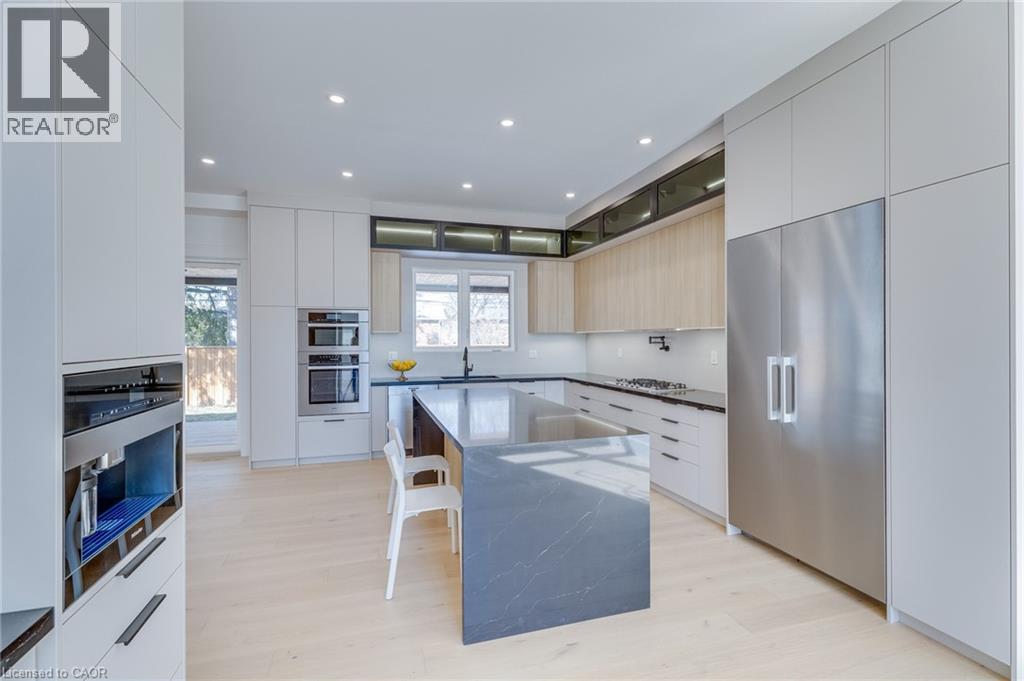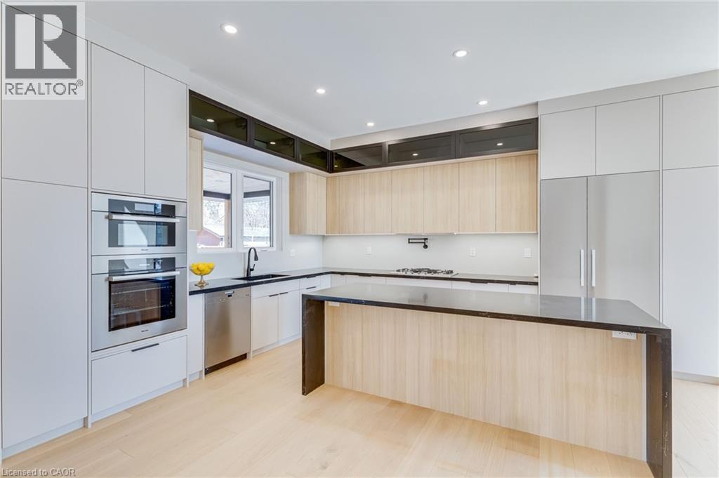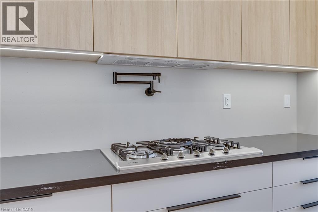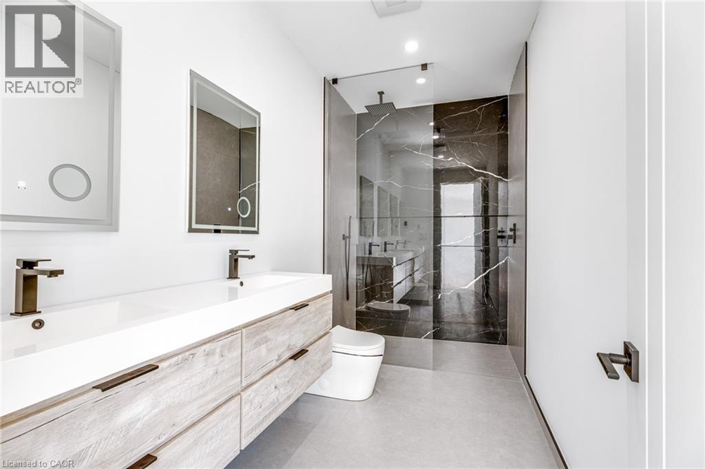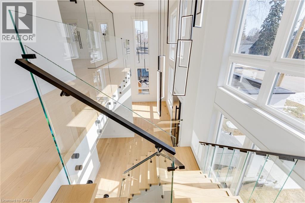 Welcome to this brand new, never-lived-in detached home in the highly desirable community of Ancaster, where thoughtful design, advanced technology, and luxury finishes come together to create an exceptional luxury living experience. Featuring 4+1 spacious bedrooms and 5 beautifully appointed bathrooms, this home offers the perfect blend of style, comfort, and functionality for modern family living and entertaining. The heart of the home is a show-stopping chef’s kitchen equipped with premium Miele appliances, a gas cooktop with pot filler, quartz countertops and backsplash, sleek cabinetry, under and upper cabinet lighting, and a built-in garburator. The expansive layout flows seamlessly into the bright living space highlighted by soaring 20-ft ceilings. The primary suite is a true retreat featuring a private balcony with wood flooring and glass railing, a luxurious spa-inspired ensuite with heated floors, and a custom closet organizer. Four bathrooms include heated floors, LED mirrors, and convenient electrical outlets beside each toilet. Designed with both elegance and practicality in mind, the home features 10-ft ceilings on the main floor, 9-ft ceilings on the second floor, 8-ft interior and entry doors, white oak 7.5” engineered hardwood flooring throughout, and illuminated interior staircases to the second floor and basement. The home is equipped with smart home technology, including Google Home integration with two iPads, controlling security cameras (6), lighting, switches, and garage door, along with a Nest thermostat for modern convenience. Exterior highlights include a front granite porch with glass railing, light strips along the driveway, walkway, and front steps, and exterior pot lights. The covered backyard deck features a wood ceiling with pot lights and gas line for a BBQ, overlooking a fully fenced yard with space for a future pool. Conveniently located close to parks, schools, shopping, and Highway 403. Taxes not assessed yet. (id:64974)
