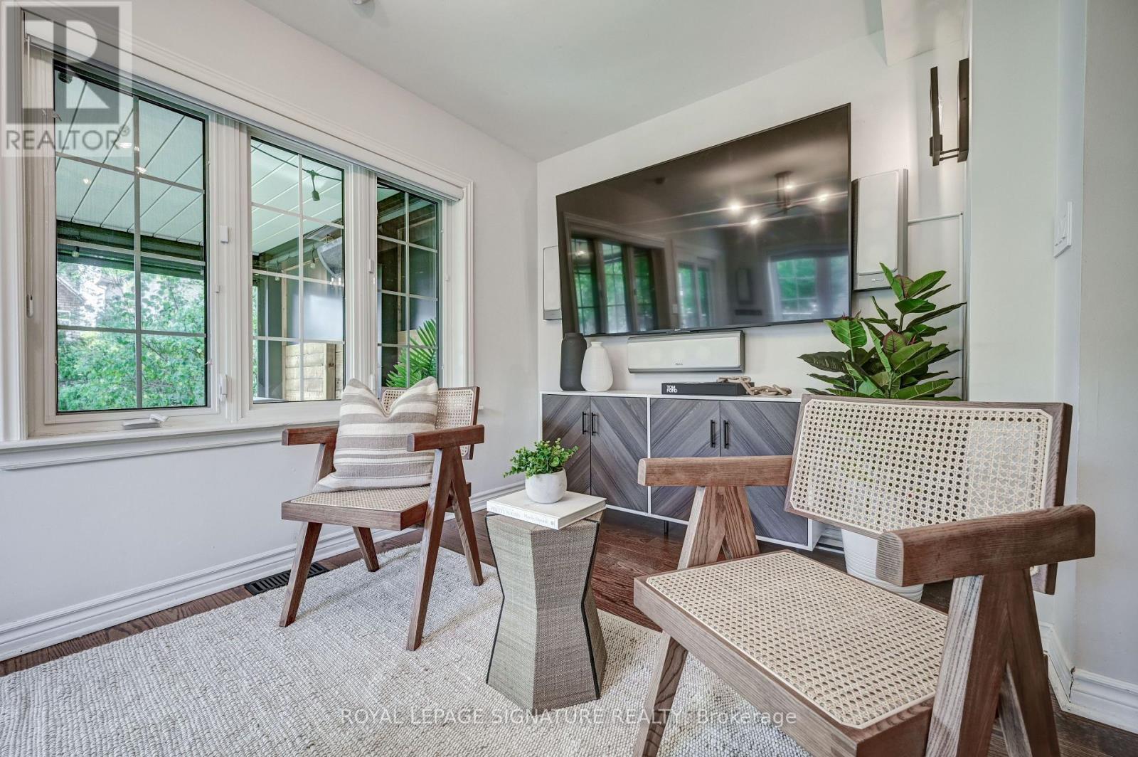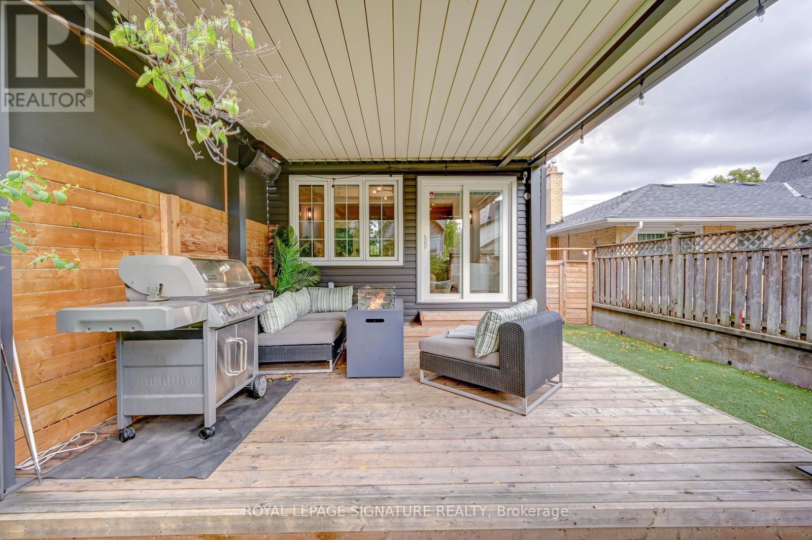 61 Government is the perfect sized family home located right in The Kingsway. Located steps from the top rated Lambton Kingsway Public School yet Located On A Low Traffic Part Of Government. The home offers 3 Bedrooms, Newly Renovated Bathrooms including an Ensuite in the Primary Bedroom. Spacious, Family-Oriented Open Concept Floor Plan. Separate Living/Dining Room with gas fireplace. Kitchen/Family Room Features New Hardwood Floors And Large Kitchen Island That Seats 5. New All Season Heated Backyard Deck w/turf-Low maintenance! The backyard porch includes a privacy screen, space heater, and louvered water proof roof, that can be adjusted to let the sun shine in! Freshly painted and cleaned. 3 outdoor sheds for storage, plus under porch storage. Plenty of parking space. Outdoor Furniture/BBQ/Fire Table/Space Heater Included in lease, as well as family room TV and console. Private Covered Front Porch with lots of seating room. Bonus Kids Space In Basement. Longer Lease avail. (id:64974)