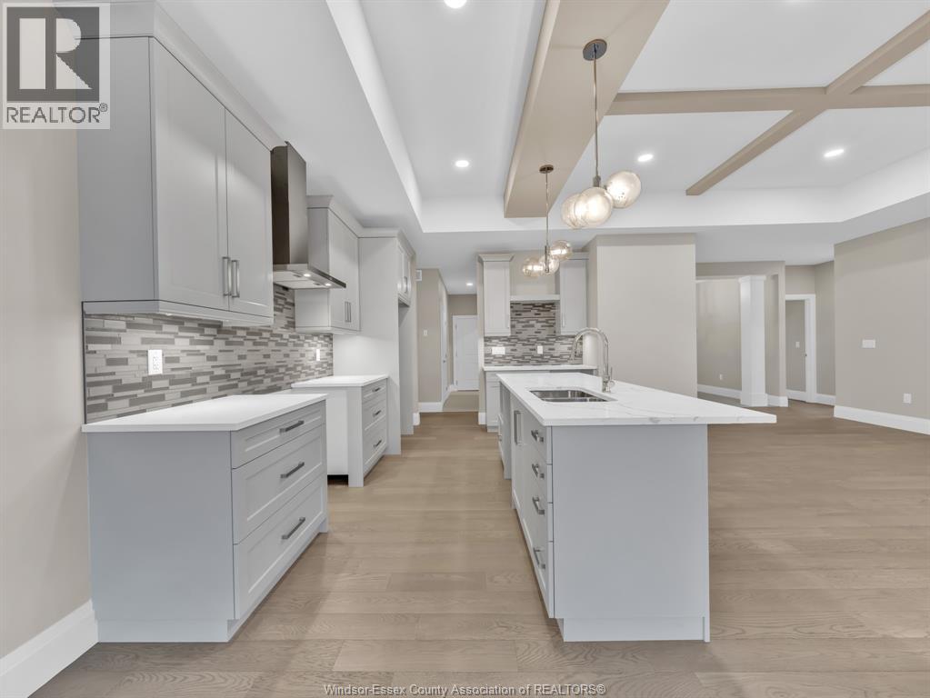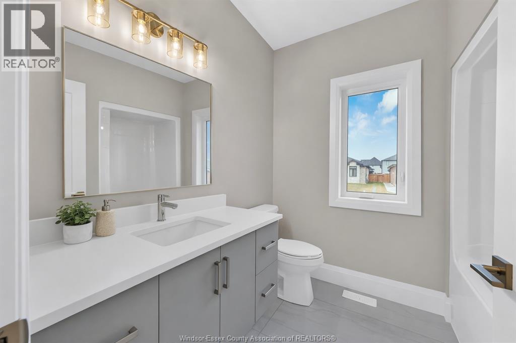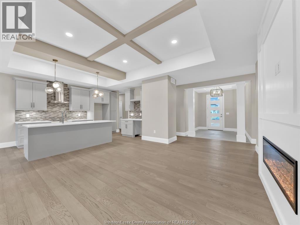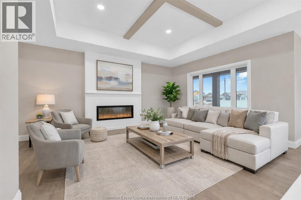 Move-in ready! This exquisite custom-built ranch residence is set in one of Amherstburg’s most sought-after locations. Masterfully crafted by the acclaimed Cerasa Design and Build, this home showcases a seamless blend of timeless elegance and modern functionality. Featuring 3 generously sized bedrooms, 2.5 spa-inspired bathrooms—including a luxurious ensuite— a bright and open living dining room area with a gourmet kitchen along with convenient main-floor laundry The primary bedroom serves as a private retreat, complete with its own ensuite bath and a spacious walk-in closet. The open-concept living space is highlighted by soaring 9-foot ceilings with refined tray detailing, premium tile and hardwood flooring throughout, and a stylish fireplace that creates a warm and inviting focal point. The home sits on a generous lot with over 65 feet of frontage and approximately 1,910 sq ft of living space. A spacious two-car garage and a covered front and rear concrete porches further elevate both the interior and exterior living experience. The basement is unfinished and ready for your personal finishing touches, complete with a convenient grade entrance offering excellent potential for additional living space. Full sprinkler system with sod, cement driveway with a sidewalk leading to the grade entrance, and fully equipped with appliances. Designed for sophisticated living and everyday comfort, this home is constructed using only the finest materials and superior craftsmanship, ensuring exceptional quality, durability, and lasting beauty. Enjoy added peace of mind with a 7-year Tarion warranty. (id:64974)