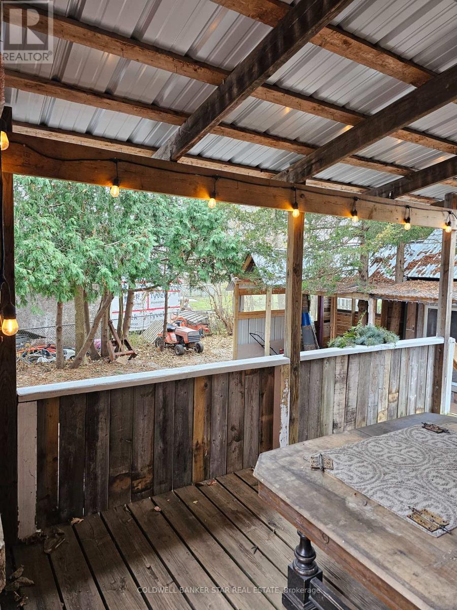 Turn-key! Stunning 3 bedroom 2 bath 2.5 story Victorian home with detached double car garage with a pushout toward the back for workshop area. Chocked full of many updates. Located in the lovely hamlet of Thamesville, close to the 401. Updates within last 3 years include new asphalt shingles on the house, metal roof on the garage, soffit and facia and front porch painted on house, most of the North Star windows new with fresh paint. New hardwood in wrap around porch. FYI fireplace in porch will be removed. New vinyl floor in entry way. New vinyl in upper level bathroom with new tub. New paint in living room, 2 bedrooms upstairs. Deck repair with new boards, most wiring in the house and garage. Newly built she-shed and woodworking shed for storage. Also added the porch on the back of the house. Great for morning coffee, or chilling in the evening. (id:64974)