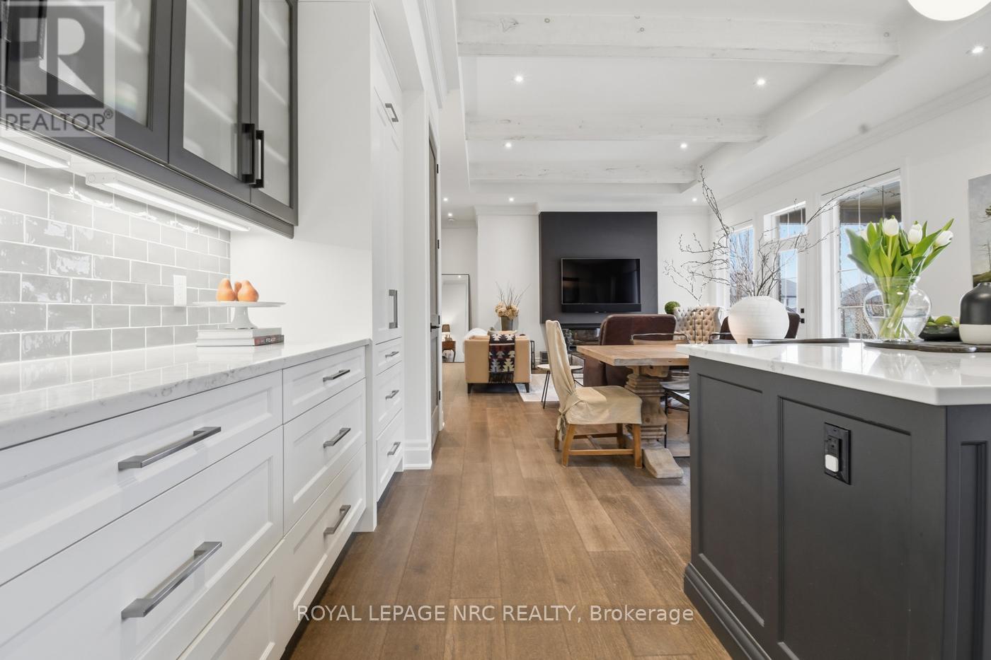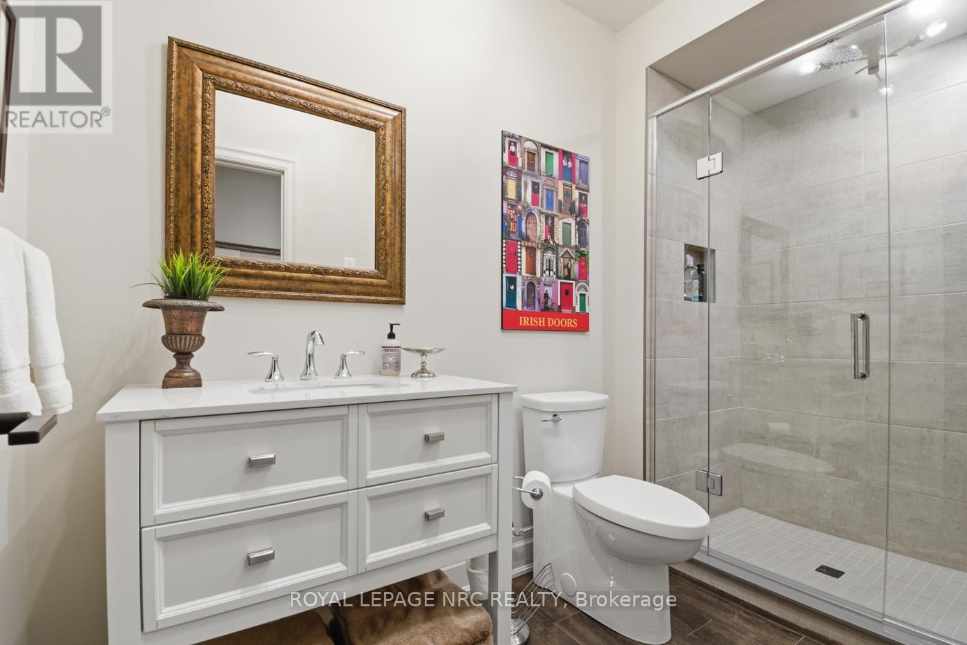 Fonthill's Lookout Point location, situated on a quiet one of a kind cul de sac. Luxurious Executive bungalow, stone and brick, European Style home, constructed by a boutique NOTL builder. Undivided attention to detail, craftsmanship and millwork.1900 sq ft main floor with grand foyer entrance, open concept kitchen and great room, 3 bedrooms, 2 bathrooms, main floor laundry, and oversized windows throughout. Ideal for one story living.Main floor ceilings are 10', 11' in the kitchen and great room area. Cove molding, tray ceilings, and 9ft doors are used throughout. Engineered hardwood flooring on the main level.Great room with feature wall, electric fireplace, built in speakers. Gourmet Chef's kitchen designed by Del Priore Custom Kitchens, oversized island, quartz counter and backsplash, pantry, built- in bar, panelled refrigerator, a Bertazzoni gas stove/electric oven.Garden door entrance to covered patio with gas fireplace. Perfect for entertaining, with amazing backyard views. Primary bedroom, double closets, luxurious ensuite bathroom with floor to ceiling glass and tiled shower, double vanity sink, and heated flooring. Two more spacious bedrooms, front bedroom with beautiful built in shelving making it perfect for a home office or den.Lower level with a finished rec room, gas fireplace, oversized windows to let in plenty of natural light. Fitness room or home gym, 3pc bathroom. Plenty of extra storage, over 3100 sq ft of finished living space.Professionally landscaped yard with automated exterior low voltage landscape lighting, lawn irrigation system. Aggregate patio and aggregate driveway, double car garage.This home is truly a show stopper with amazing upgrades and finishes, a one time chance for the offering. Excellent proximity to our finest golf courses, wineries and restaurants, walking and biking trails. Just 15 mins to Niagara falls and the QEW. (id:64974)