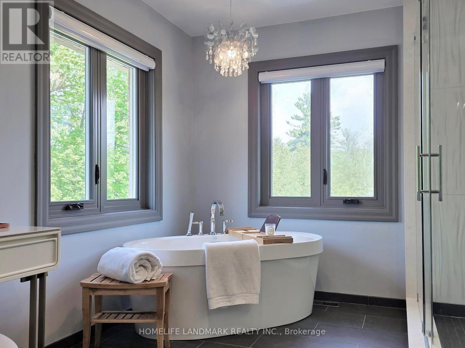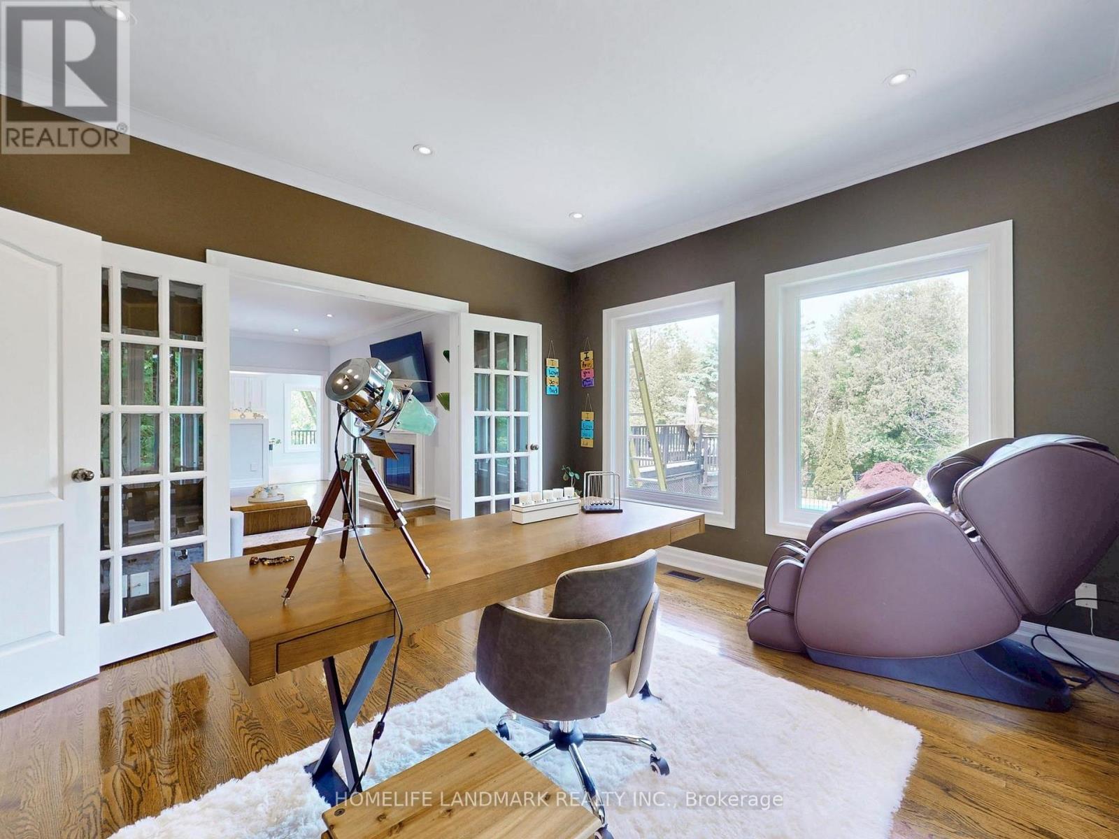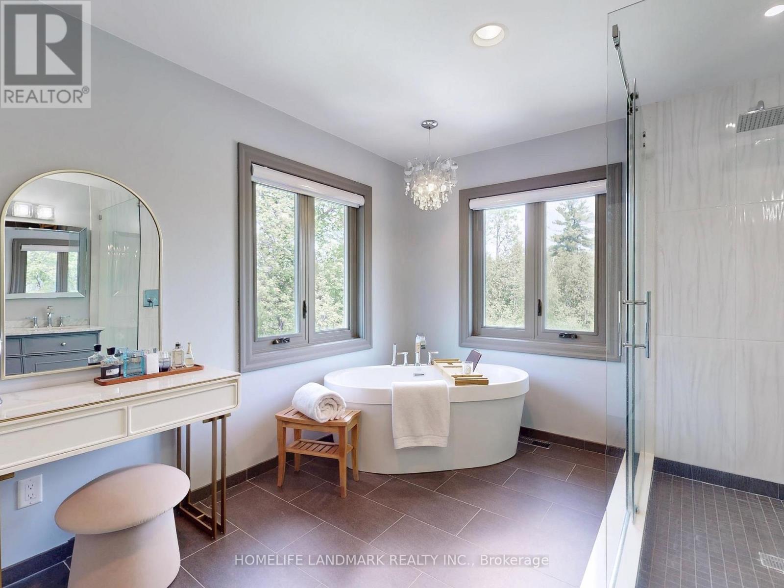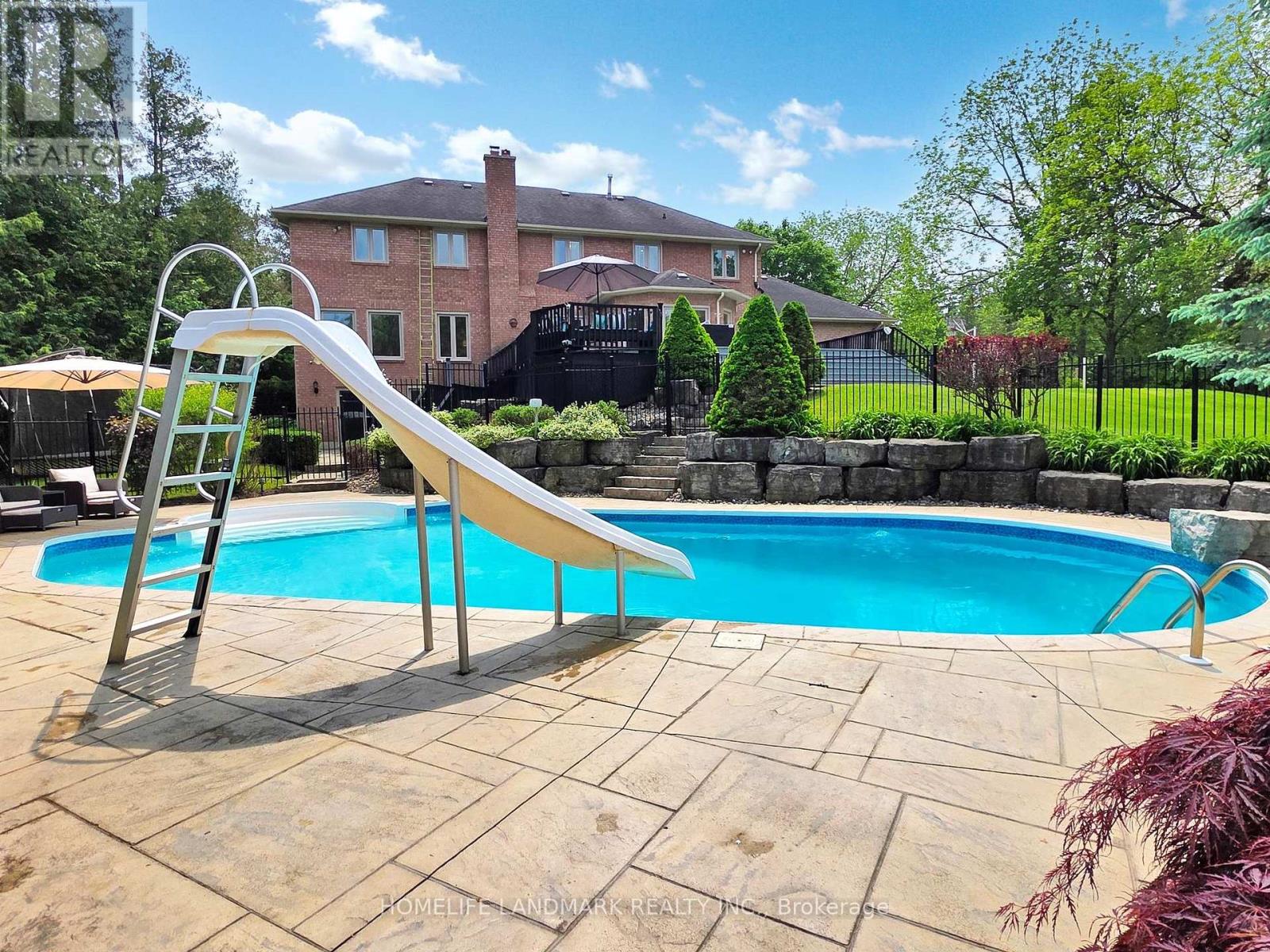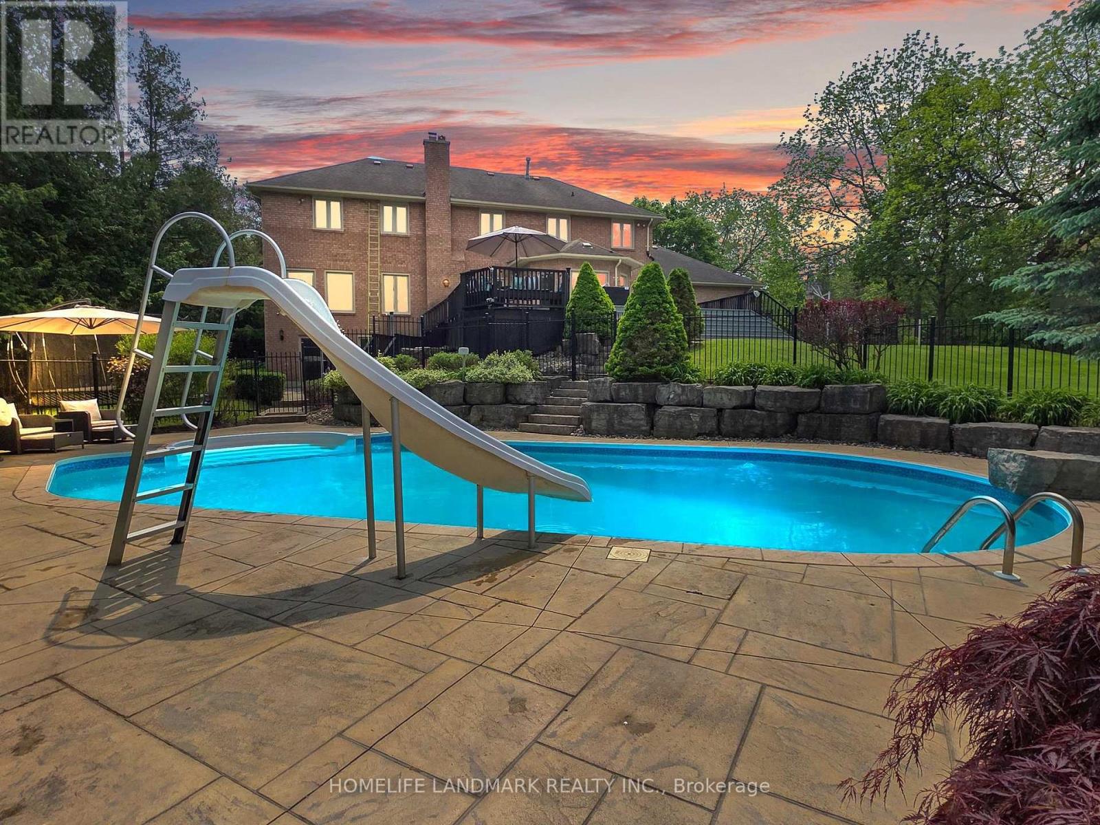 Stunning ravine estate in prestigious Bethesda Estates! Set on a landscaped 1.04-acre lot, this 5+1 bed, 7-bath home features a circular drive, resurfaced asphalt drive, and 3-car garage w/ rare 90" clearance. Saltwater pool w/ new pump, refinished deck, and updated chefs kitchen w/ B/I appliances, 6-burner gas stove, high-CFM hood. 4 beds up w/ private baths, main-fl in-law suite, W/O bsmt w/ guest rm, sauna, home theatre, smart blinds, indoor/outdoor speakers. Upgrades incl: EV charger, new windows/patio door, attic insul., HWT, iron filter, softener, and S/S dishwasher. (id:64974)