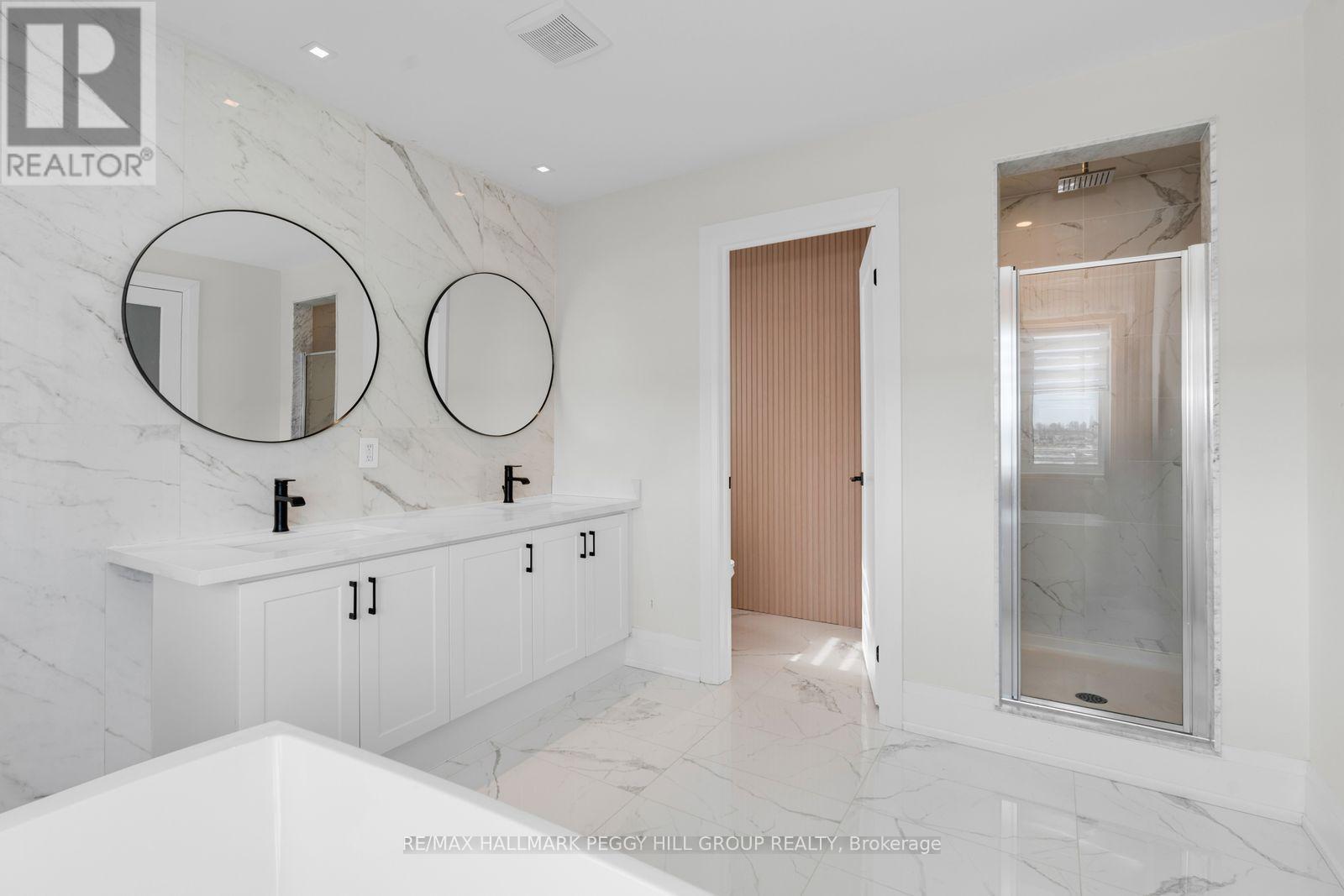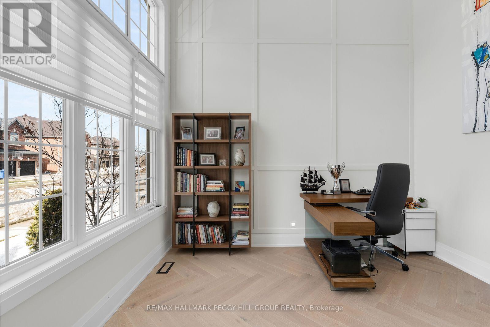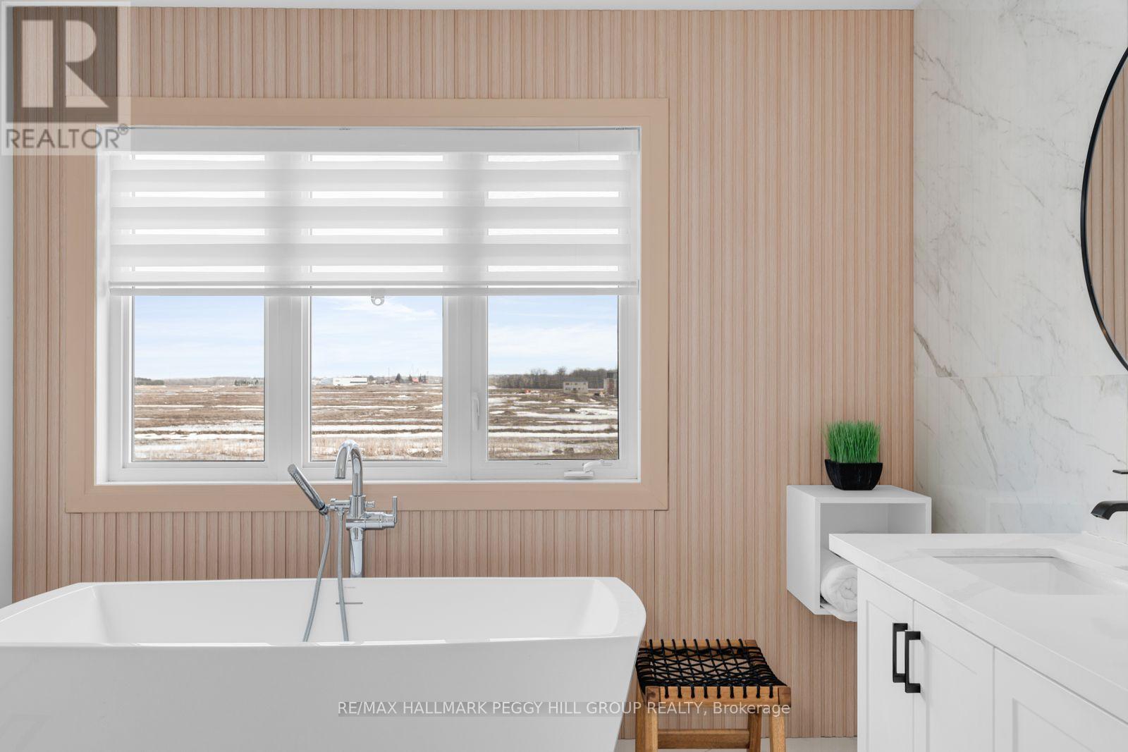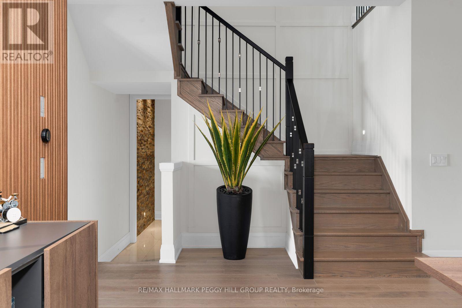 DESIGN-FORWARD 3,000+ SQ FT HOME WITH A PROFESSIONALLY LANDSCAPED YARD & HIGH-END UPGRADES! Straight out of a designer magazine, this 2-storey home offers over 3,000 square feet of upgraded living space that feels richly finished, visually unforgettable, and far removed from the usual newer build. A stone and stucco exterior, covered porch, double door entry, and attached 2-car garage with insulated flooring and belt-driven openers set the tone right away. Professionally landscaped front and back grounds feature a large deck, privacy fencing, gazebo, fire pit, hydrangeas, a Japanese maple, and emerald cedar shrubs. Nine-foot ceilings, zebra blinds and curtains, upgraded matte black hardware, and Aria Lite frame floor vents continue the elevated look throughout. The kitchen commands attention with built-in KitchenAid appliances, a matte black hood range, pot filler, matching countertop and backsplash, black fluted detail on the centre island, and a double garden door walkout. Formal dining features a custom teak wall and Mobilia black pendants, while the family room adds a custom media wall, built-in shelving and cabinetry, a wood feature surround, and a fireplace. A dramatic 16-foot main floor office adds major impact, and the laundry and mudroom area carries through the same thoughtful finish with natural earth split face slate wall tile, accent lighting, and a laundry sink. The staircase with custom oak railings and iron pickets leads to the upper level, where four bedrooms and a bonus loft offer flexibility for a movie room, kids' zone, or quiet sitting area. The primary suite is finished with a 5-piece ensuite featuring a water closet, freestanding tub, glass-walled shower, and dual sink vanity. 5 minutes or less from Hwy 404, beaches, marinas, restaurants, schools, parks, and everyday amenities, this #HomeToStay delivers upgraded everyday living in all the right ways. (id:64974)