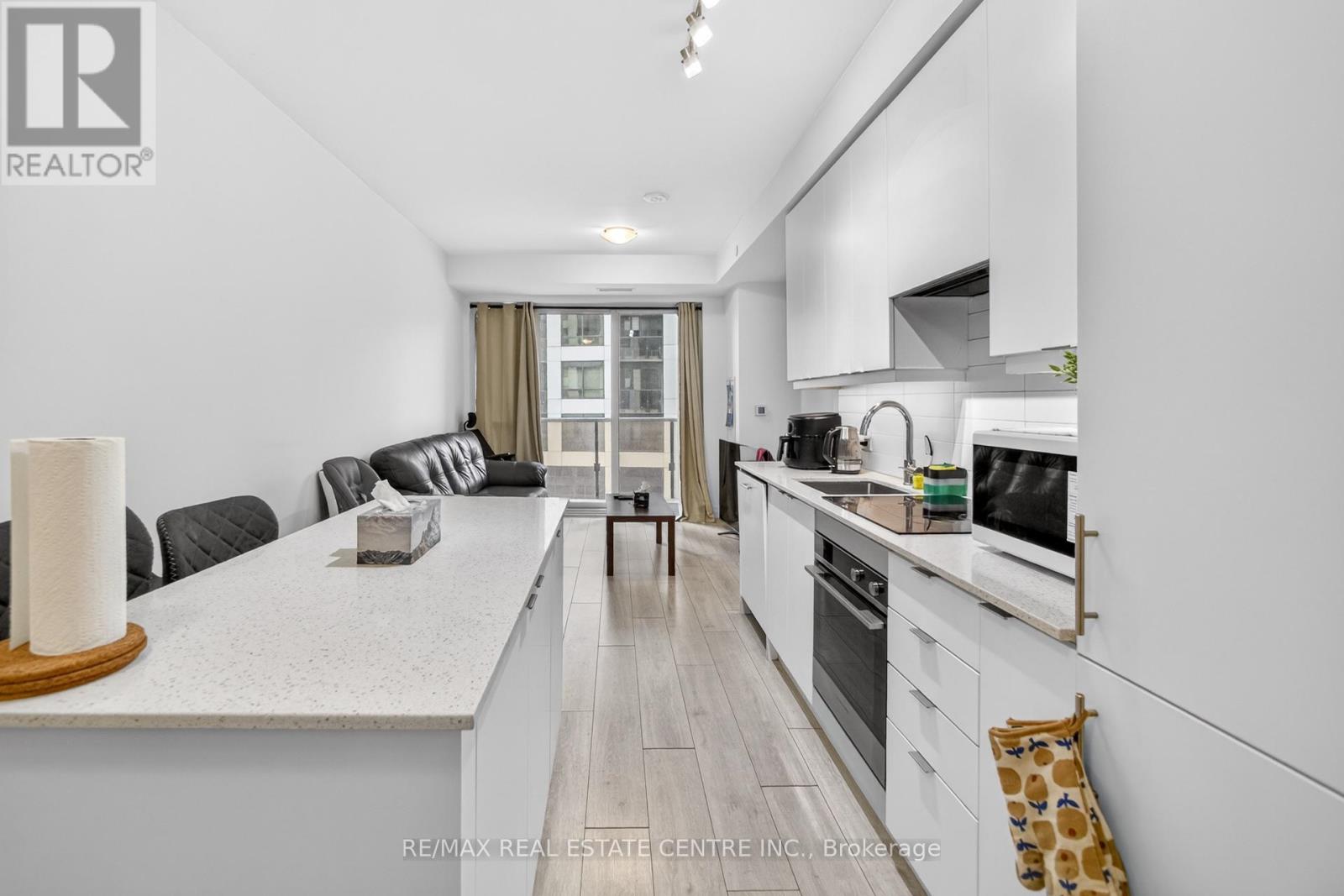 Modern 2 Bedroom Condo in the heart of Mississauga featuring approximately 750 sq ft of well-designed living space. This bright unit offers an open-concept layout with a stylish kitchen featuring quartz countertops, centre island, and laminate flooring throughout. Spacious living area with walk-out to a private balcony and city views. The primary bedroom includes a large closet, while the second bedroom also features balcony access and a large window. Convenient in-suite laundry, 1 owned underground parking space, and an owned locker. Building amenities include concierge, gym, media room, guest suites, business centre with WiFi, and a games room. Prime location steps to Square One area, public transit, parks, library, and arts centre. Ideal for first-time buyers, investors, or professionals seeking urban living. (id:64974)