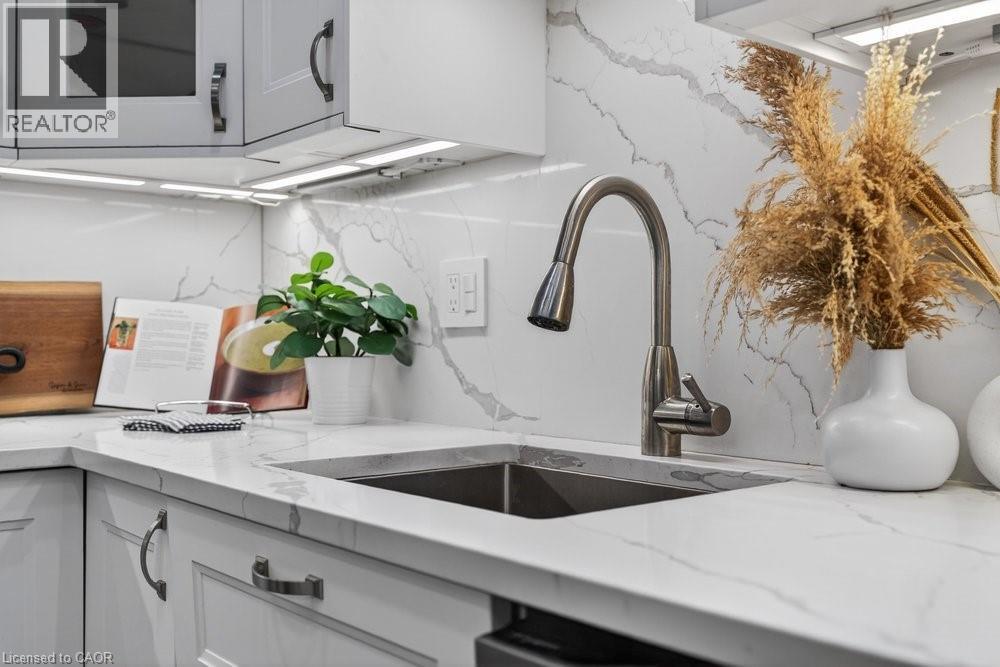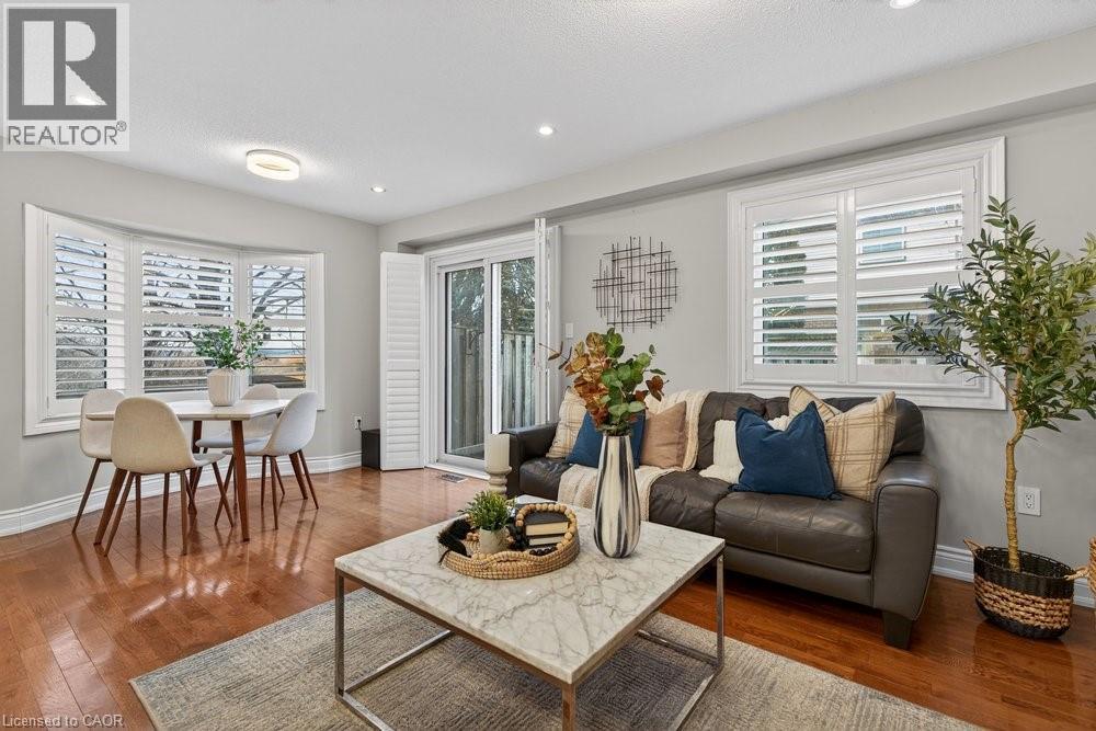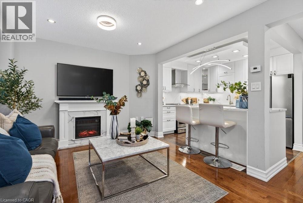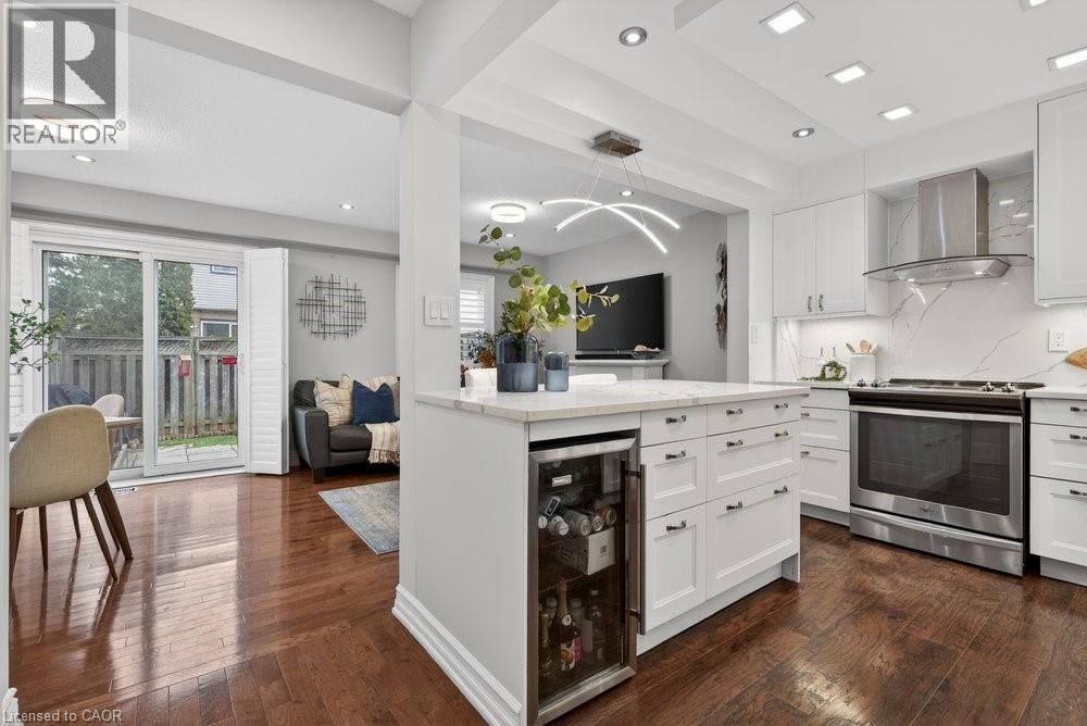 Gorgeous end-unit townhouse in a fantastic Stoney Creek location! Just minutes to the QEW (Fruitland) and close to schools, parks, restaurants, and all amenities. This home is extremely well maintained, spotless, and loaded with updates. Stunning open-concept kitchen featuring white soft-close cabinetry, quartz countertops, backsplash, centre island, and wine fridge—perfect for everyday living and entertaining. Updated bathrooms, ceramic and hardwood flooring, pot lights, California shutters, and convenient inside entry from the garage. Major updates include furnace and A/C (August 2022) and a garage door opener (August 2022). Unspoiled unfinished basement offers endless potential. Enjoy a private rear yard surrounded by trees with patio, deck, and professional landscaping. Outstanding location, great complex—shows 10+! (id:64974)