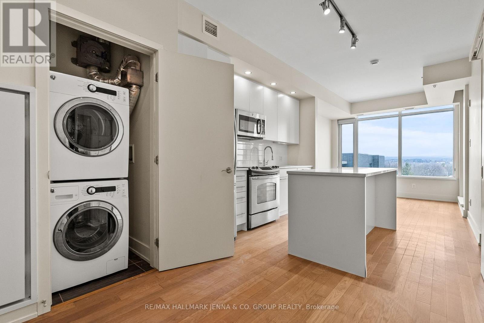 ***OPEN HOUSE SATURDAY MARCH 14th 2-4pm*** Live in style in this chic 1-bedroom, 1-bathroom condo in vibrant Westboro. This bright and modern unit features a sleek white kitchen complete with stainless steel appliances, a generous island, and ample cabinet storage. Hardwood flooring and contemporary pot lighting add to the stylish, modern feel throughout the open-concept living space. The living room boasts oversized windows that fill the unit with natural light and lead to a private balcony offering beautiful views of the Gatineau Hills landscape. The bedroom overlooks the balcony and includes a generous closet for excellent storage. A modern full bathroom and a discreet in-unit laundry closet complete the space. The unit also includes one indoor parking space and a storage locker for added convenience. Residents of Q-West enjoy outstanding amenities, including a rooftop terrace with multiple BBQs, fitness centre, theatre room, party room, pet wash station, bike storage, and more. Located in one of Ottawa's most desirable communities, you'll be steps from Westboro's cafés, restaurants, boutiques, yoga studios, and the scenic Ottawa River pathways. (id:64974)