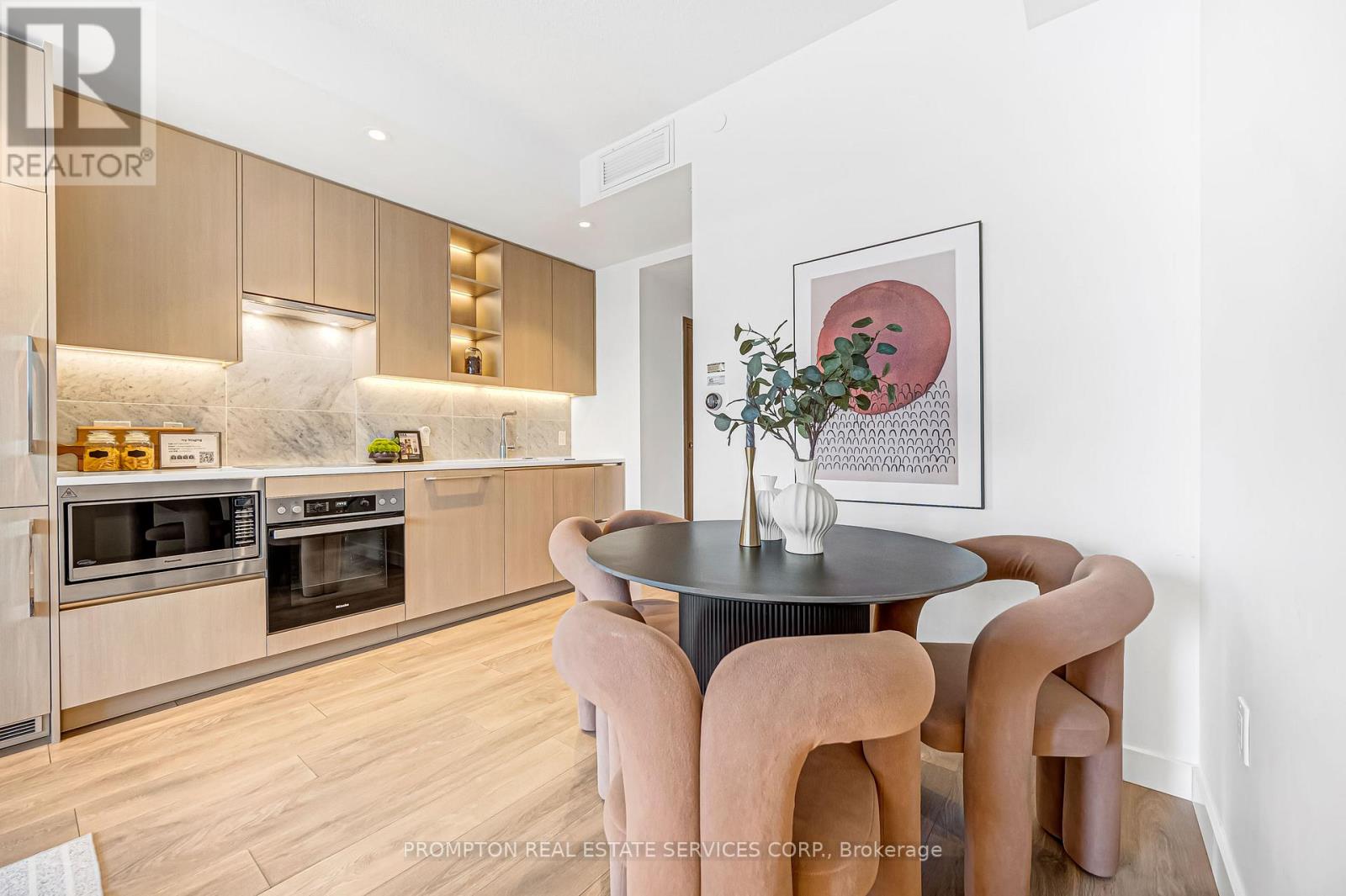 Discover the epitome of luxury living at Seasons Condos by Concord in North York. This stunning north-facing unit features 505 sq ft of elegantly designed interior space boasted with a terrance . Bright and airy with 9 ft ceilings and floor-to-ceiling windows, the condo boasts a sleek, open-concept kitchen with quartz countertops and top-of-the-line Miele appliances. The elegant bathroom includes designer cabinetry, quartz countertops, and an undermount sink, while the luxurious bedroom is complete with built-in custom closets and stylish roller blinds. Located steps from Bessarion TTC subway station, this prime location offers unmatched convenience with easy access to an 8-acre park, shopping centers, and diverse dining options. Live in style and comfort in one of North Yorks most sought-after addresses. (id:64974)