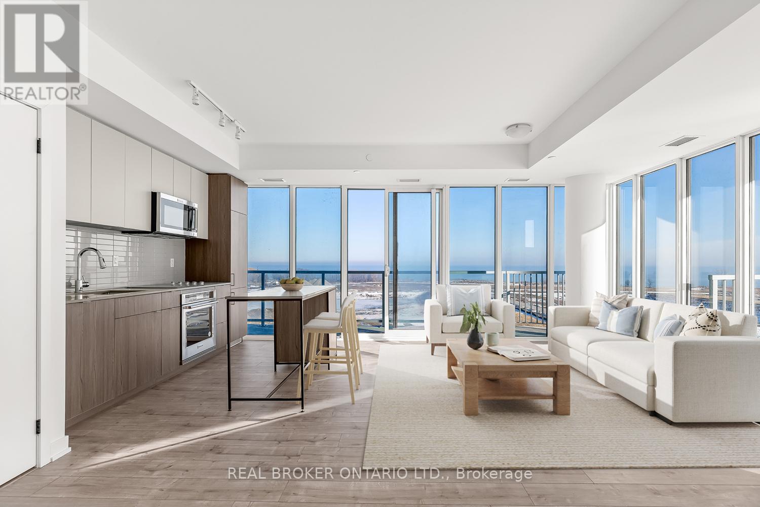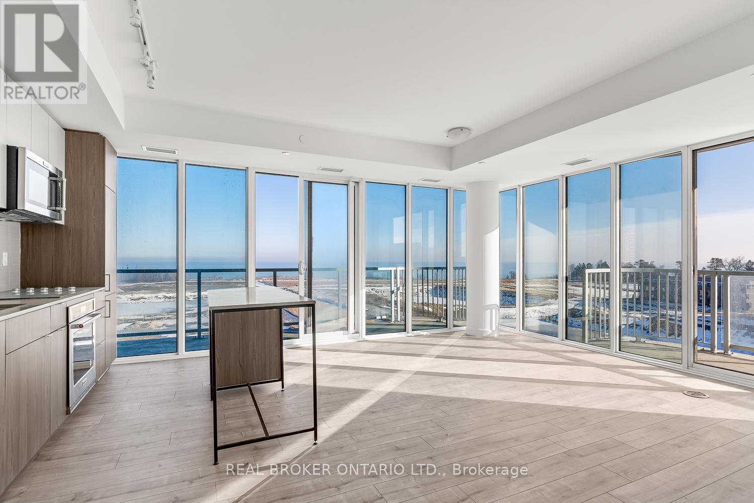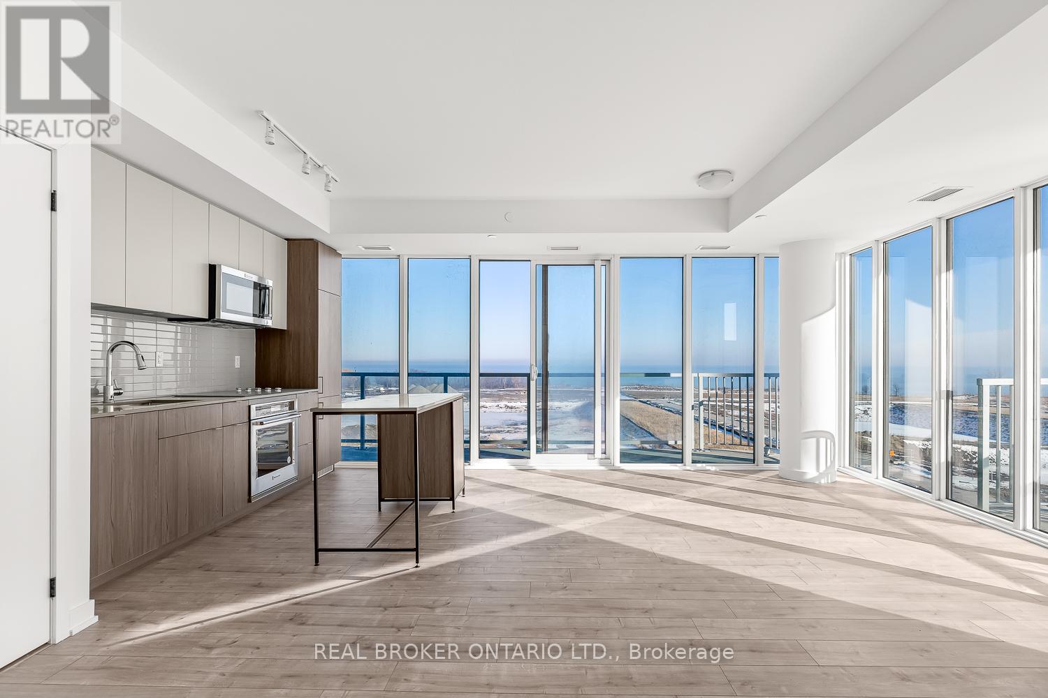 Experience the ultimate lakeside lifestyle in this brand-new, never-before-occupied 2 Bedroom + Den, 2 Bath corner suite offering nearly 1,000 sq. ft. of modern living with two private balconies and panoramic views of Lake Ontario and the Toronto skyline. This south -west facing suite features 9-ft ceilings, floor-to-ceiling windows, and an open-concept layout that seamlessly blends the living, dining, and kitchen areas. Enjoy a sleek modern kitchen with built-in appliances, large island, and ample space to gather and entertain. The split-bedroom floor plan ensures privacy, while the primary suite features a walk-in closet and spa-inspired ensuite. The den offers the perfect space for a home office. Brightwater II defines luxury living with state-of-the-art amenities, including a fitness centre, co-working lounge, party rooms, concierge, and rooftop gathering spaces. Exclusive access to the Brightwater Shuttle connects residents directly to the Port Credit GO Station, offering quick access to downtown Toronto. Live steps from Lake Ontario, waterfront parks, trails, shopping, Farm Boy, cafes, and the vibrant Village of Port Credit, known for its festivals, dining, and community spirit. Easy access to QEW, Hwy 403, and MiWay transit keeps you connected across the GTA. Don't miss this rare opportunity to lease one of Brightwater's best suites in an award-winning, master-planned waterfront community! Some photos were virtually staged. (id:64974)