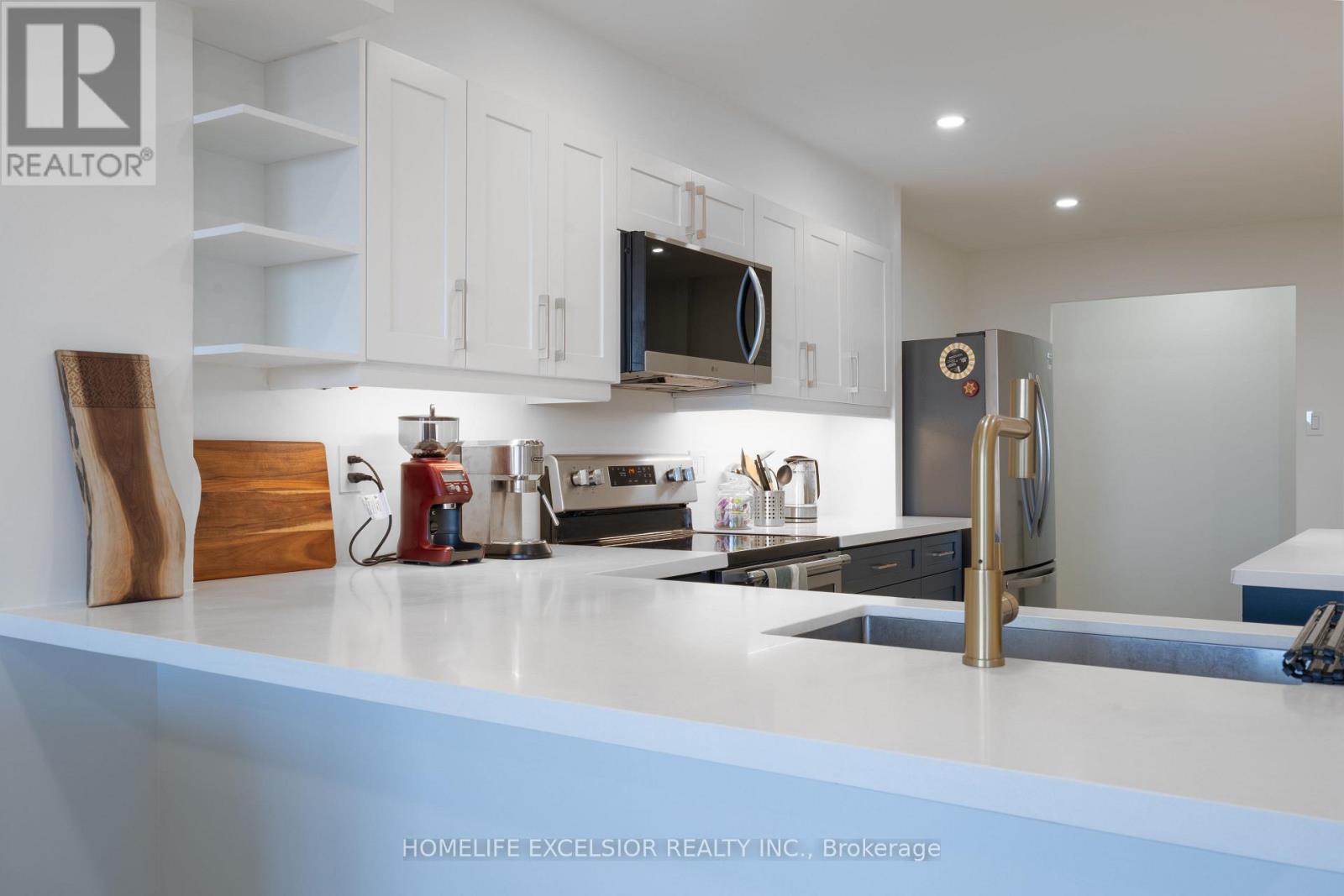 Welcome to this generously renovated (2025) 2-bedroom, 1-bathroom, 1-underground parking suite in the Elms-Old Rexdale community. Offering 1,069 sq. ft. of bright, open-concept living, this move-in-ready home features updated flooring, a modern kitchen with new cabinetry and countertops, and a contemporary bathroom. Renovations include high quality tile flooring, new fridge (2025), new dishwasher (2025) and over range microwave (2025). New flat ceiling installed throughout entire unit, including dimmable potlights with premium switches. Upgraded electrical box, wiring, and excess outlets wired throughout the unit. New flooring and baseboards throughout. Enjoy spacious bedrooms, large windows, and a large private balcony. Ideal South East exposure provides all day light and view of the Humber River Recreational Trail. Fibre internet extension fitted into bedroom and living room. Ideally located with trails and transit at your doorstep, quick access to highway 400, 401, 427, and just minutes from Yorkdale Shopping Centre and Costco. Building offers excellent amenities including a gym, swimming pool, and more-delivering comfort, convenience, and outstanding value. Maintenance fees cover all utilities except Hydro. This is a must see unit, at an amazing price. (id:64974)