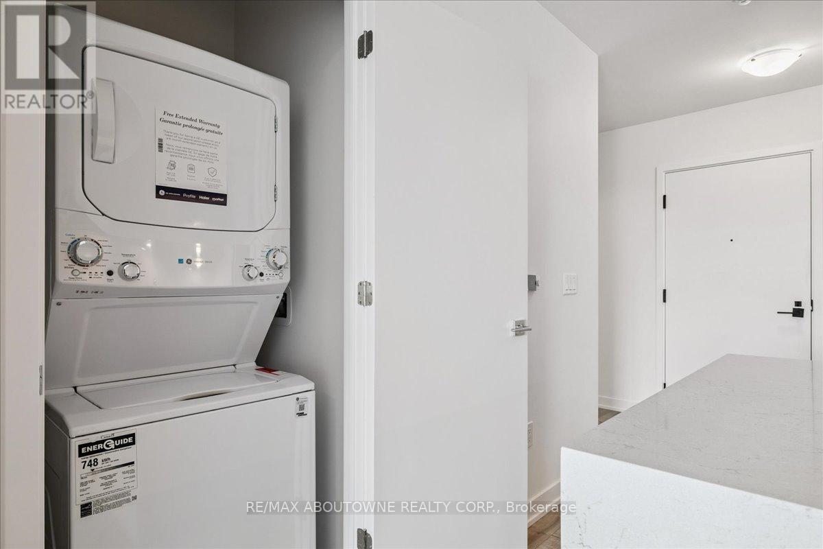 Welcome to this stunning brand new 1 bedroom PLUS DEN suite in one of Burlington's modern and sought-after developments. Featuring soaring 10 ft. ceilings, this bright and airy space offers an exceptional blend of style, comfort and functionality. The versatile den includes a hide-a-bed making it perfect for guests or a home office. No details has been overlooked - thousands spent in premium upgrades elevate this condo above the rest. Enjoy a beautifully enhanced kitchen complete with a large island, upgraded countertops and pantry, roller blinds. The spa inspired bathroom features a frameless shower, while the custom bedroom closets maximize storage. This unit includes underground parking and a locker for added convenience. The building offers outstanding amenities, including a rooftop terrace, stylish party room, dog washing station. With it's sleek modern design and welcoming community feel, this is Burlington living at its finest. Ideally located near the GO train, QEW, 403, parks, shopping, restaurants and countless everyday conveniences - this is the perfect home for commuters, professionals or downsizers seeking luxury and lifestyle. Move in ready and truly a must see! (id:64974)